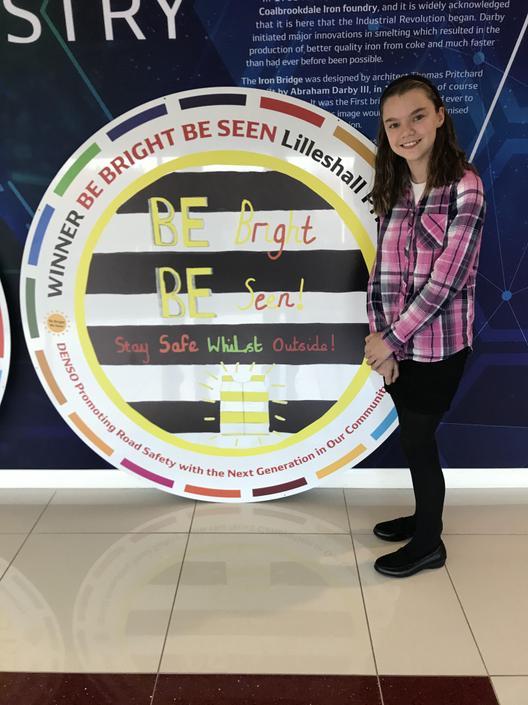 Abbey designed a poster for 'Be Bright Be Seen' road safety awareness competition run by Denso and won her catergory winning Lilleshall Primary school £500.