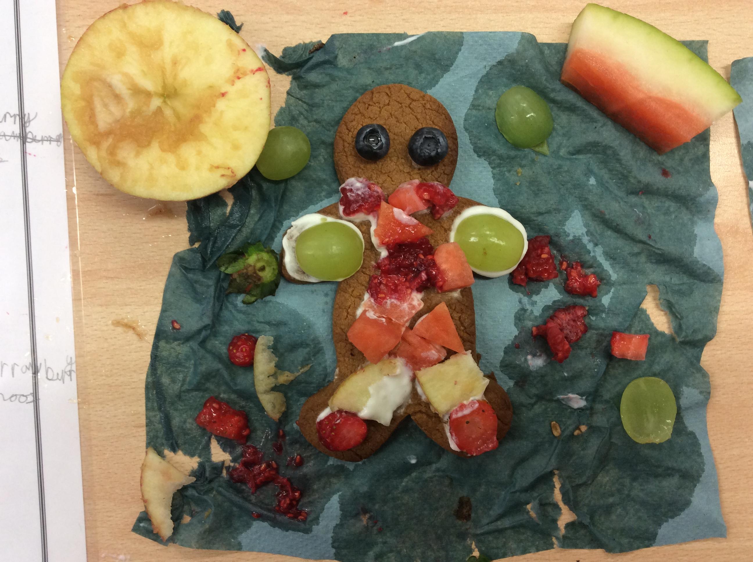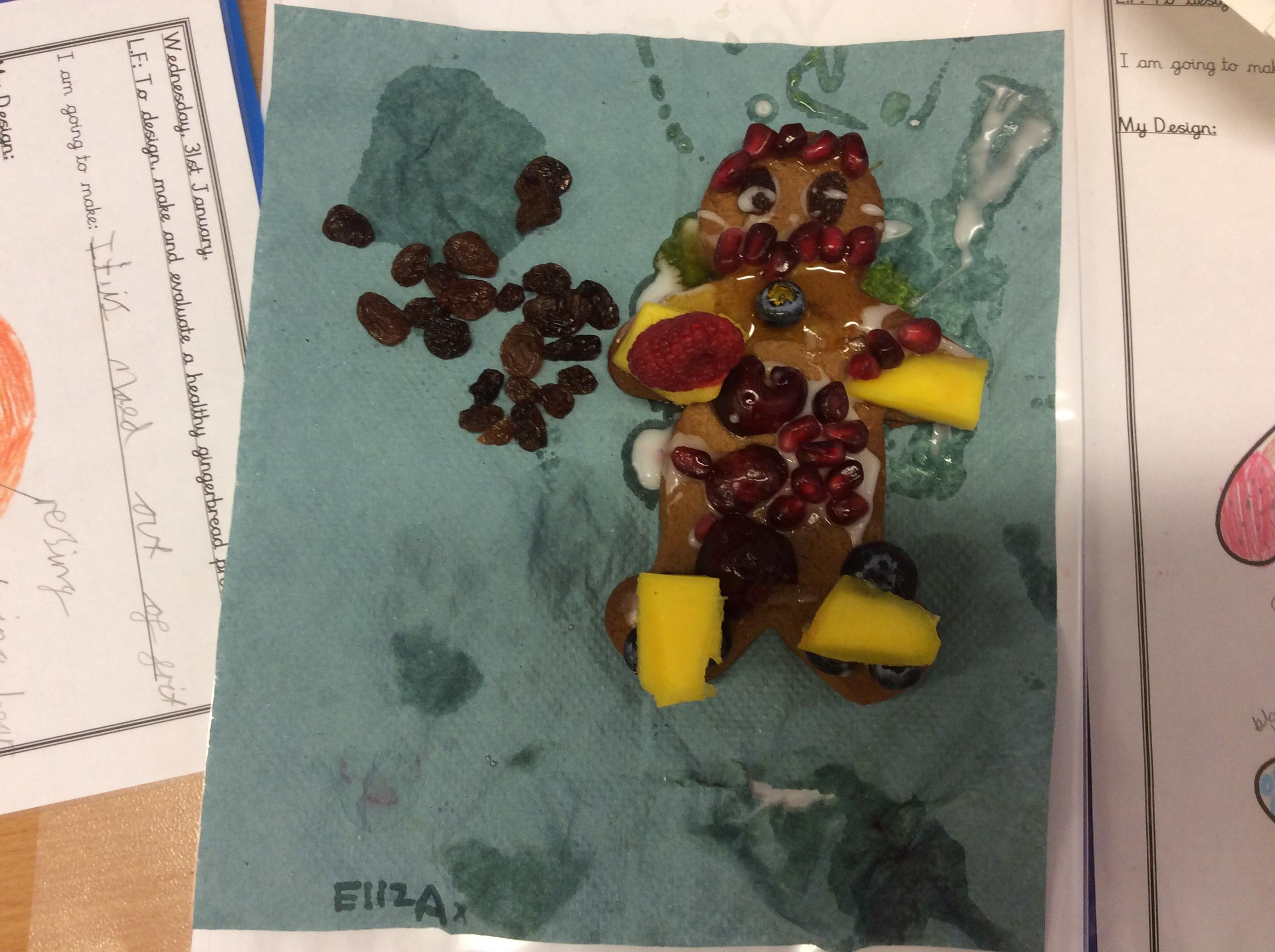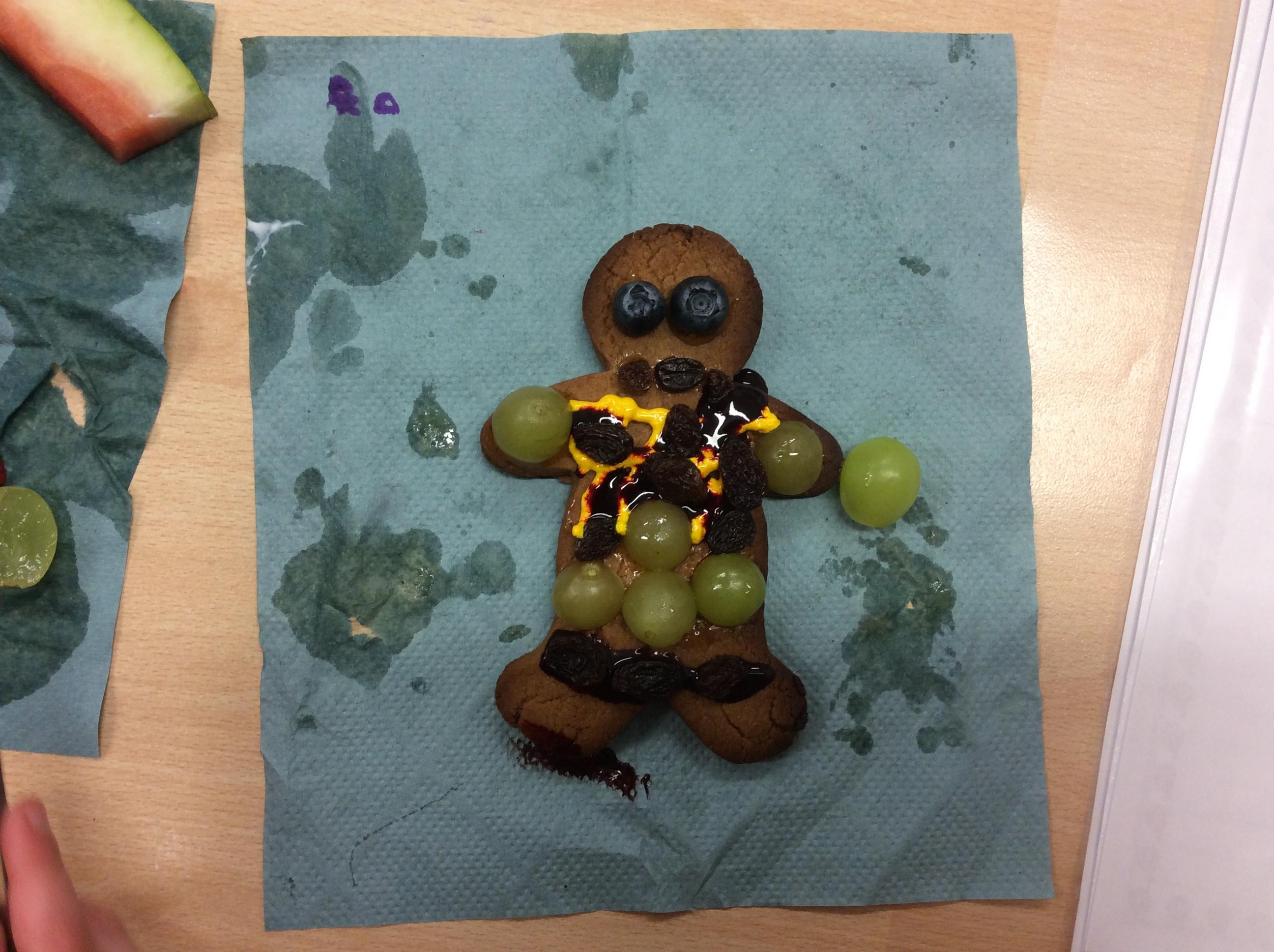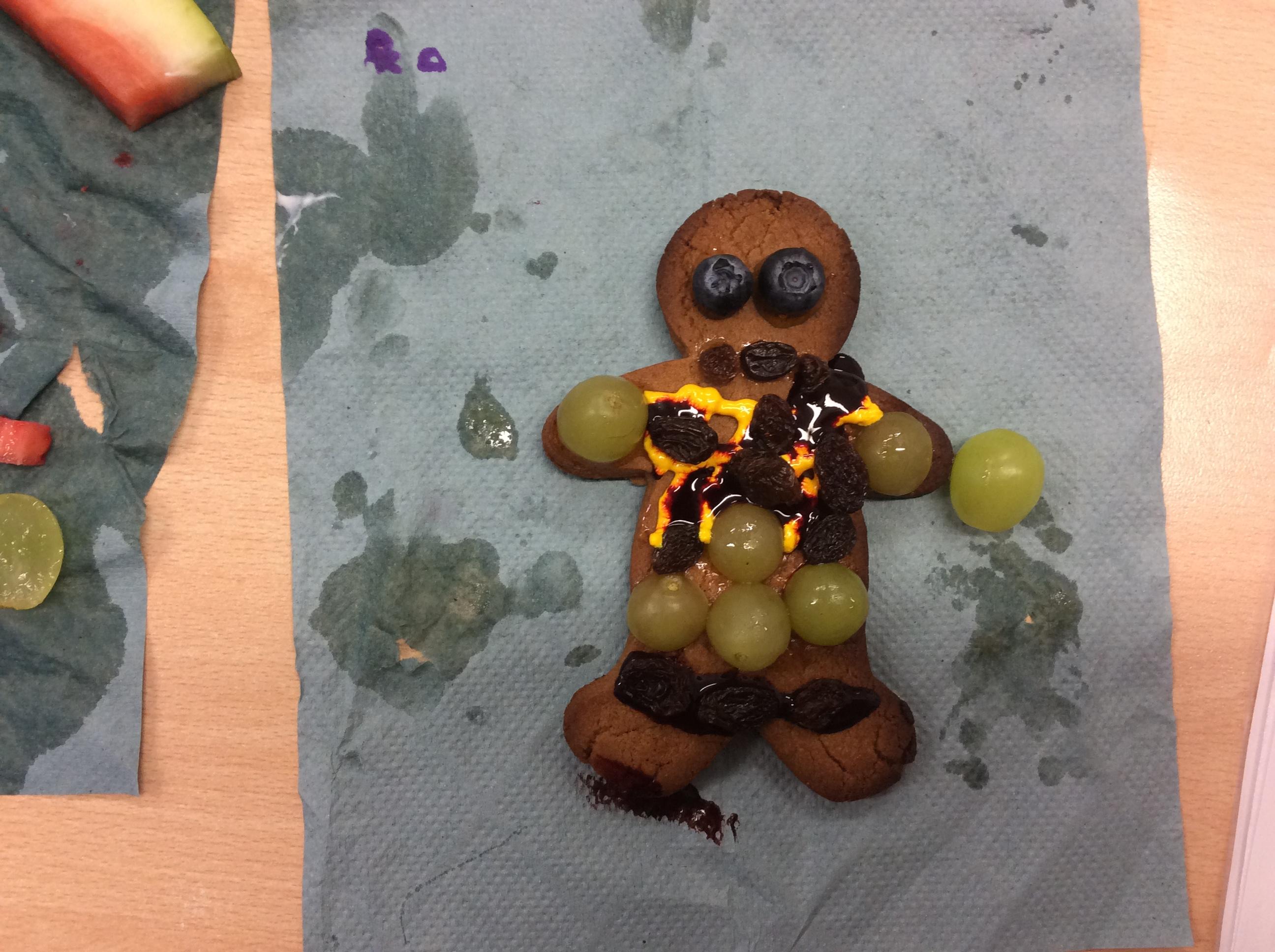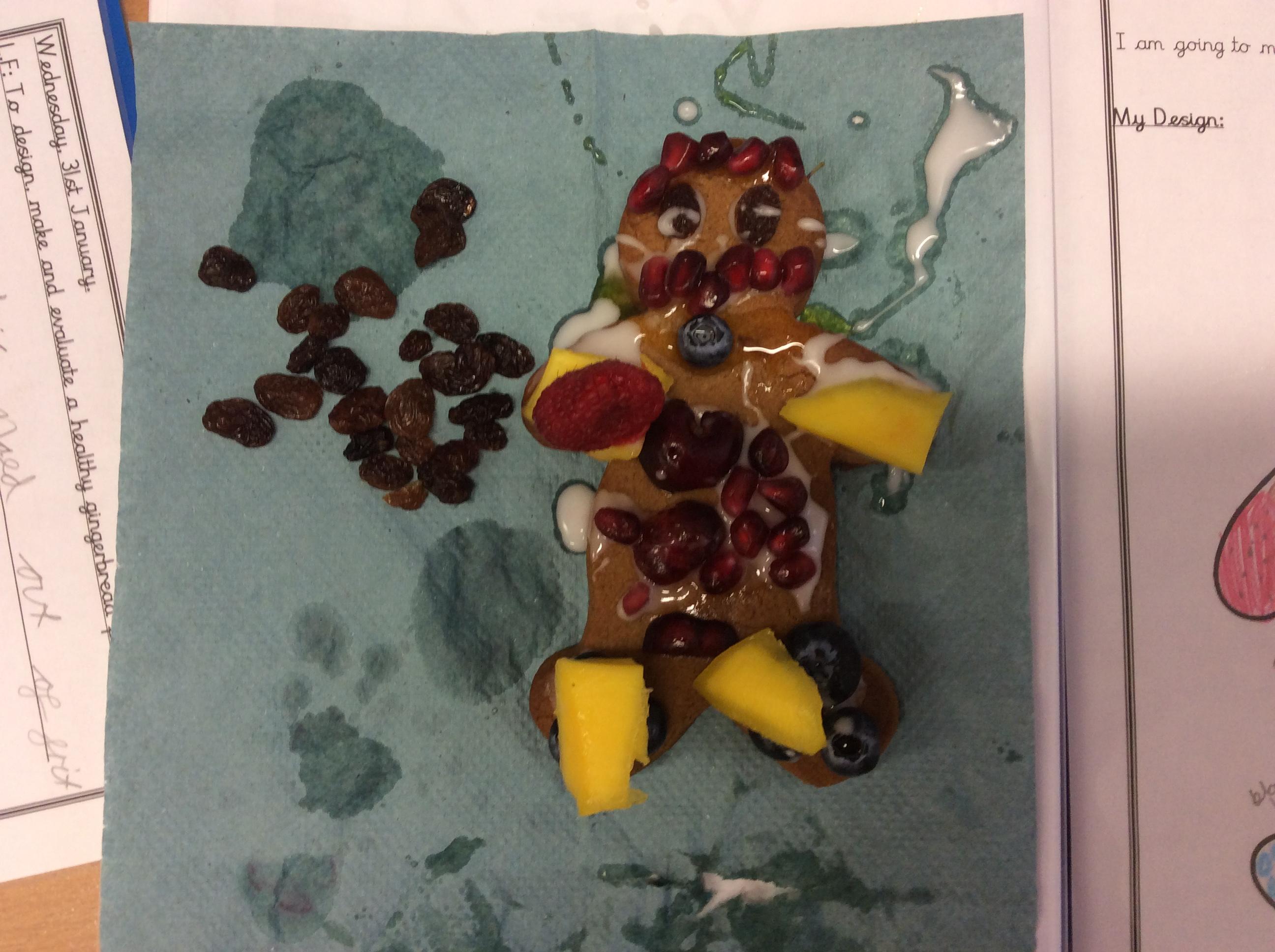 In our lesson today we made Gingerbread Men and then decorated them with healthy ingredients. We followed our designs carefully, making any adjustments needed as necessary. At the end of our lesson Mrs Cousins and Mr Firmstone-Hill came in to judge our Gingerbread Men and select two they would choose to buy based on their appearance, how healthy they were and how close to they were to the design.