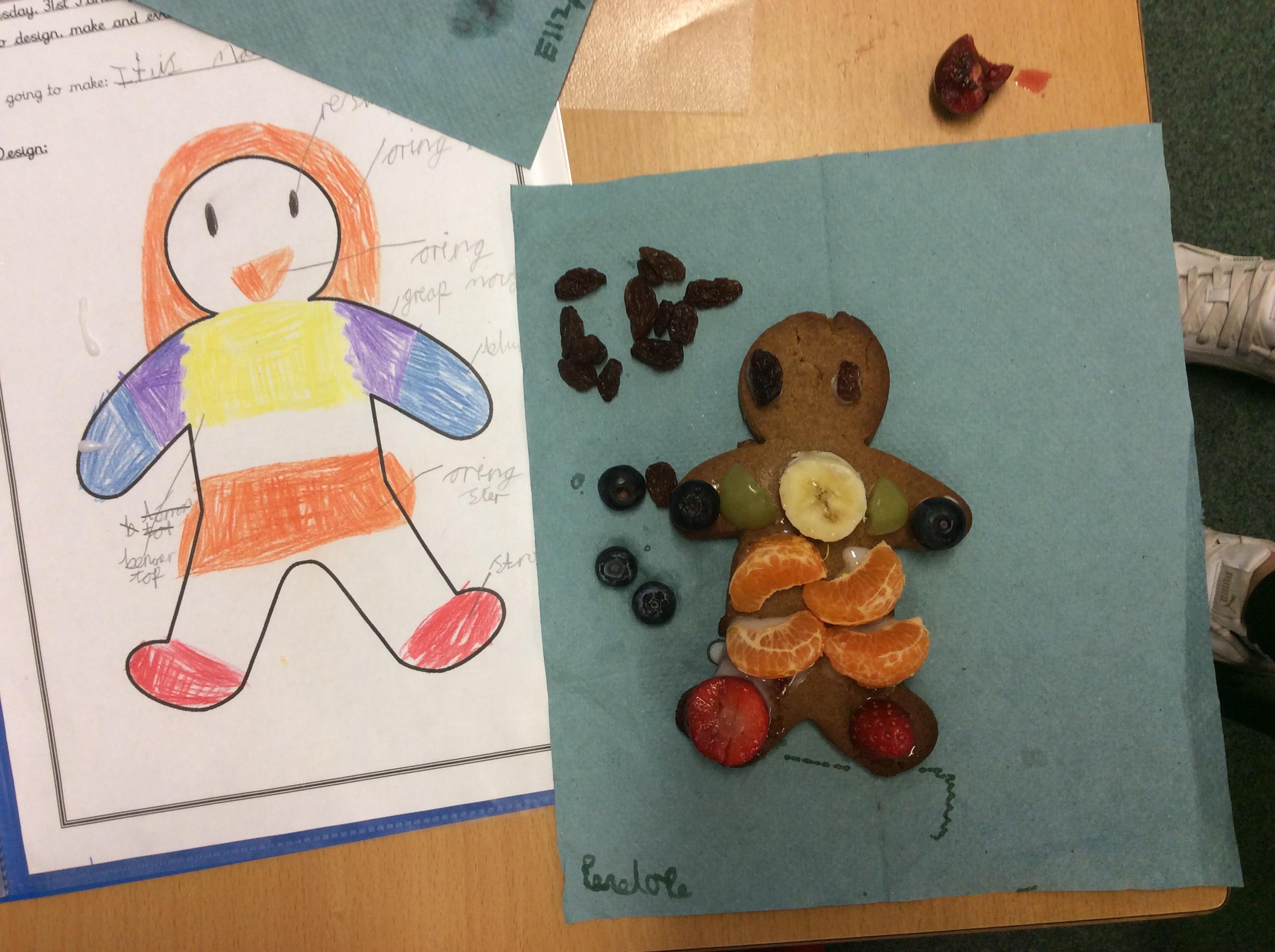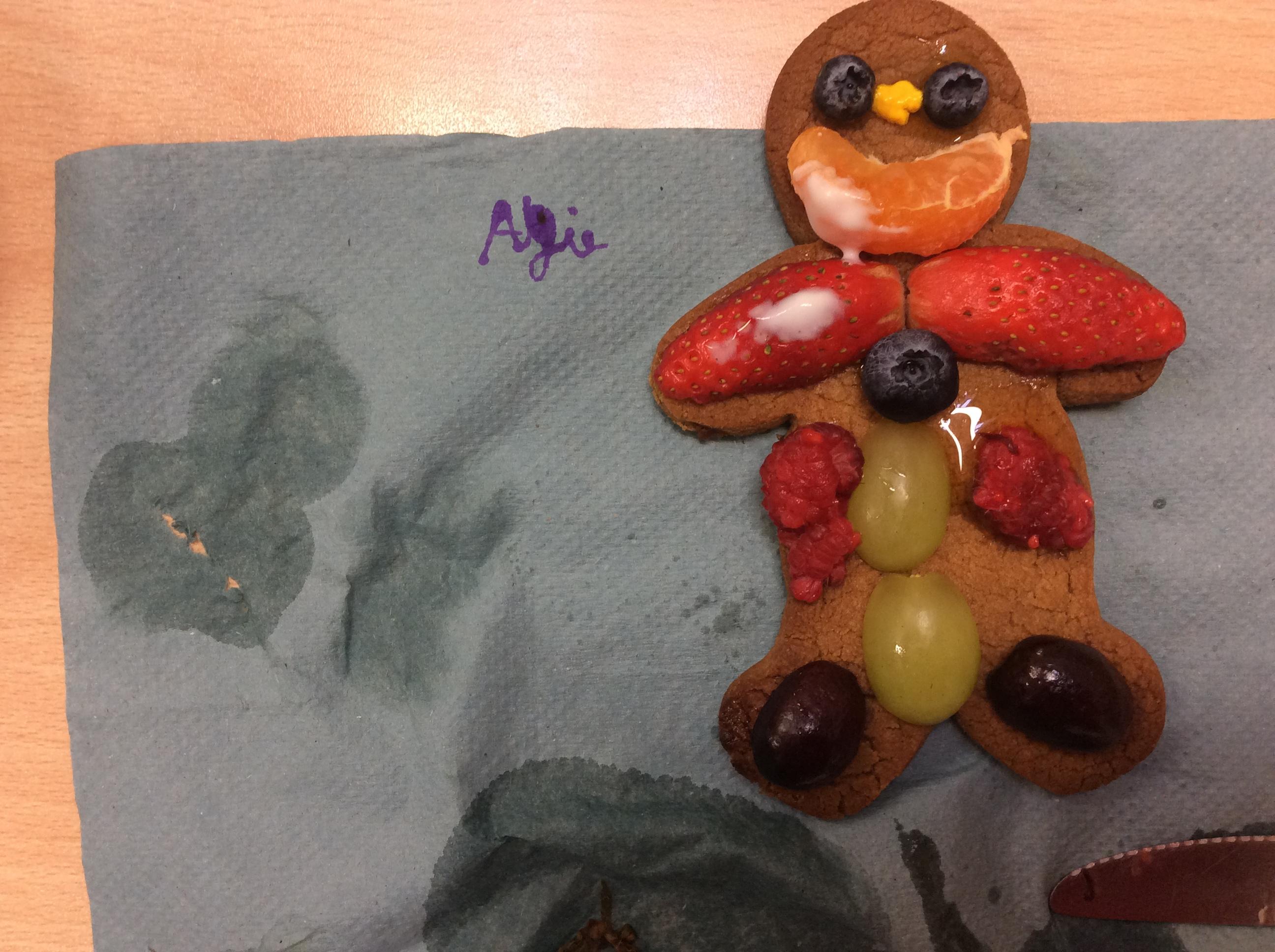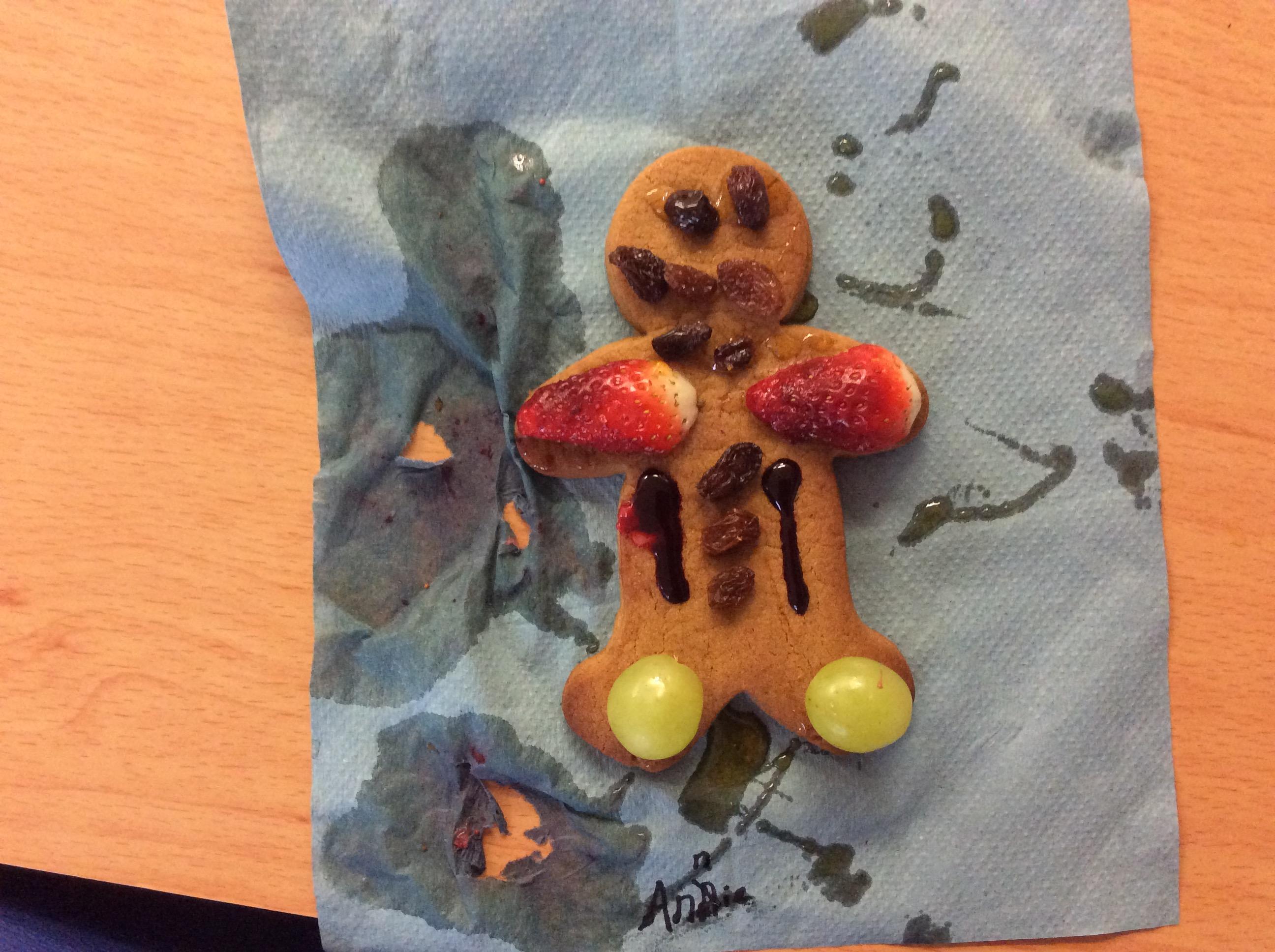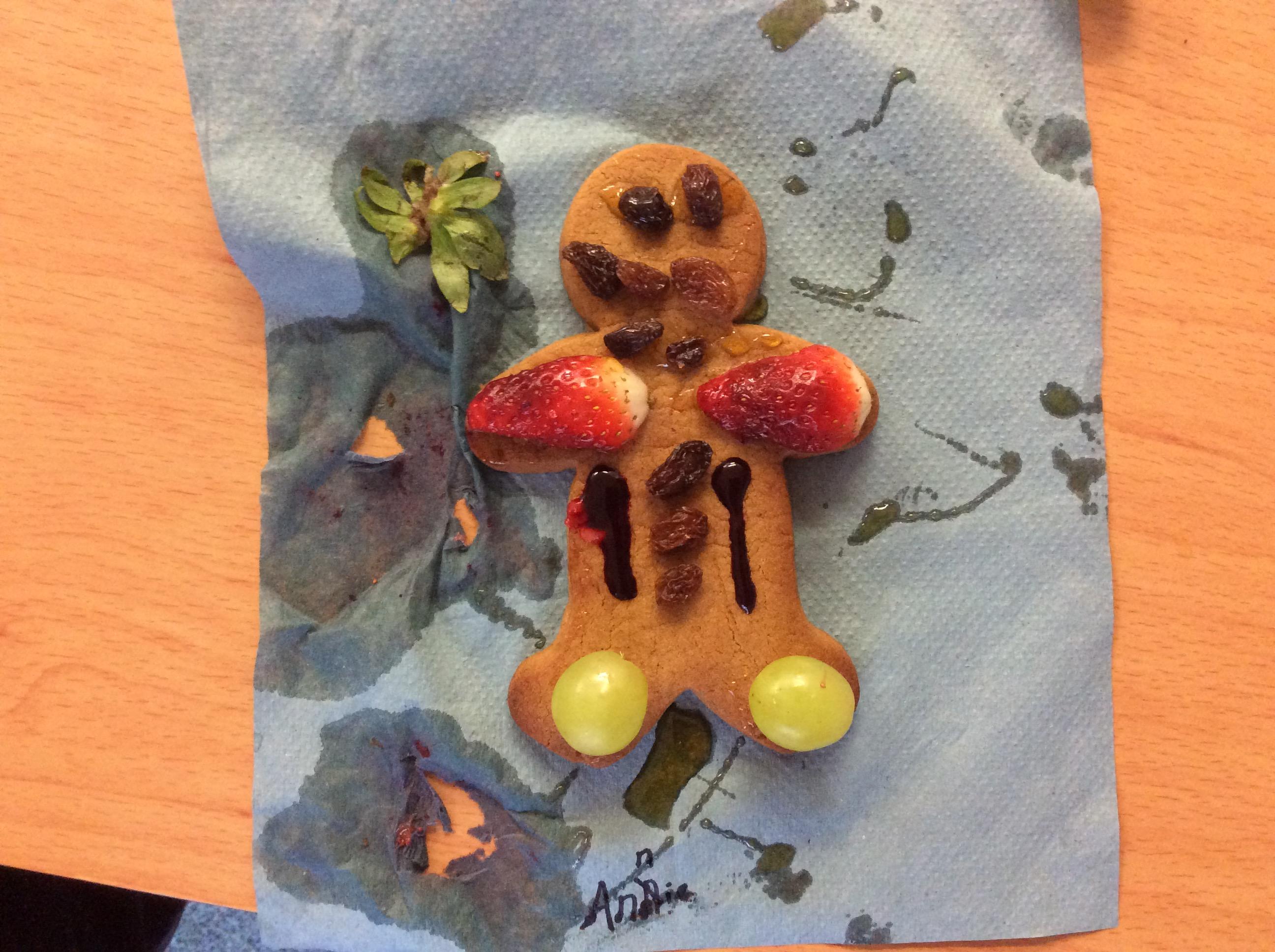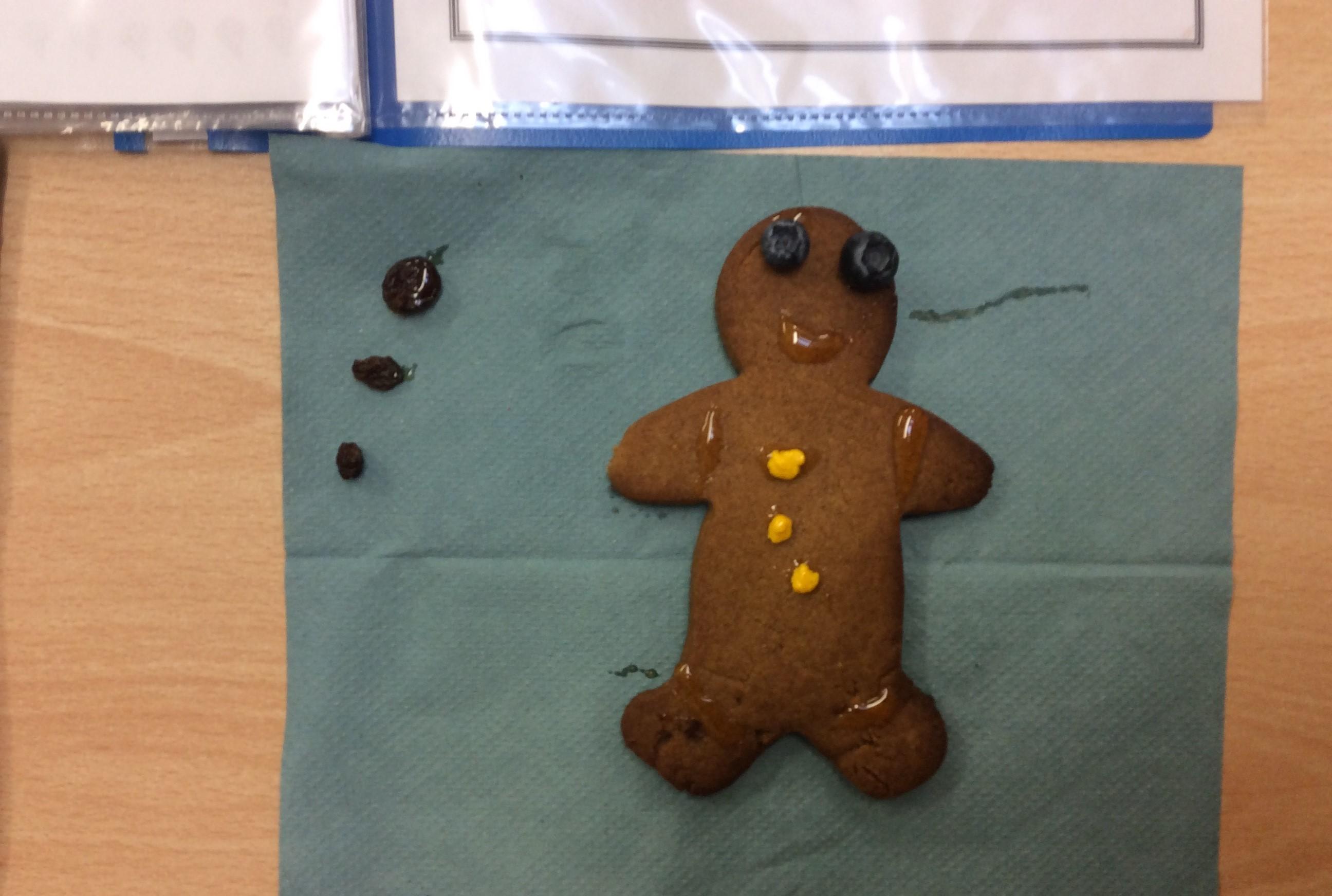 In our lesson today we made Gingerbread Men and then decorated them with healthy ingredients. We followed our designs carefully, making any adjustments needed as necessary. At the end of our lesson Mrs Cousins and Mr Firmstone-Hill came in to judge our Gingerbread Men and select two they would choose to buy based on their appearance, how healthy they were and how close to they were to the design.