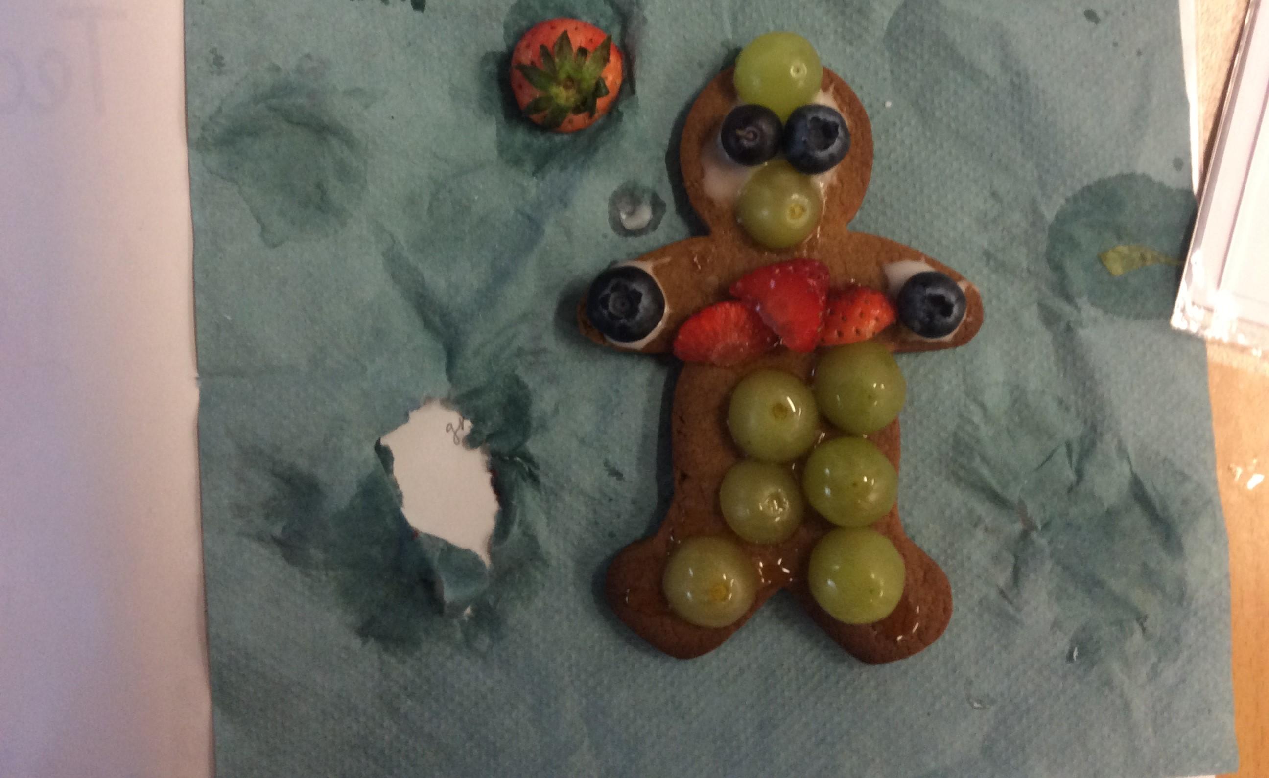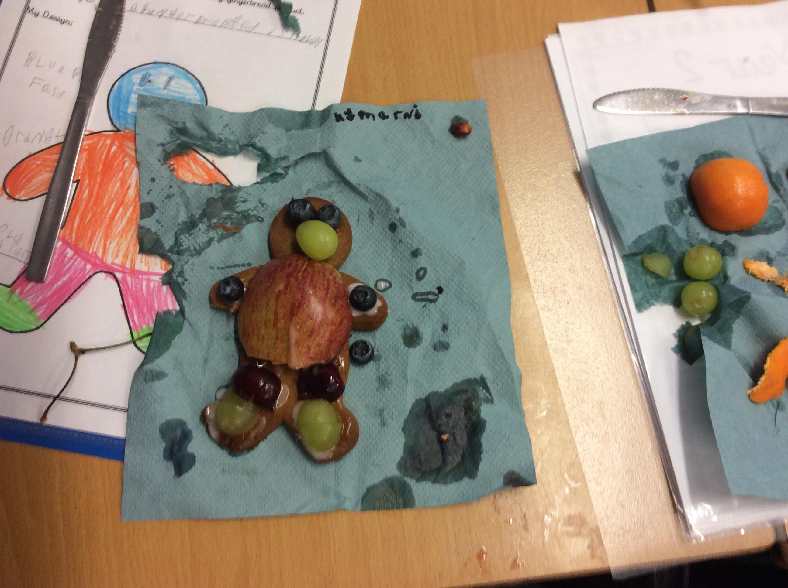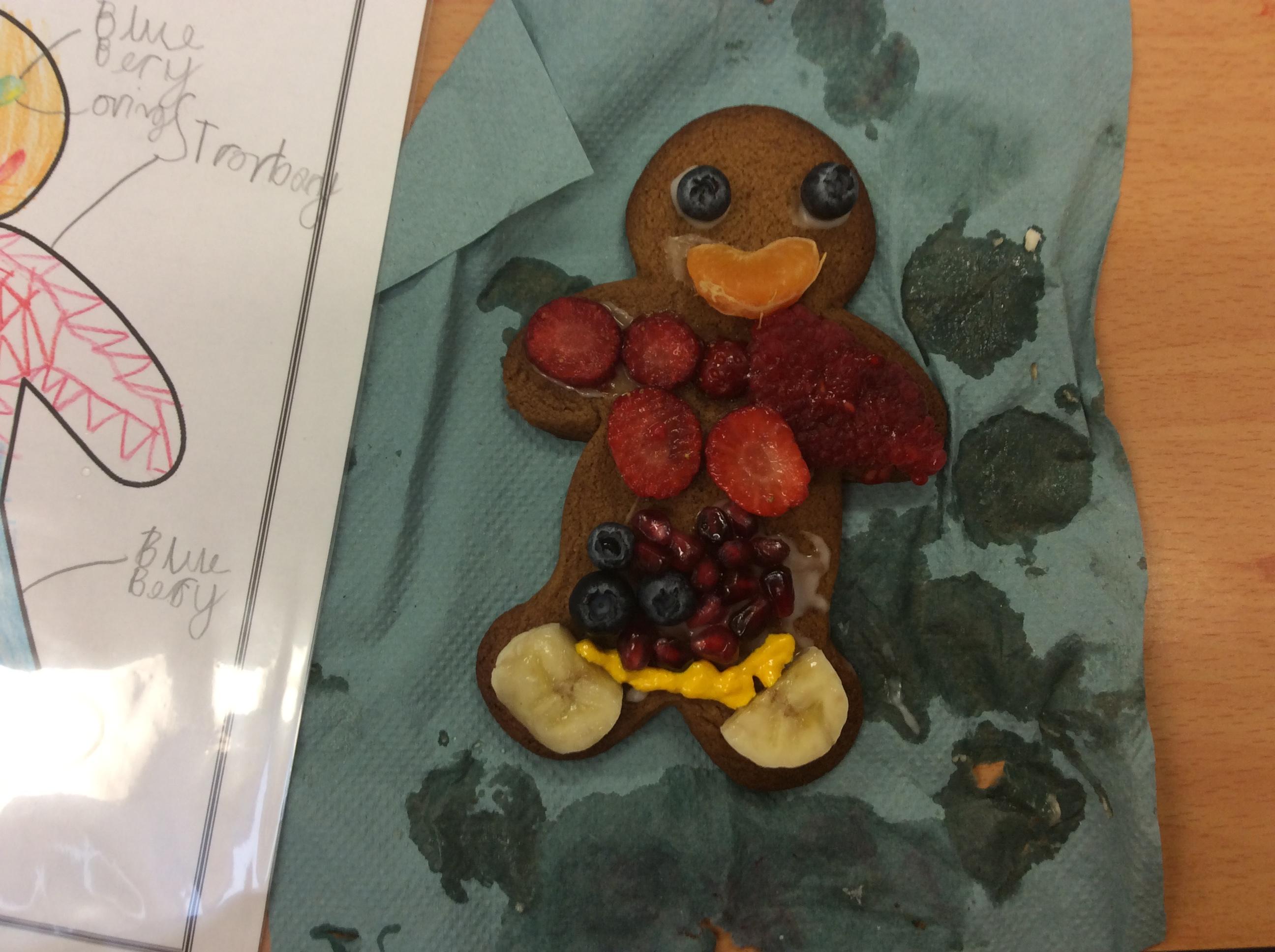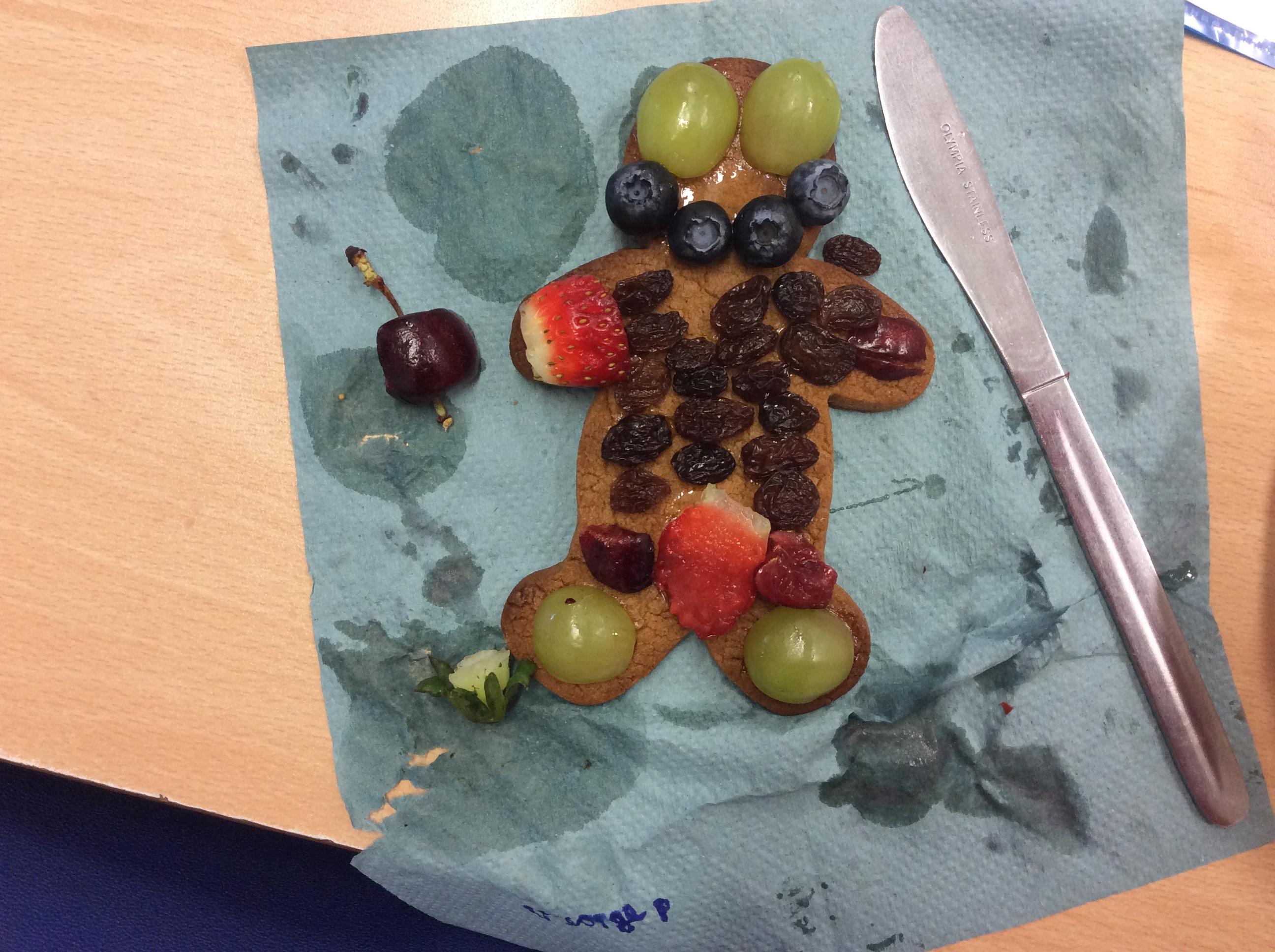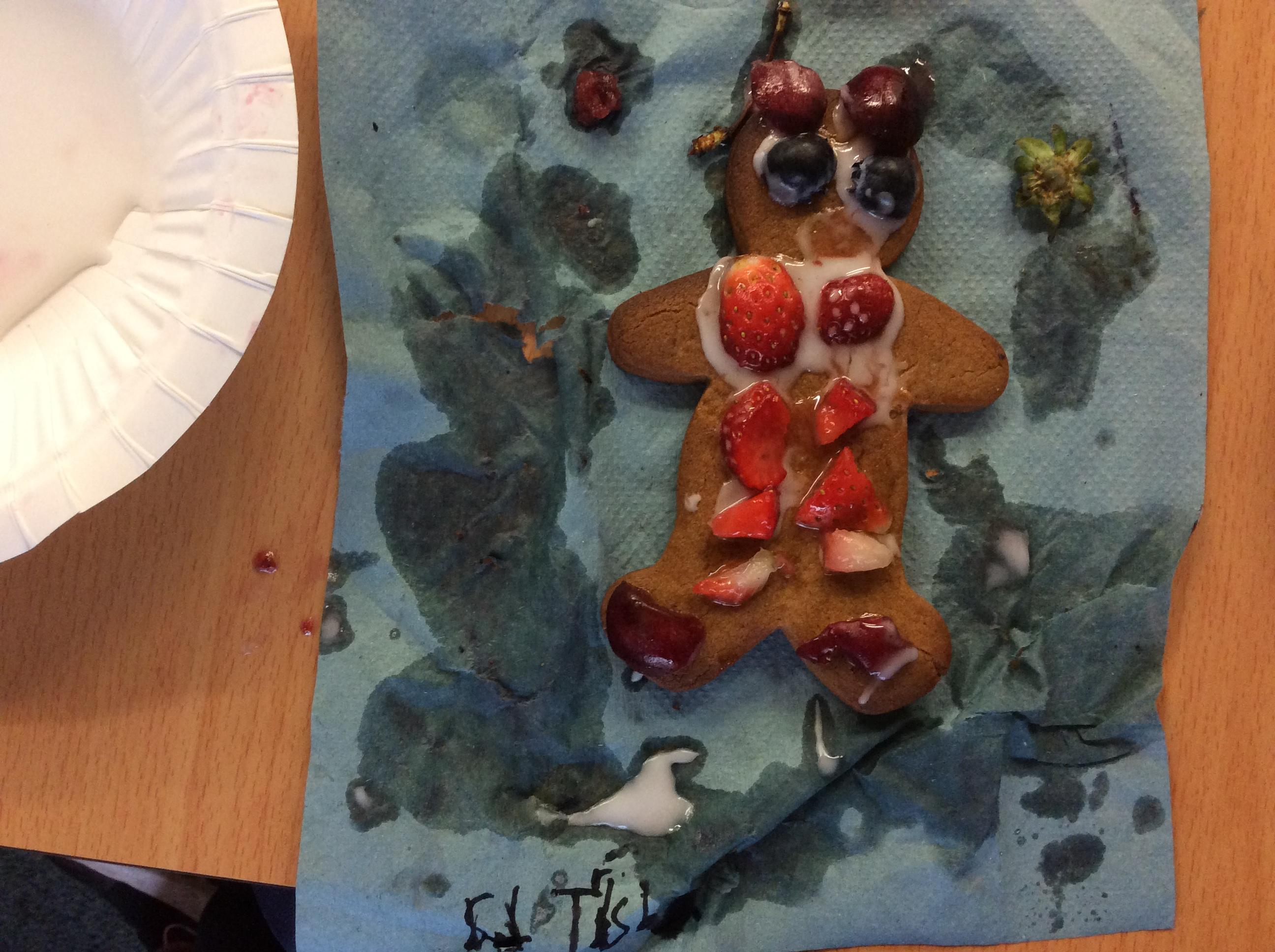 In our lesson today we made Gingerbread Men and then decorated them with healthy ingredients. We followed our designs carefully, making any adjustments needed as necessary. At the end of our lesson Mrs Cousins and Mr Firmstone-Hill came in to judge our Gingerbread Men and select two they would choose to buy based on their appearance, how healthy they were and how close to they were to the design.