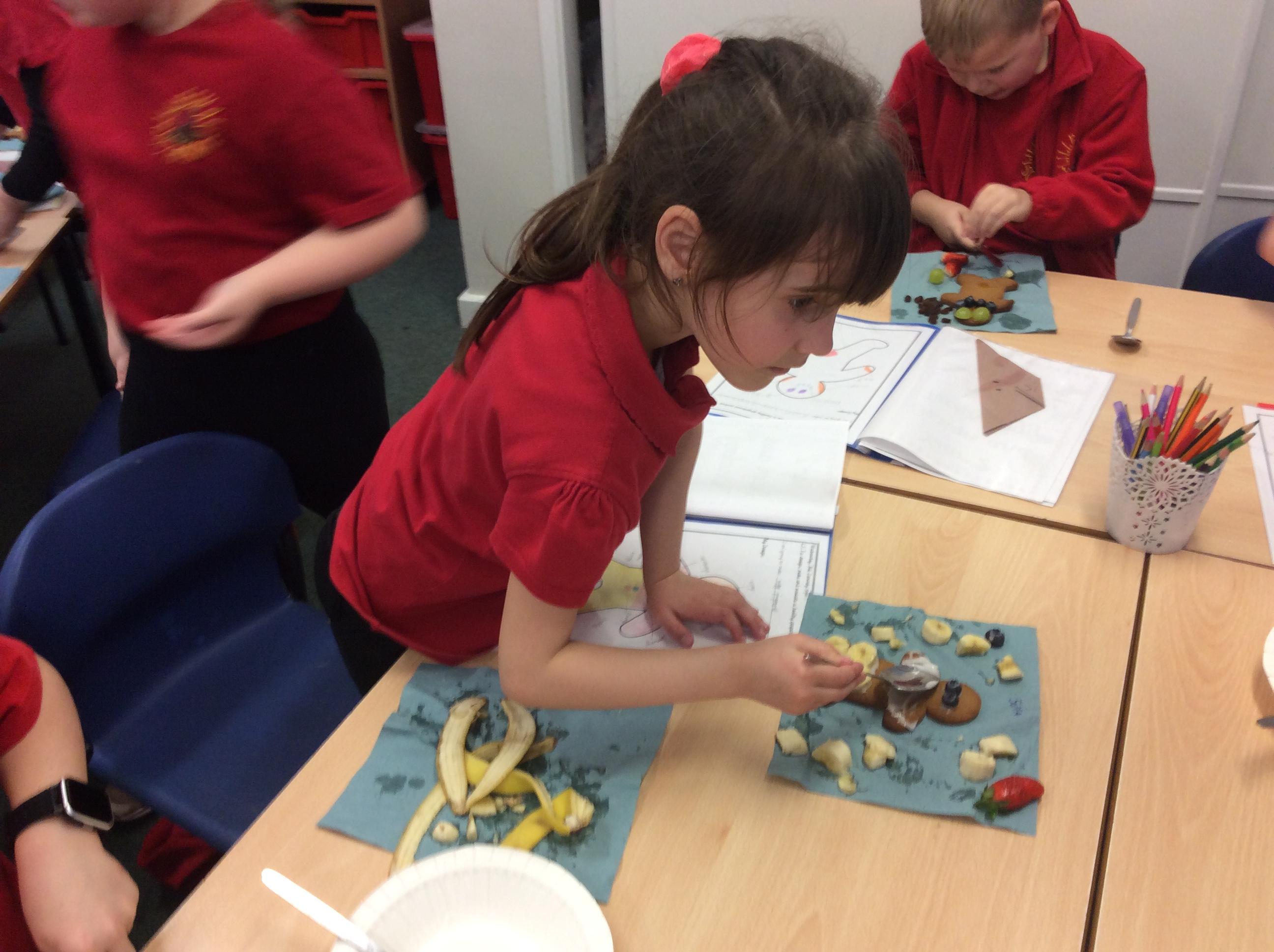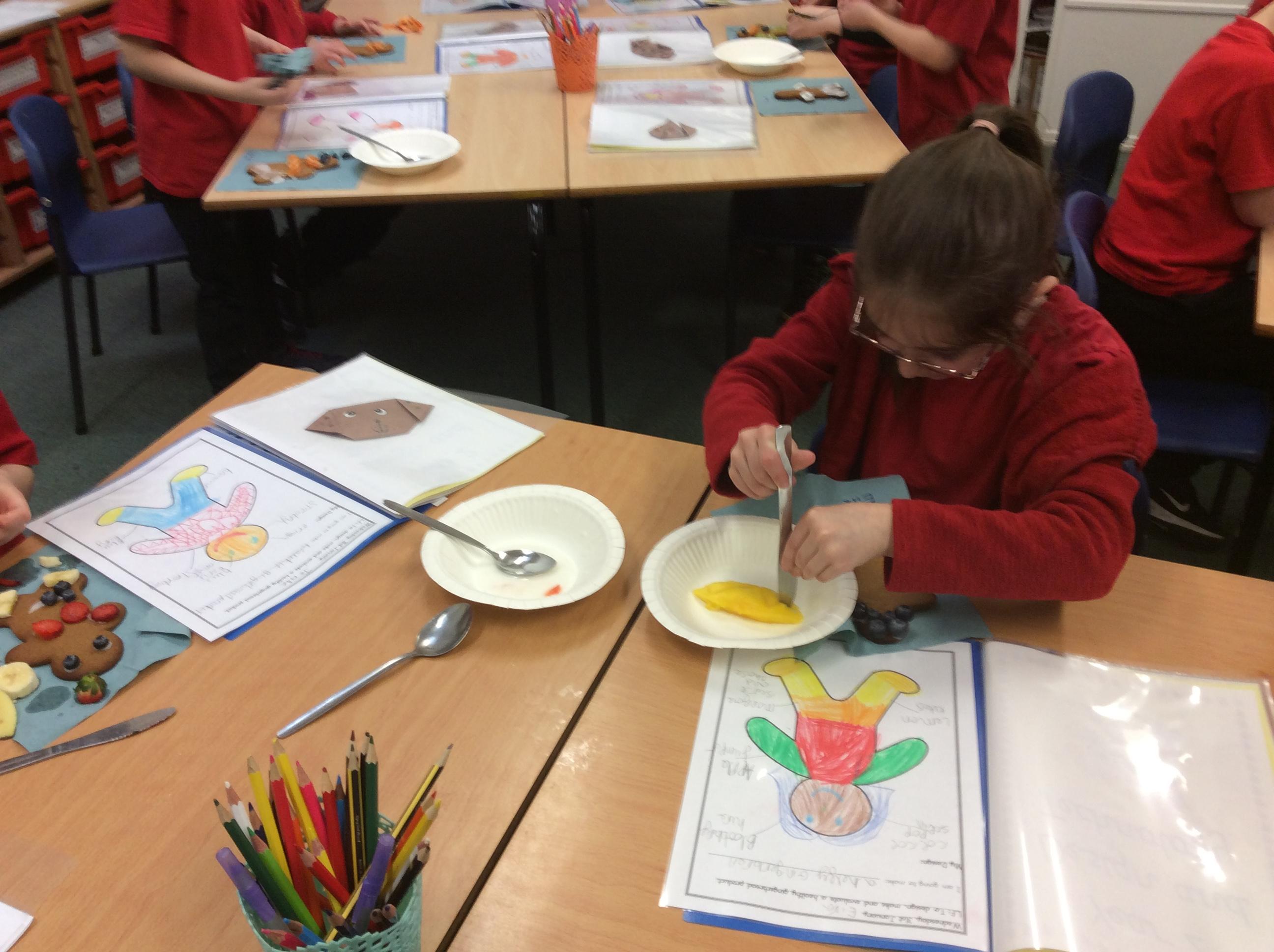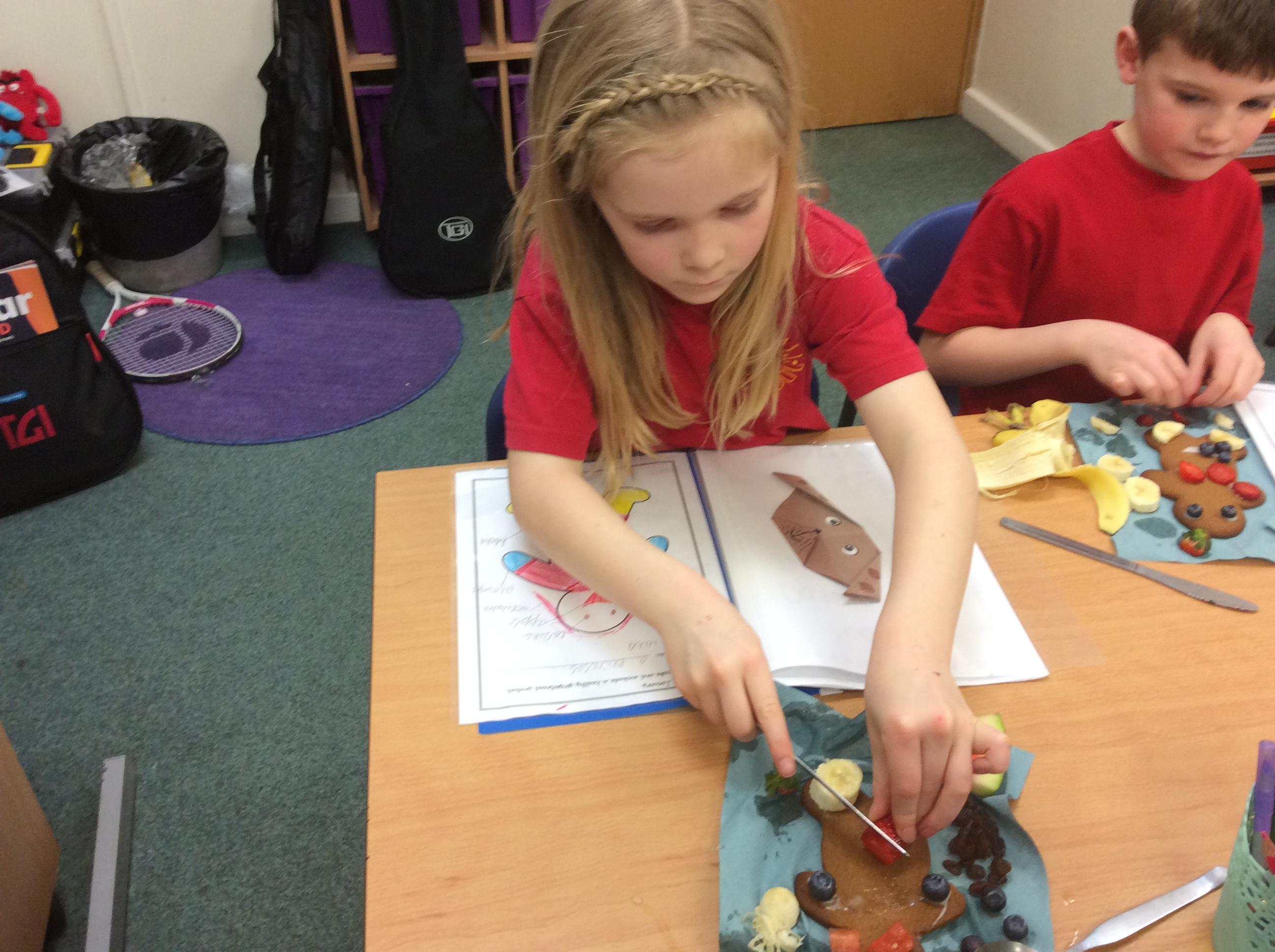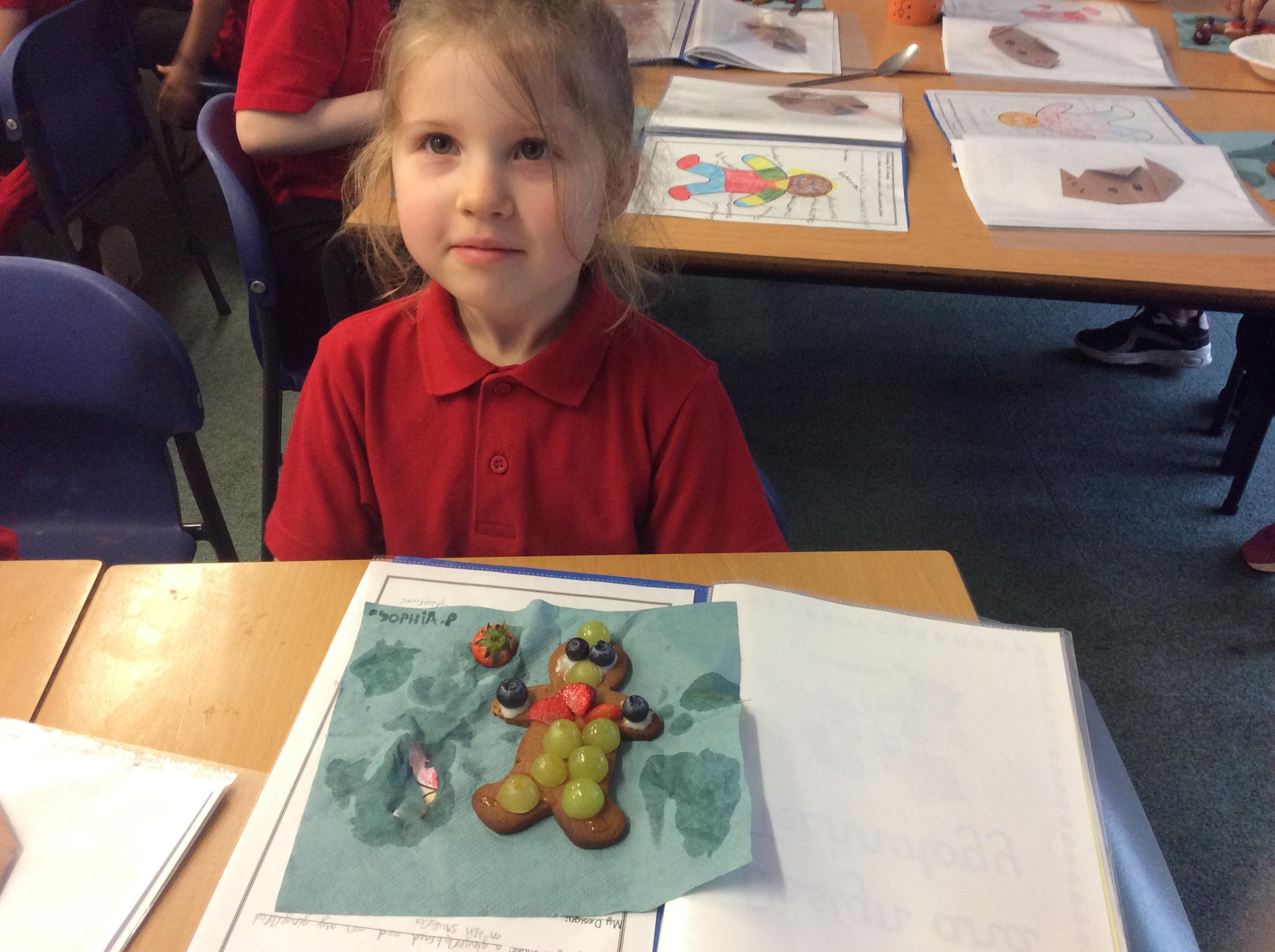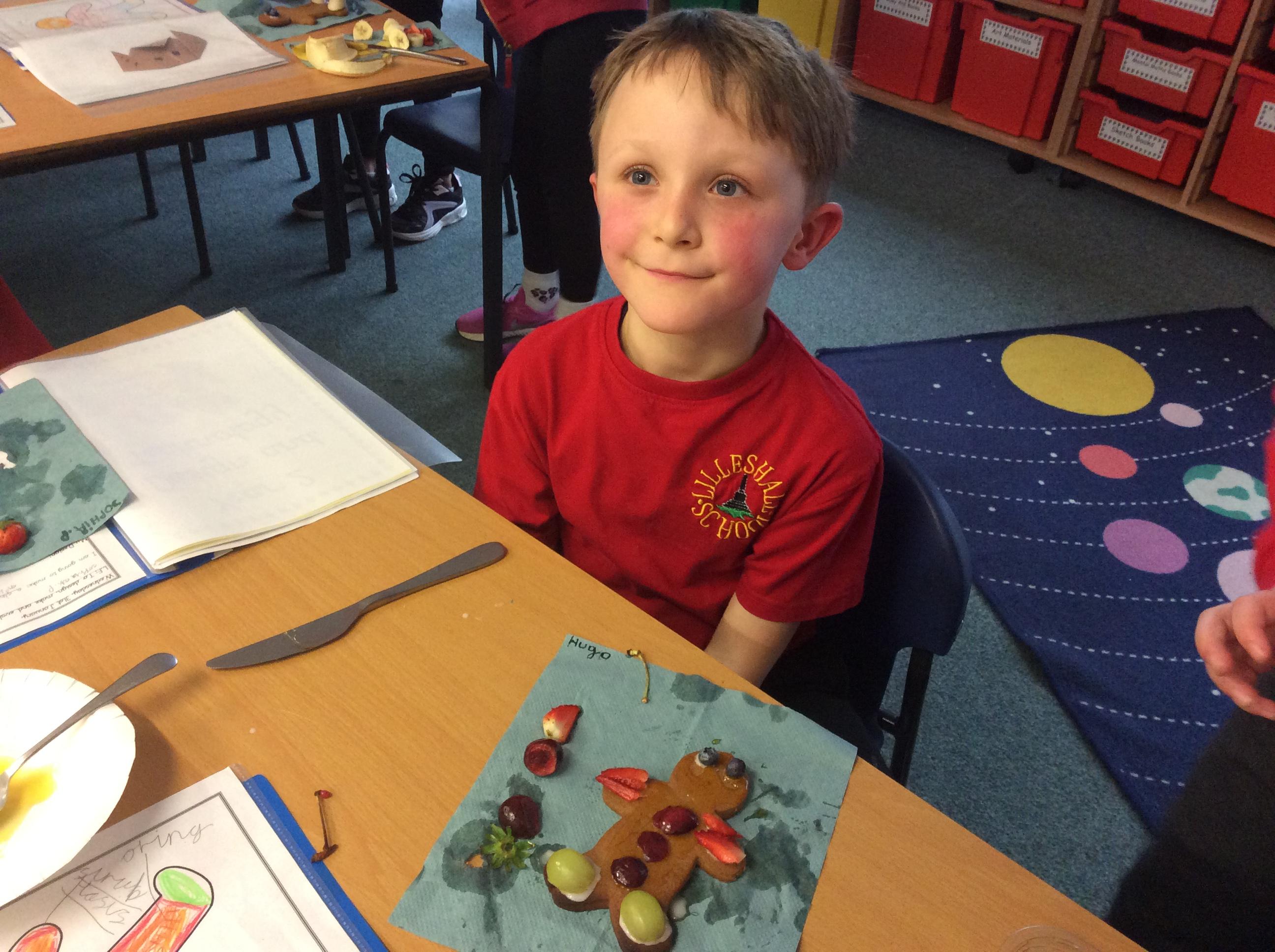 In our lesson today we made Gingerbread Men and then decorated them with healthy ingredients. We followed our designs carefully, making any adjustments needed as necessary. At the end of our lesson Mrs Cousins and Mr Firmstone-Hill came in to judge our Gingerbread Men and select two they would choose to buy based on their appearance, how healthy they were and how close to they were to the design.