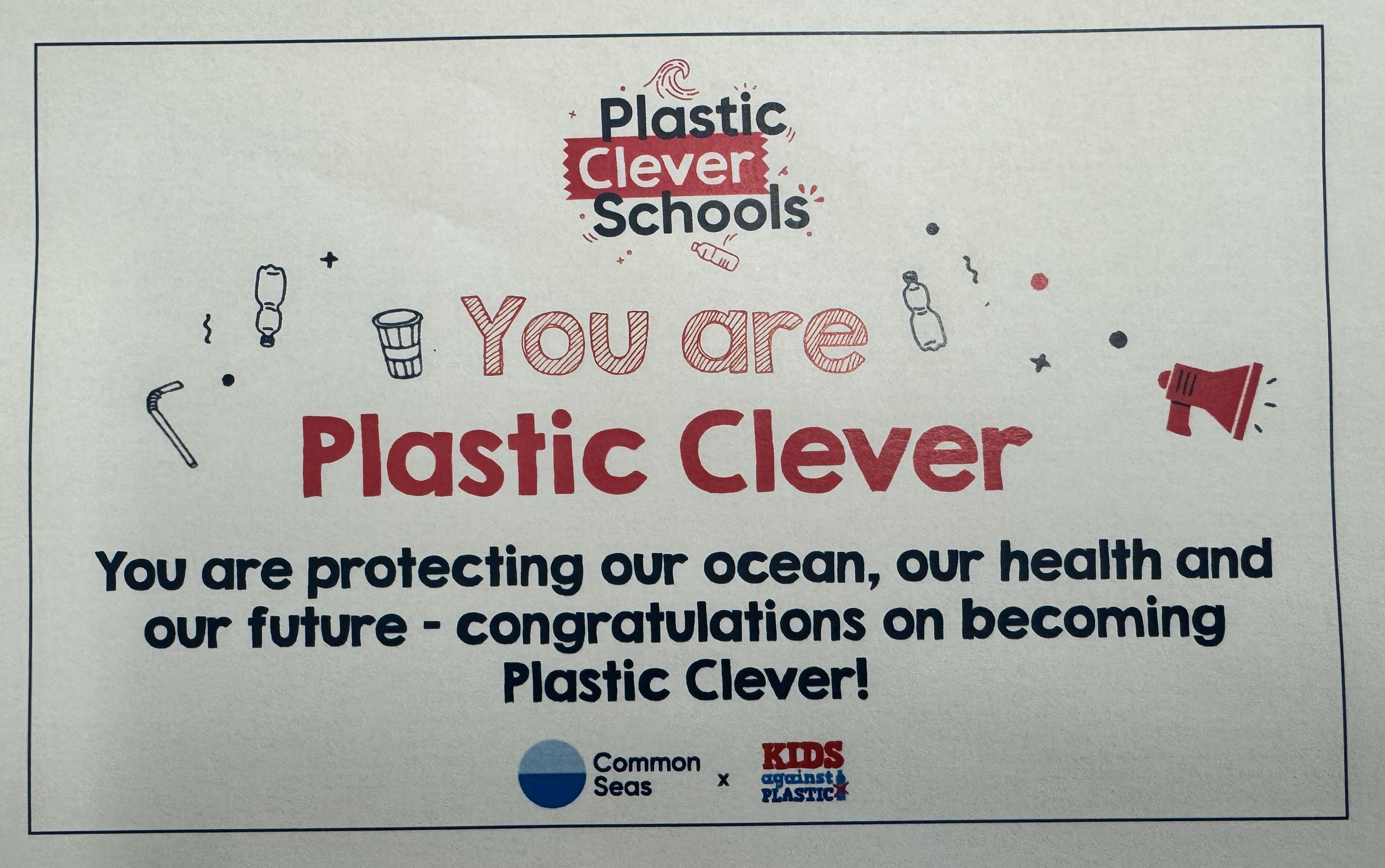 We have also worked hard to achieve The Plastic Clever School Award. We have successfully completed all of the levels and can now say that we are a plastic clever school.