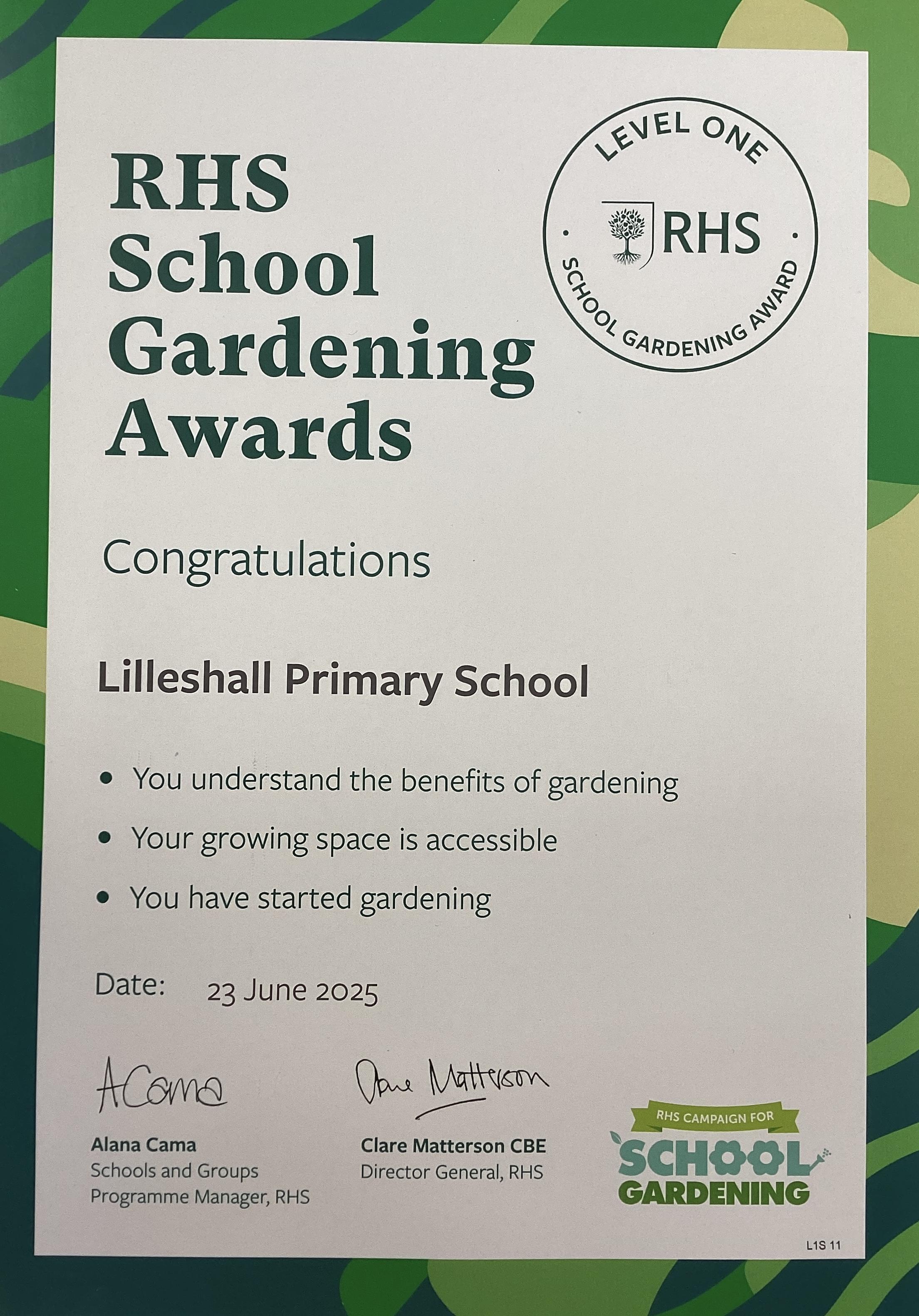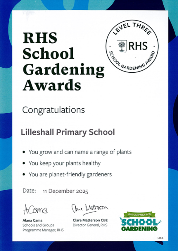 In the next academic year, we will once again be working on maintaining our Green Flag status. We have also achieved the RHS School Gardening Award Level 1 and have submitted evidence for Level 2. Once we know the outcome of this, we will move onto the further levels throughout the year.