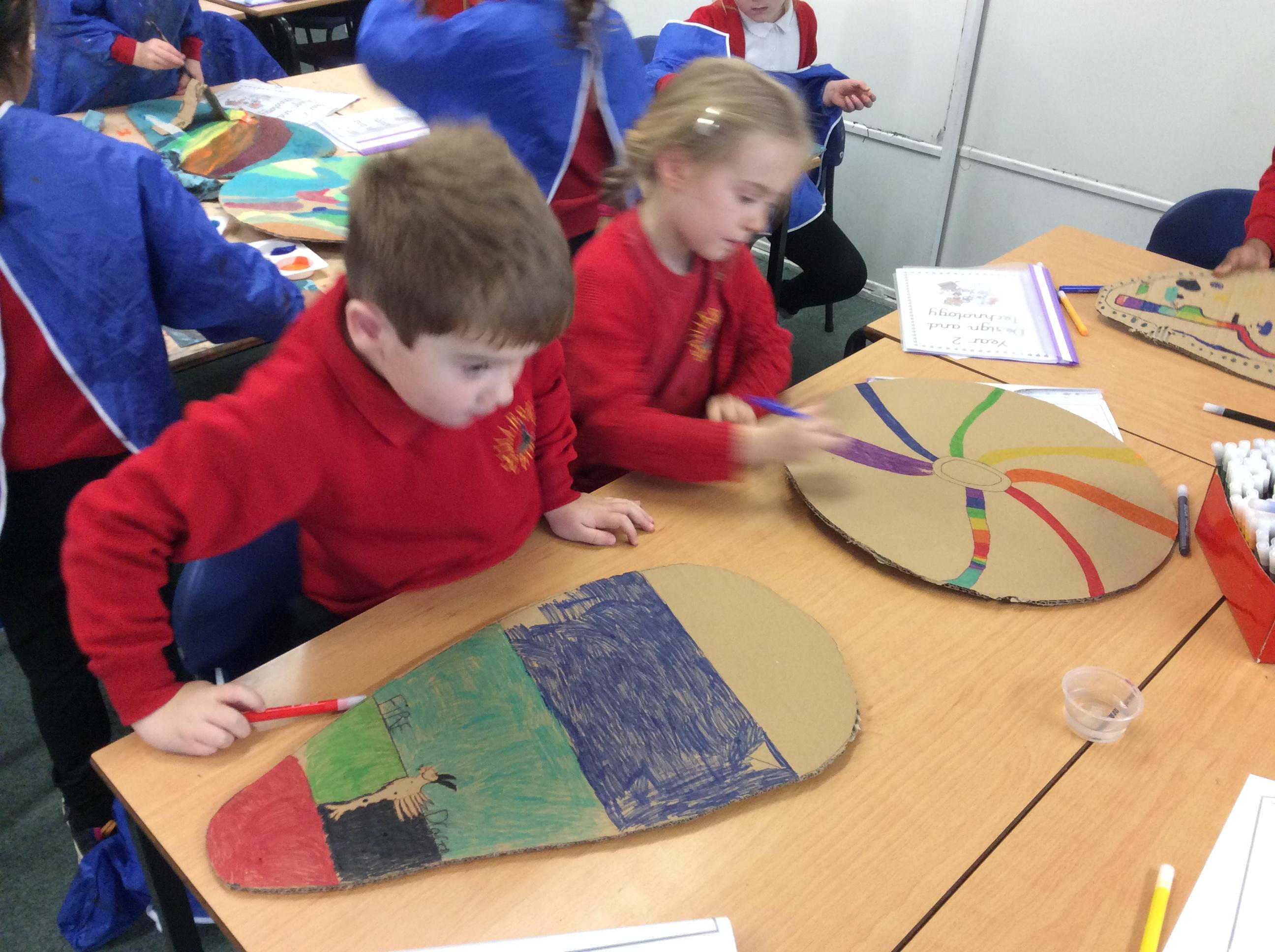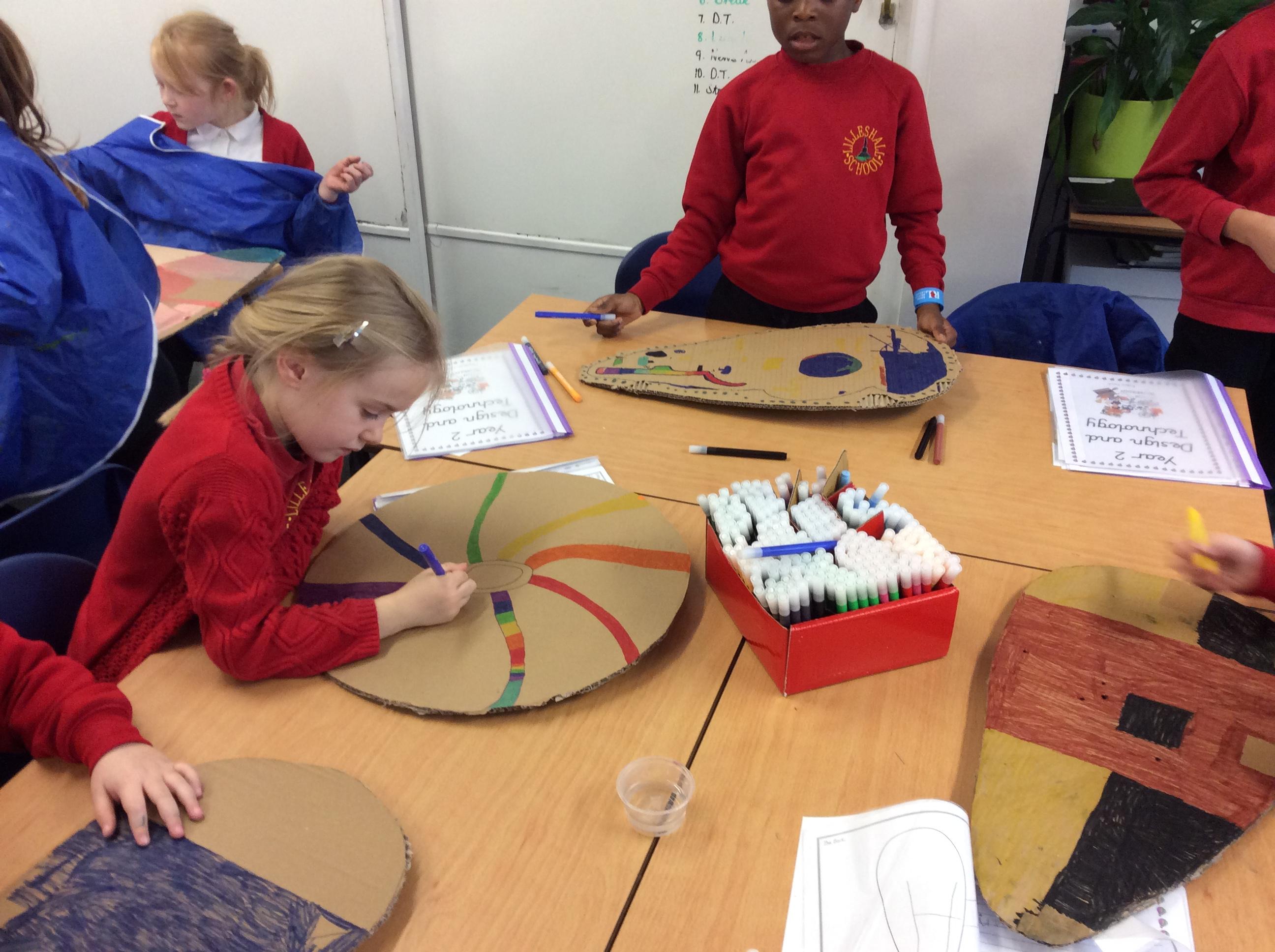 As part of our history topic on The Normans we have enjoyed designing and making shields in Design Technology. We chose whether we wanted an Anglo Saxon or a Norman shield as that determined our shape. We then designed the front and back of the shield and chose which type of fold to use to attach the handle and with what joining material. After we made our shields we evaluated them.