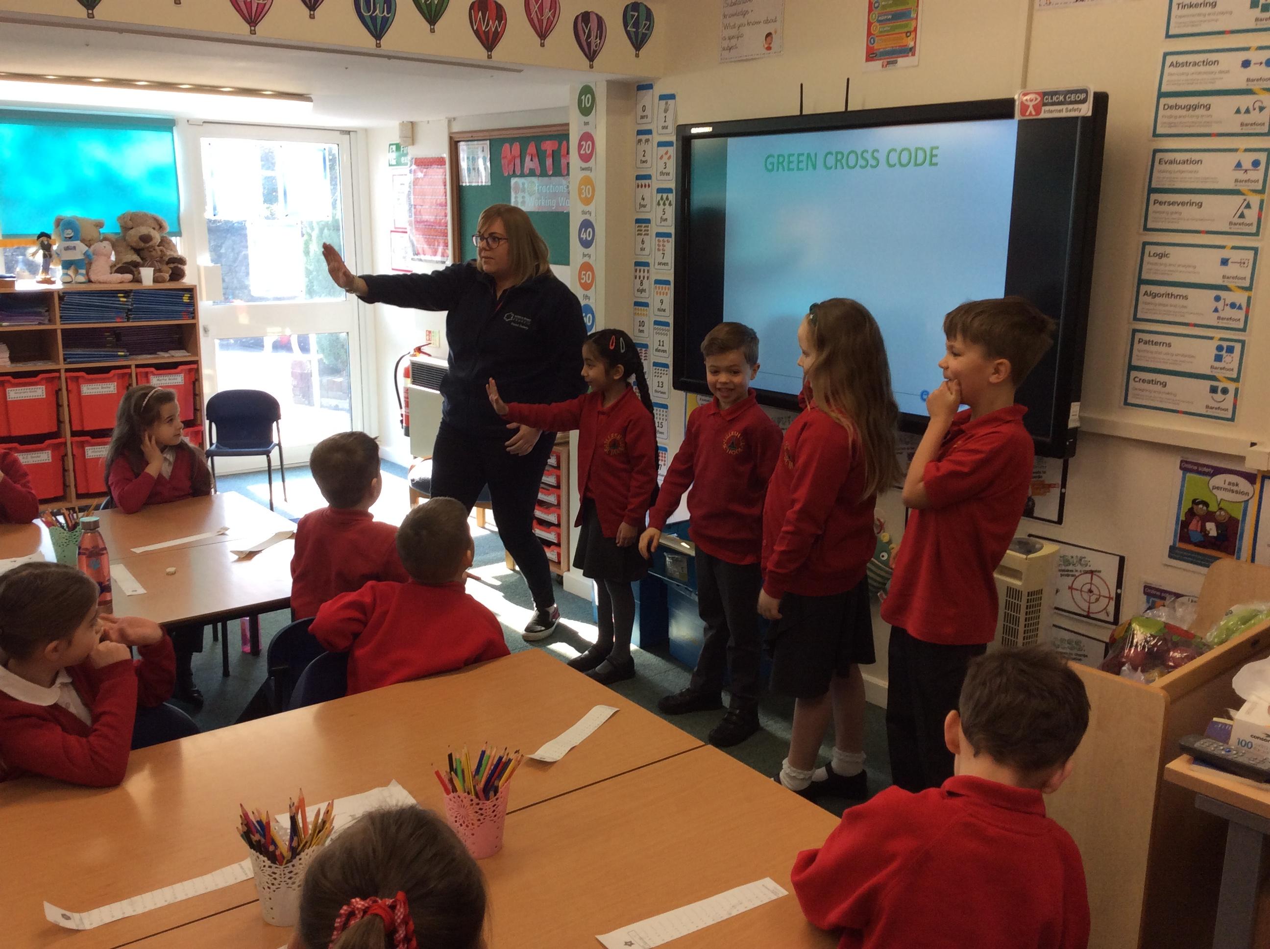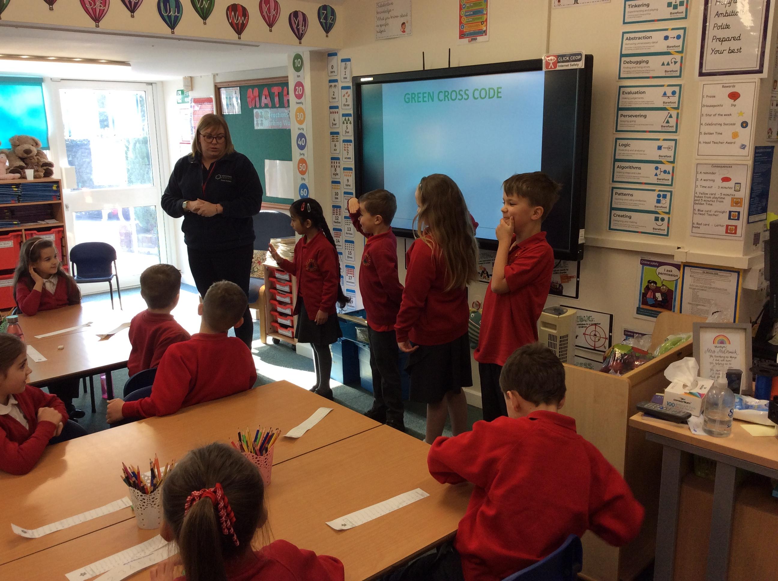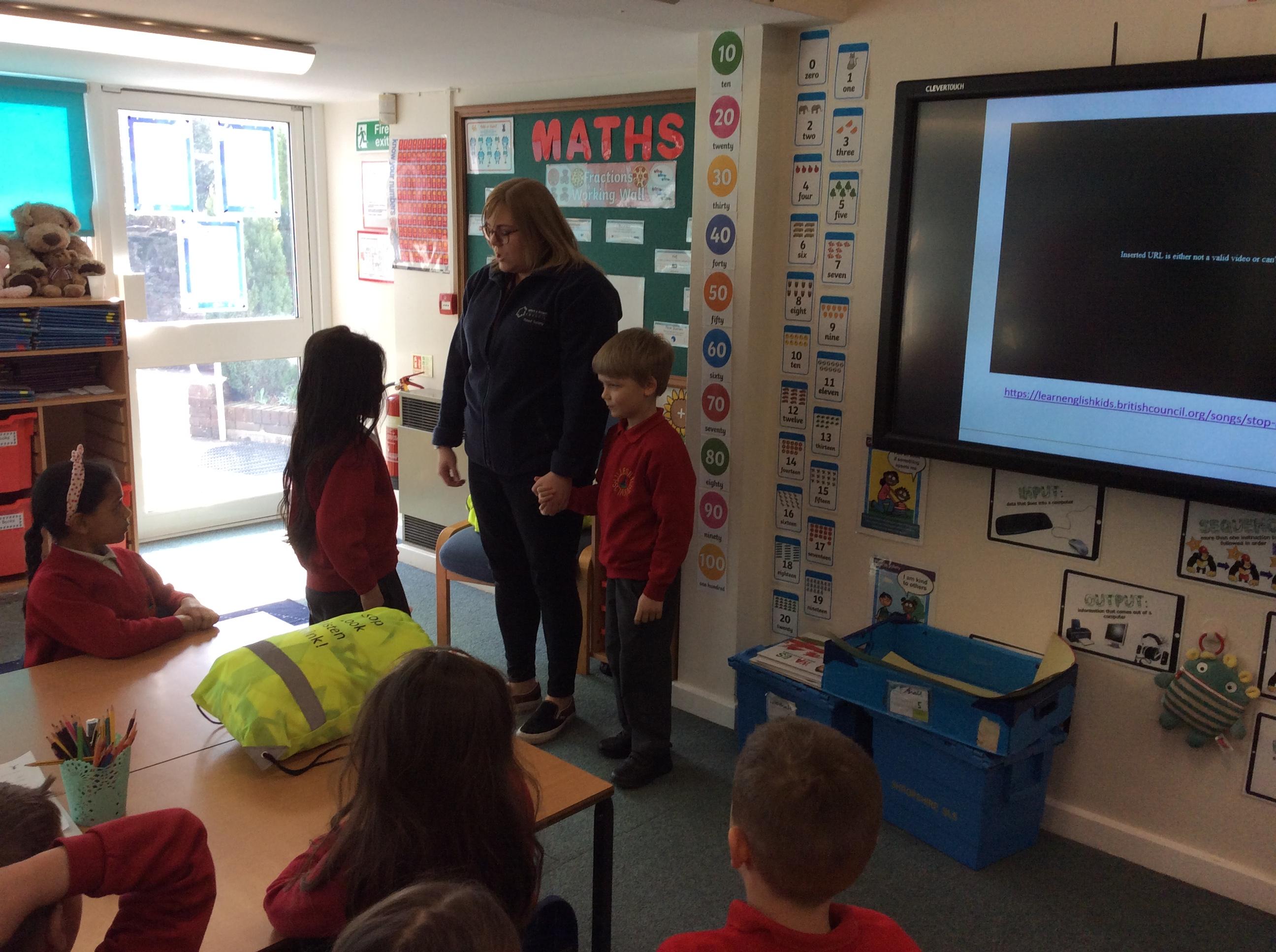 We had a very informative day with Sian from the road safety department at Telford and Wrekin Council. We learned the Green Cross Code and all about crossing the road safely. We also learned about the importance of holding an adult's hand when out and about near traffic and wearing reflective or bright clothing so we can be seen easily by car drivers. We learned a catchy song to help us remember our Green Cross Code. We then put our learning into practice by going out in small groups for a supervised walk around the village.