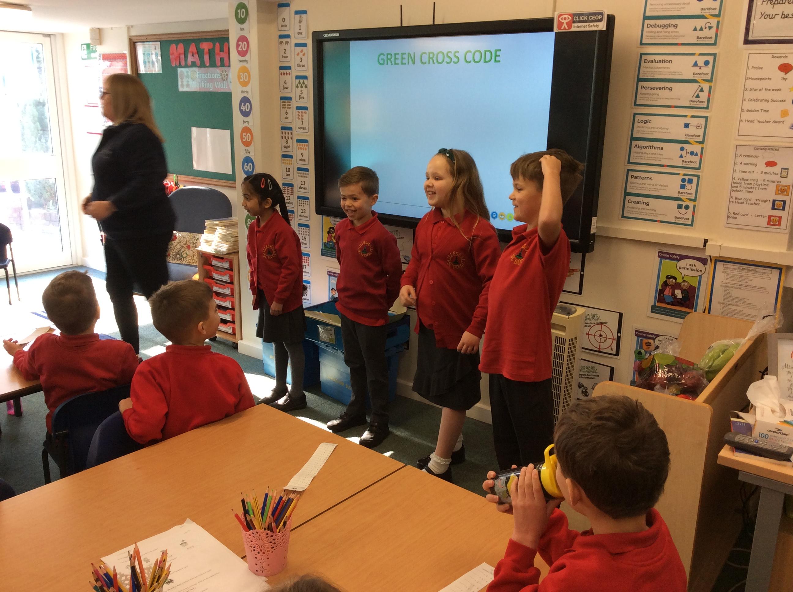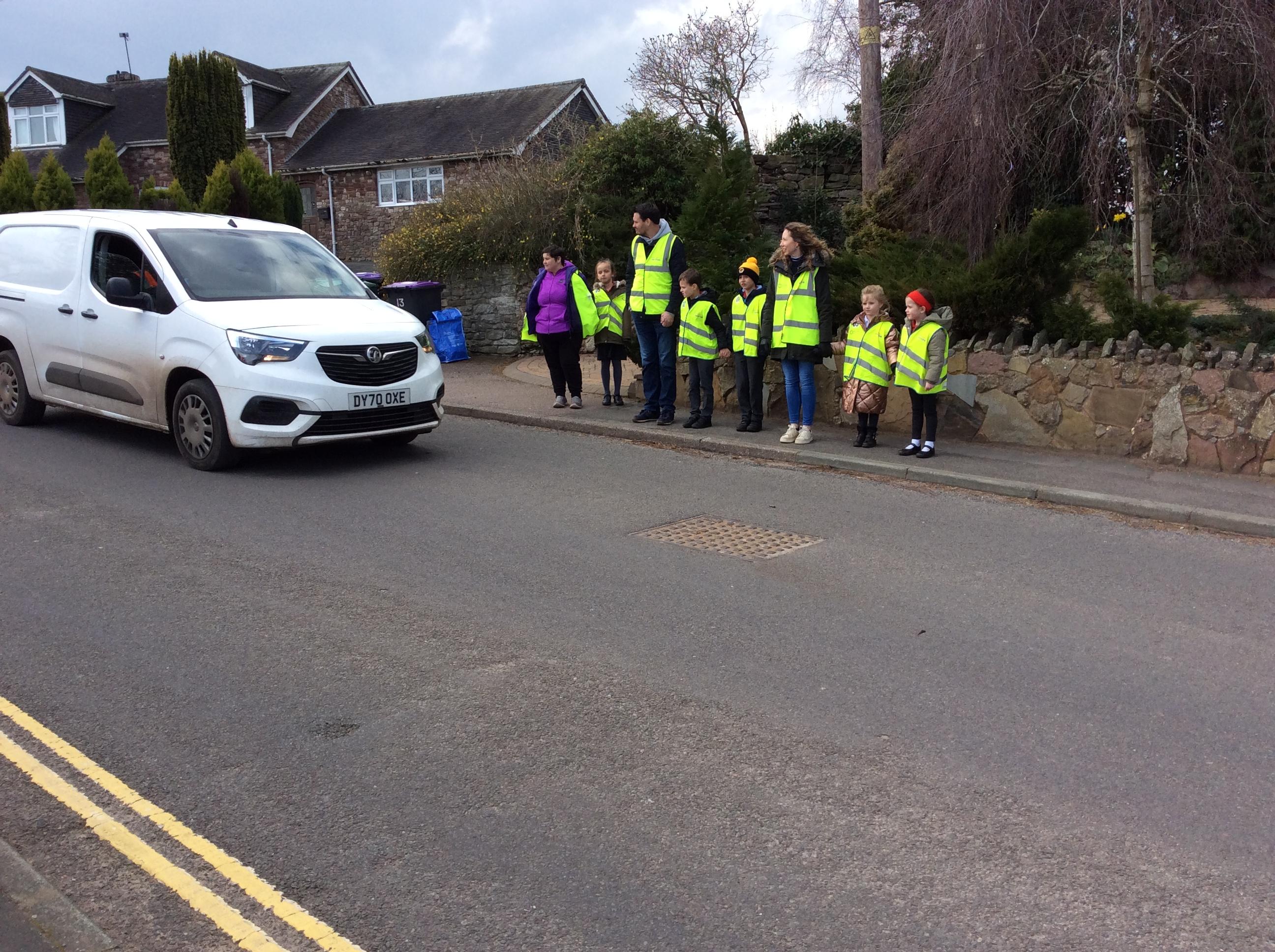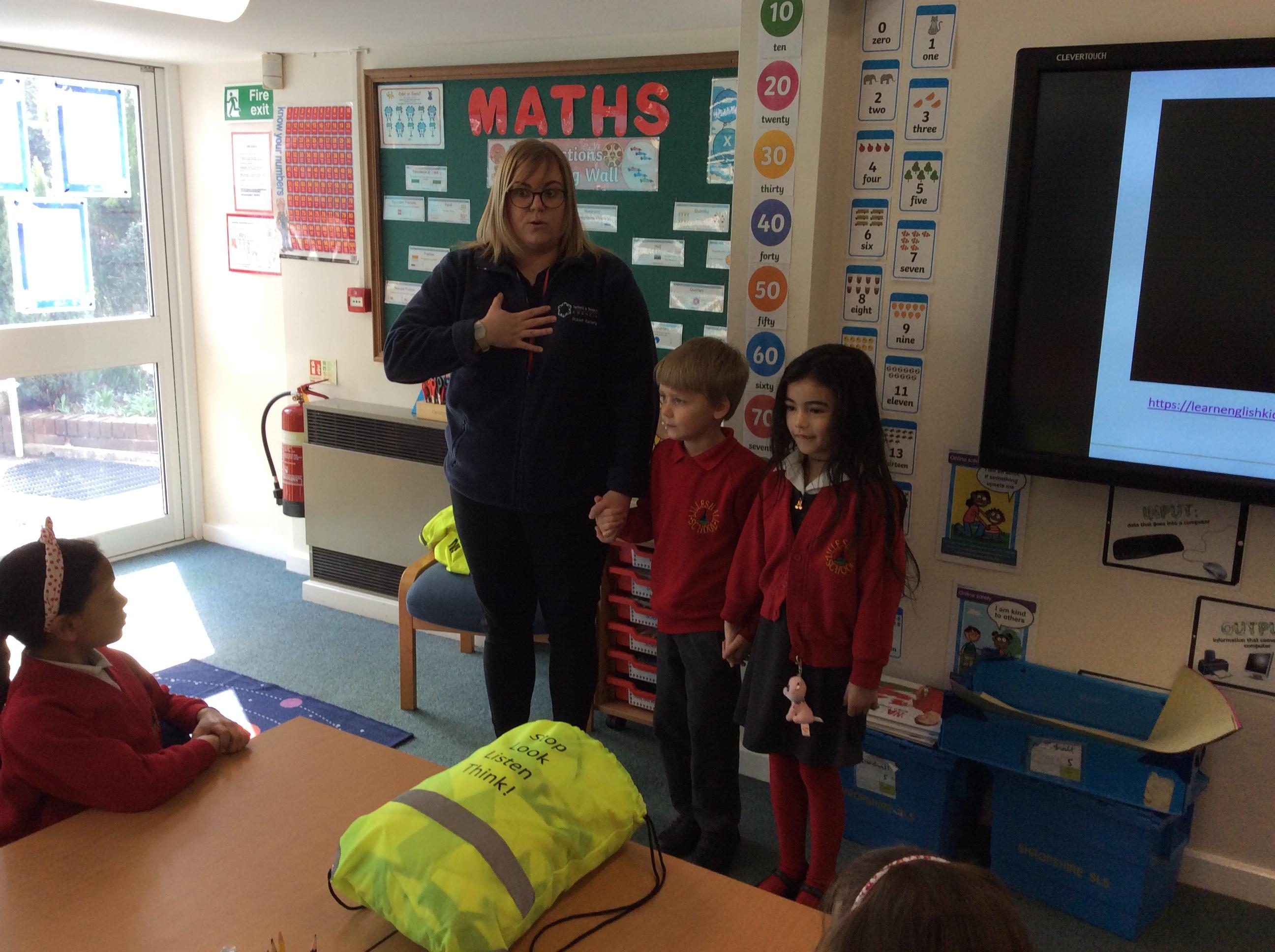 We had a very informative day with Sian from the road safety department at Telford and Wrekin Council. We learned the Green Cross Code and all about crossing the road safely. We also learned about the importance of holding an adult's hand when out and about near traffic and wearing reflective or bright clothing so we can be seen easily by car drivers. We learned a catchy song to help us remember our Green Cross Code. We then put our learning into practice by going out in small groups for a supervised walk around the village.