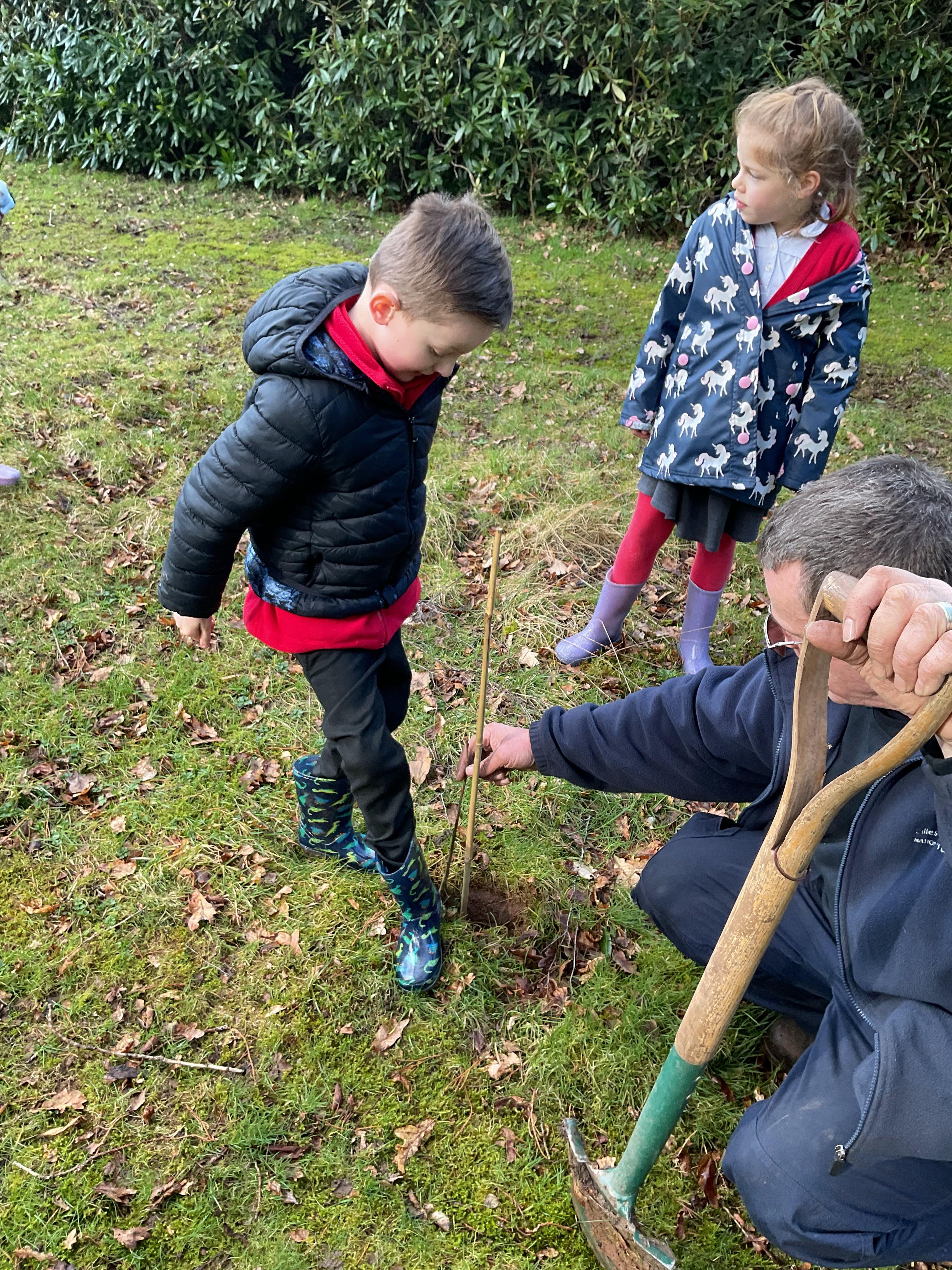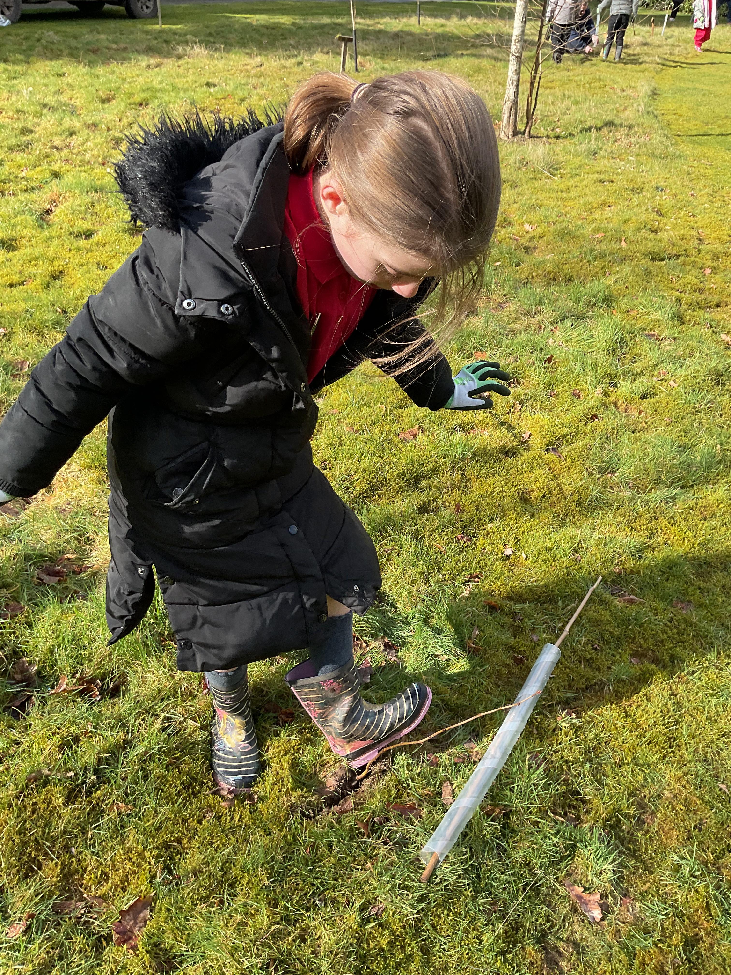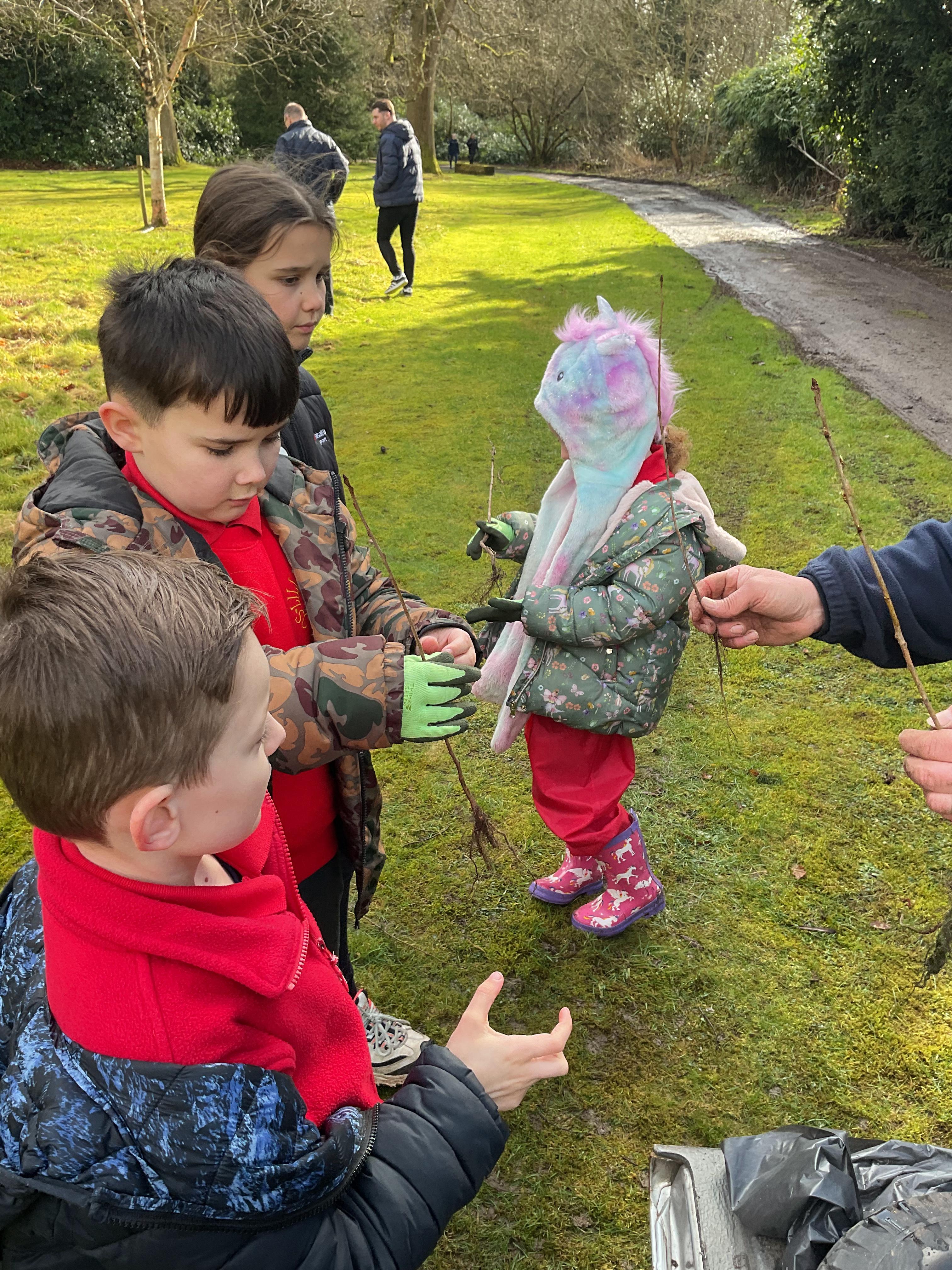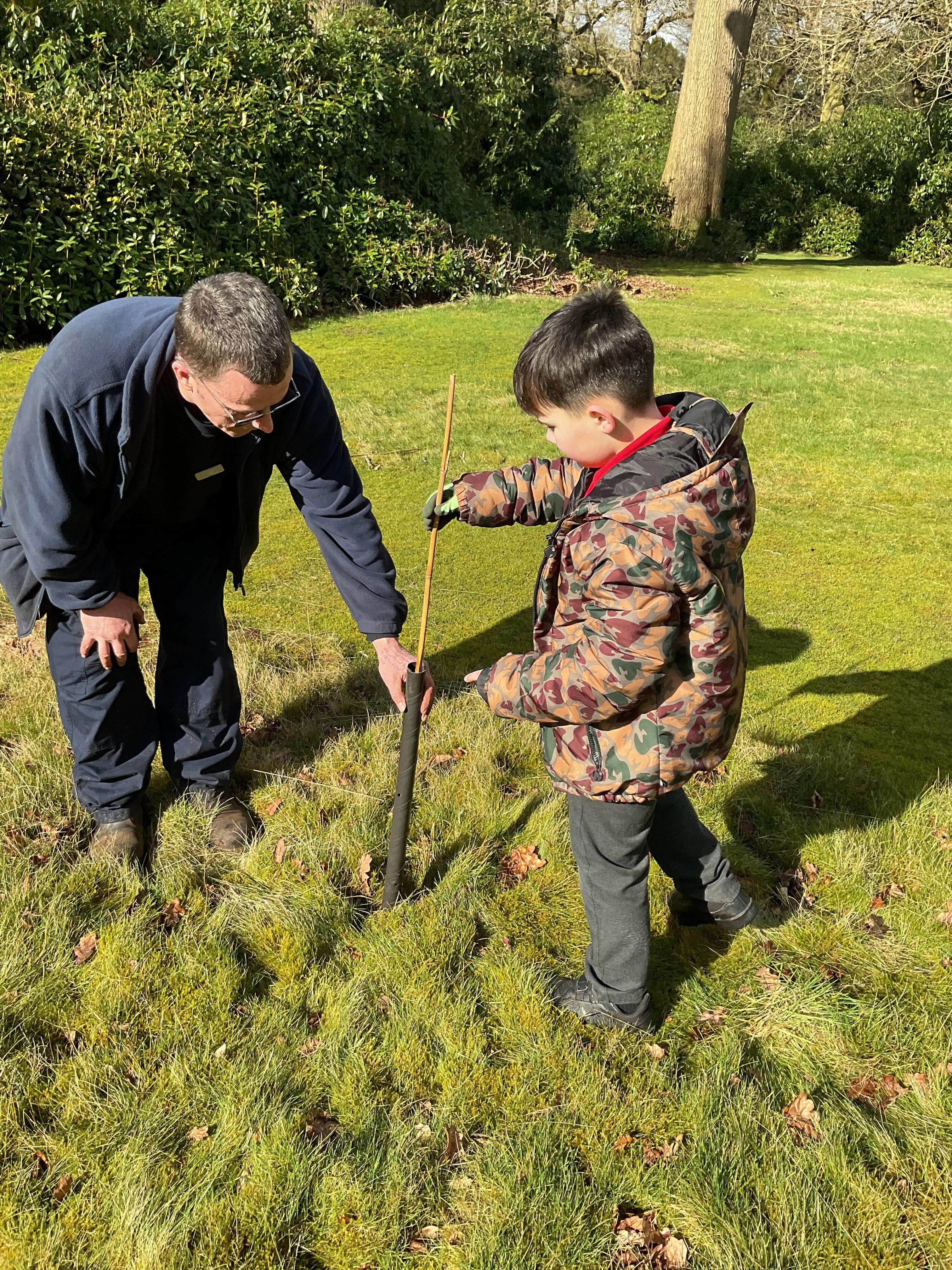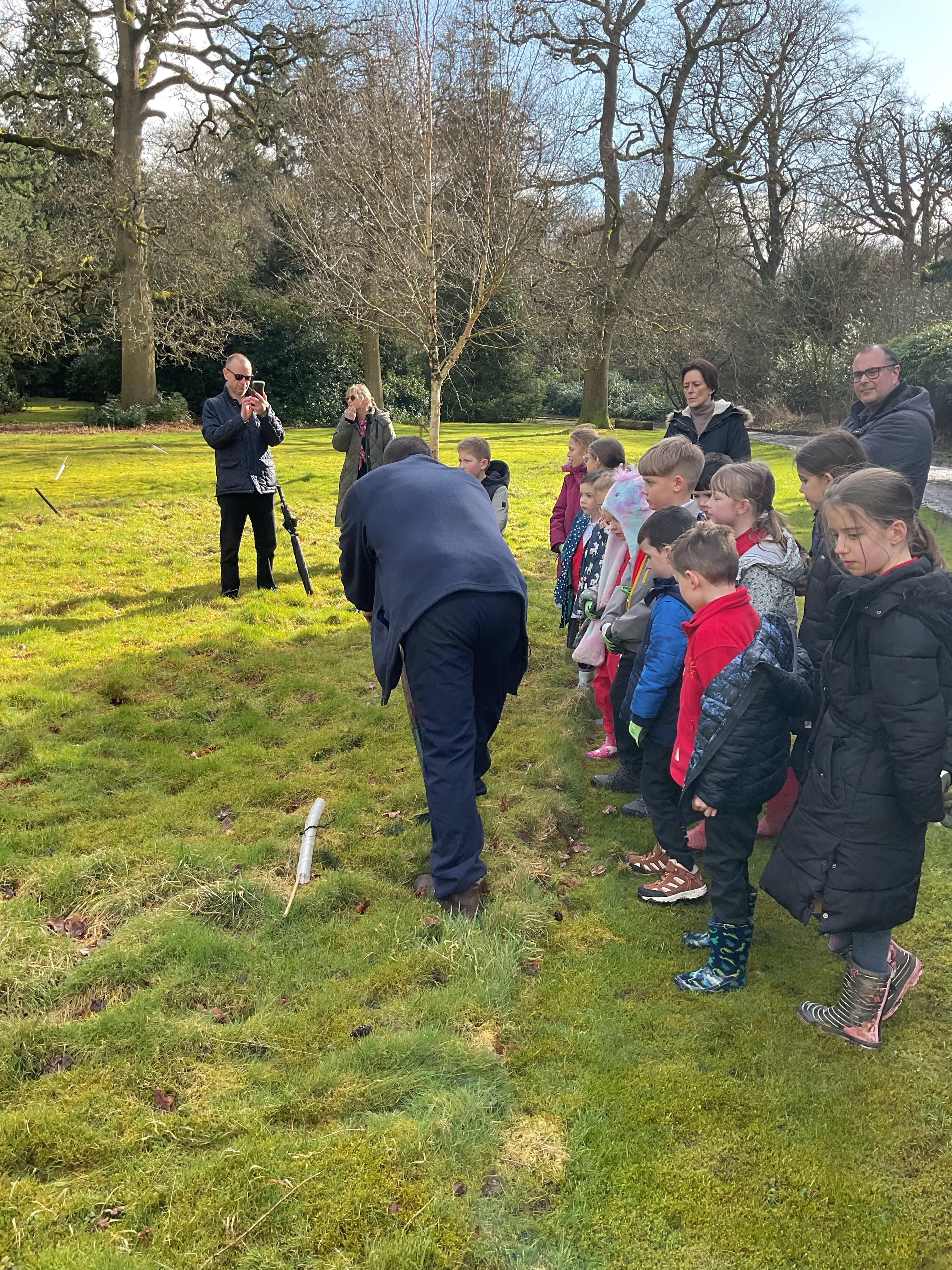 The Eco-Committee had a wonderful afternoon at Lilleshall Hall this week. We were invited by the grounds team at the hall to go along and help them to plant trees to develop their existing wooded area. The head gardener showed us around parts of the grounds including the Dial garden and other formal gardens and also some of the nature trails that are being developed through the grounds. Each member of the committee then planted at least one tree (either an oak, a cherry or a lime) and we talked about how generations in the future would be able to enjoy what they had planted now. We finished off the afternoon with a treat of biscuits and drinks in the restaurant. The staff were all very complimentary about the children’s behaviour and enthusiasm. Well done the Eco-Team!