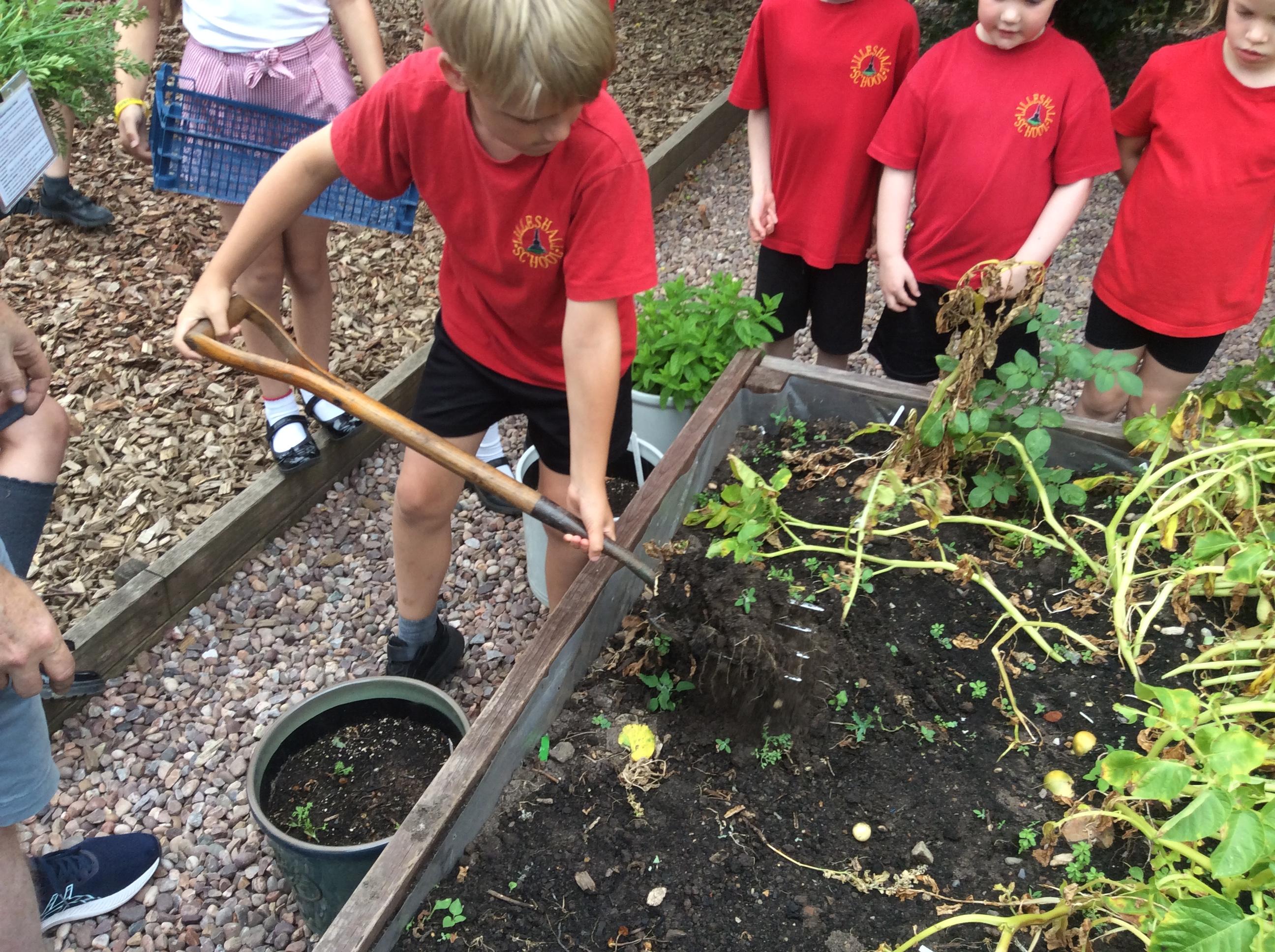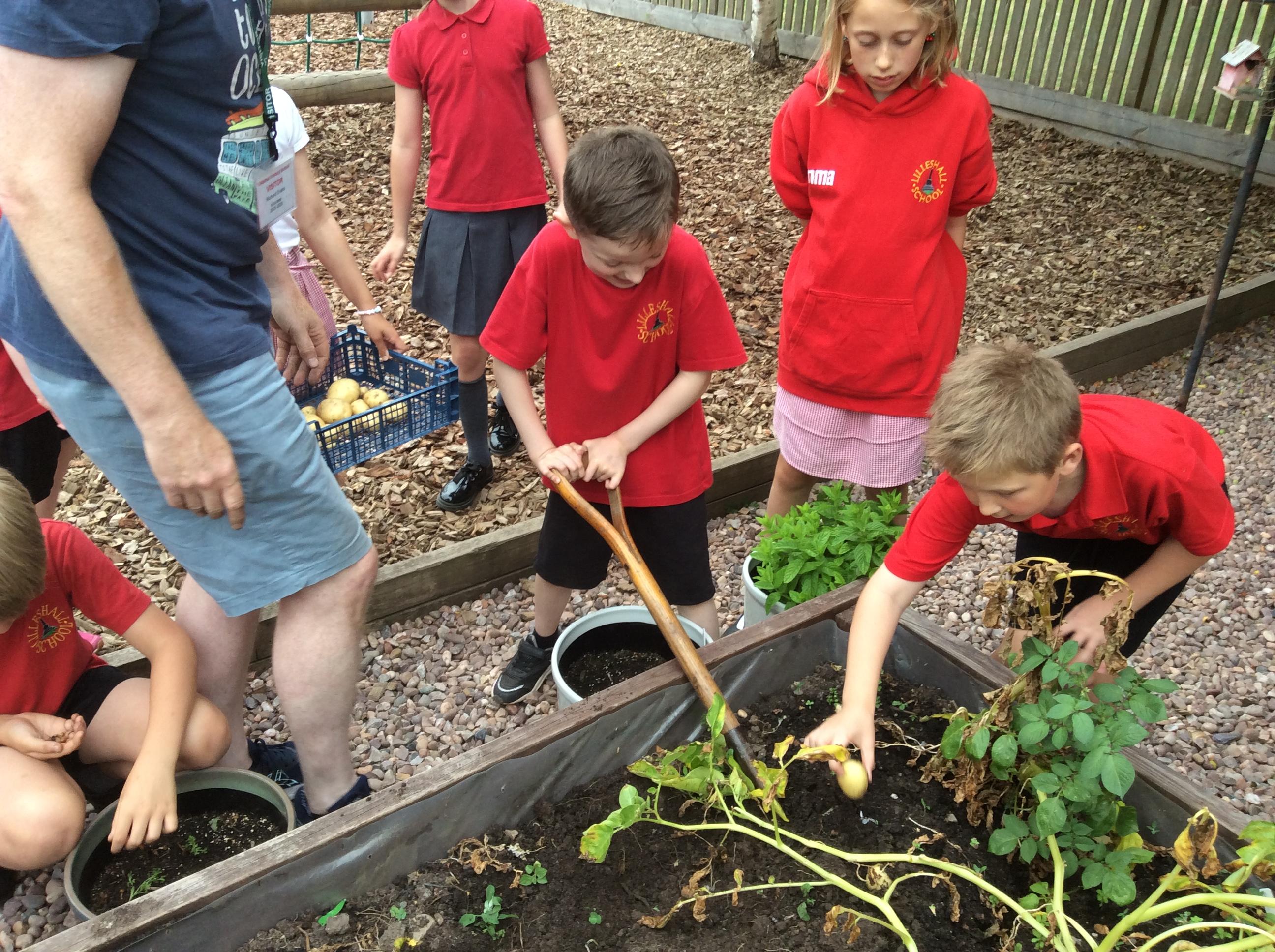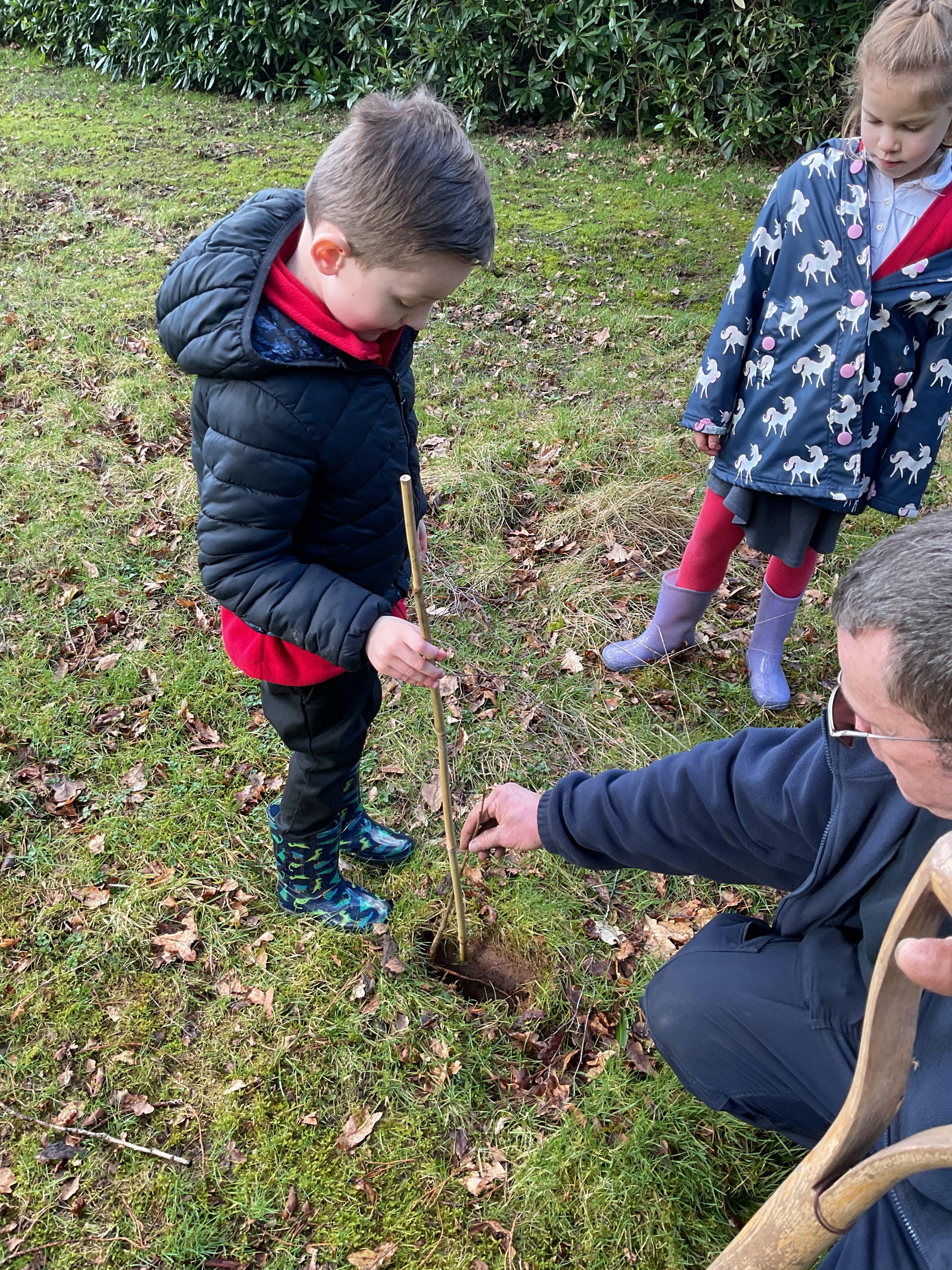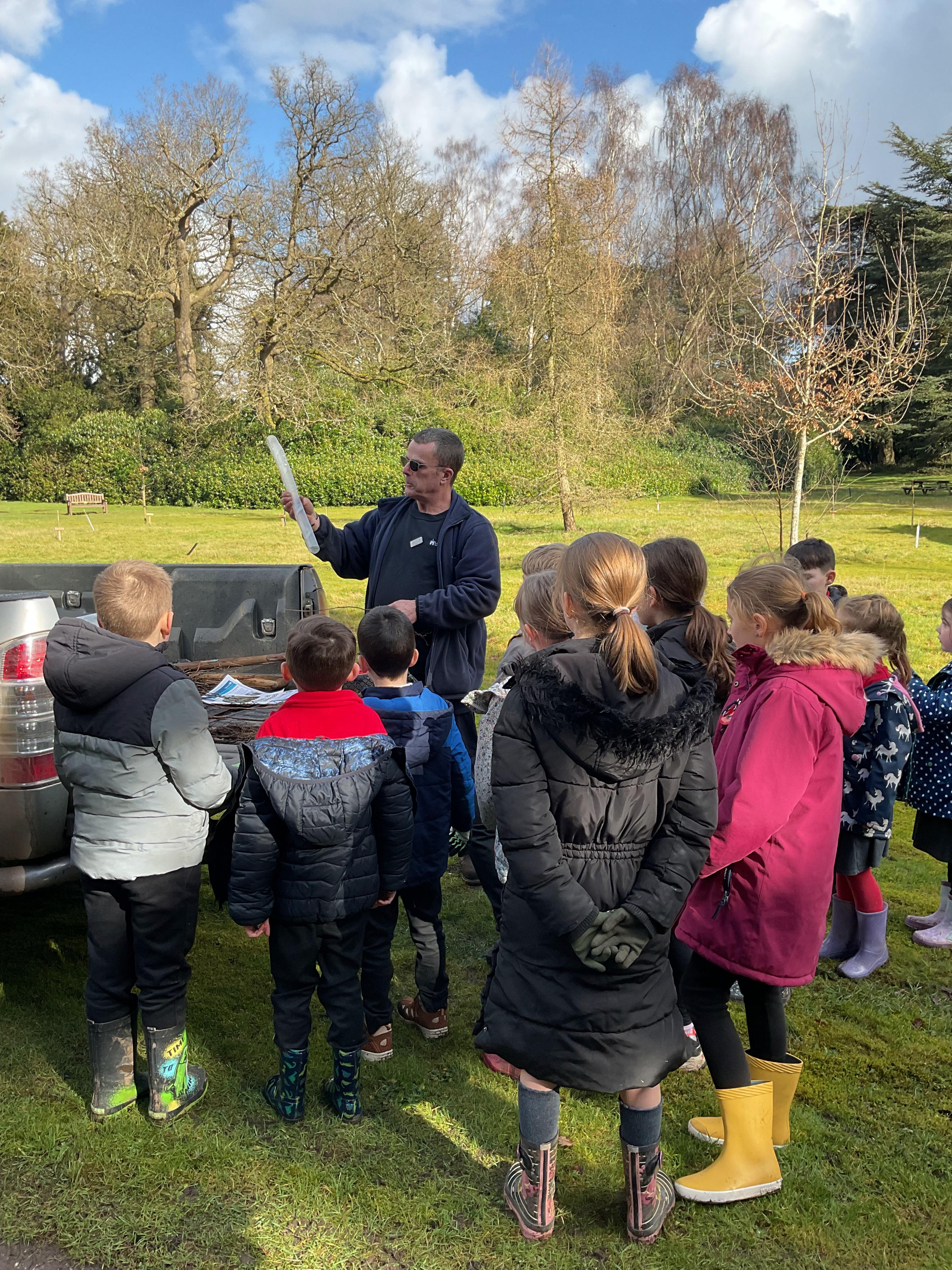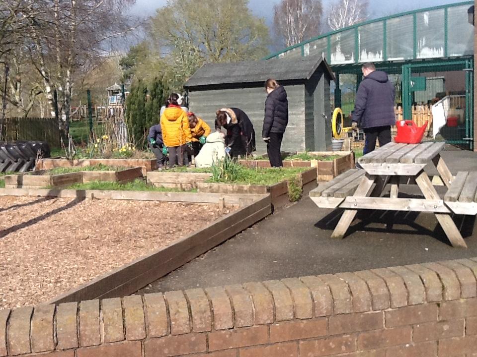 The Eco-Committee had a wonderful afternoon at Lilleshall Hall this week. We were invited by the grounds team at the hall to go along and help them to plant trees to develop their existing wooded area. The head gardener showed us around parts of the grounds including the Dial garden and other formal gardens and also some of the nature trails that are being developed through the grounds. Each member of the committee then planted at least one tree (either an oak, a cherry or a lime) and we talked about how generations in the future would be able to enjoy what they had planted now. We finished off the afternoon with a treat of biscuits and drinks in the restaurant. The staff were all very complimentary about the children’s behaviour and enthusiasm. Well done the Eco-Team!