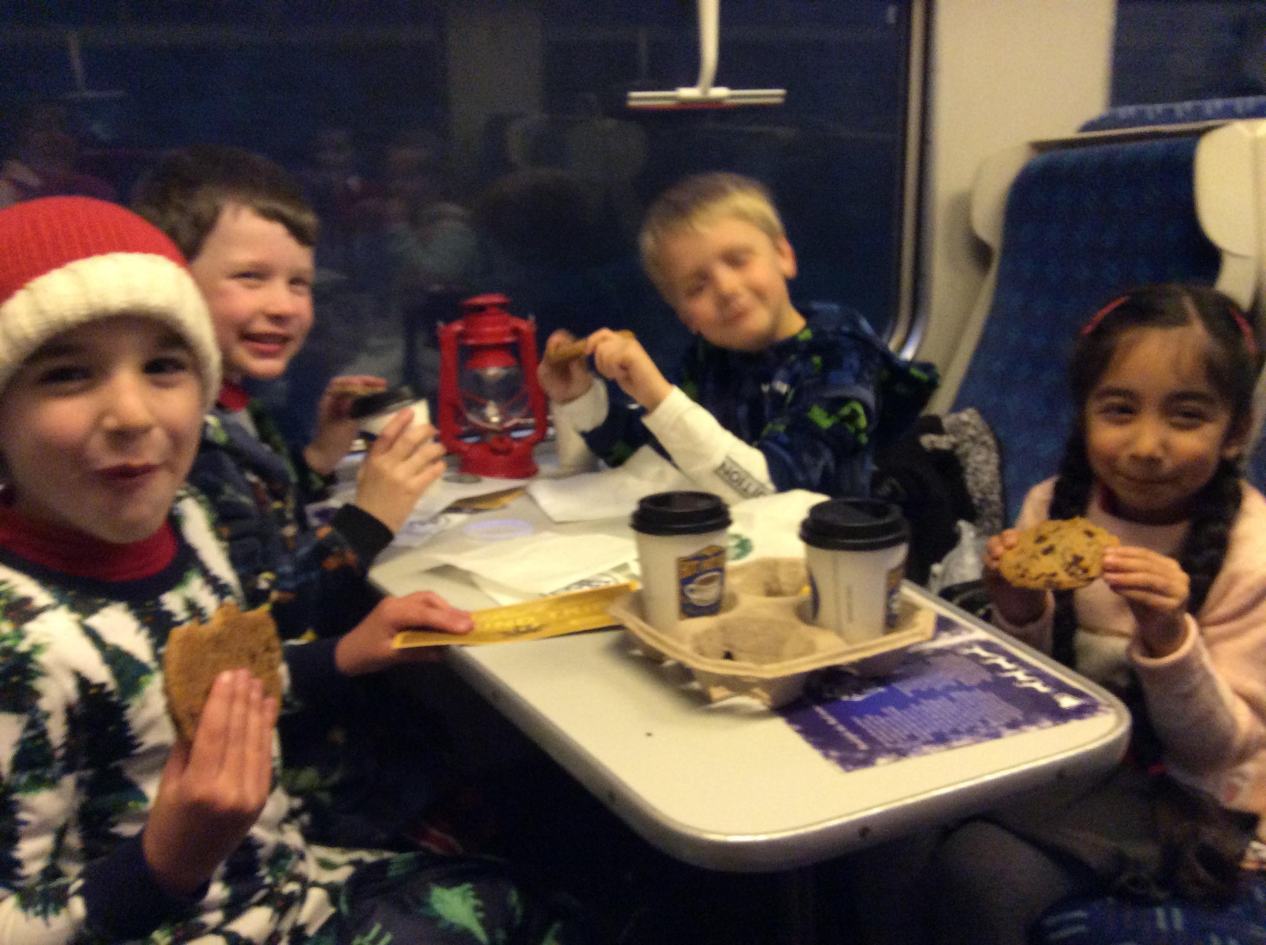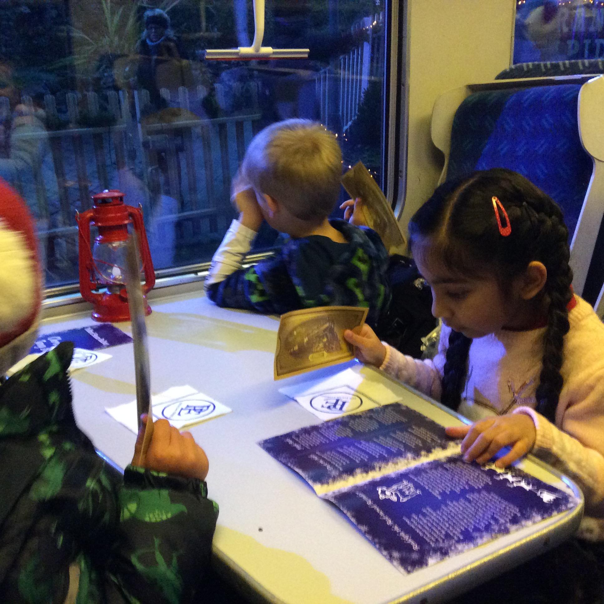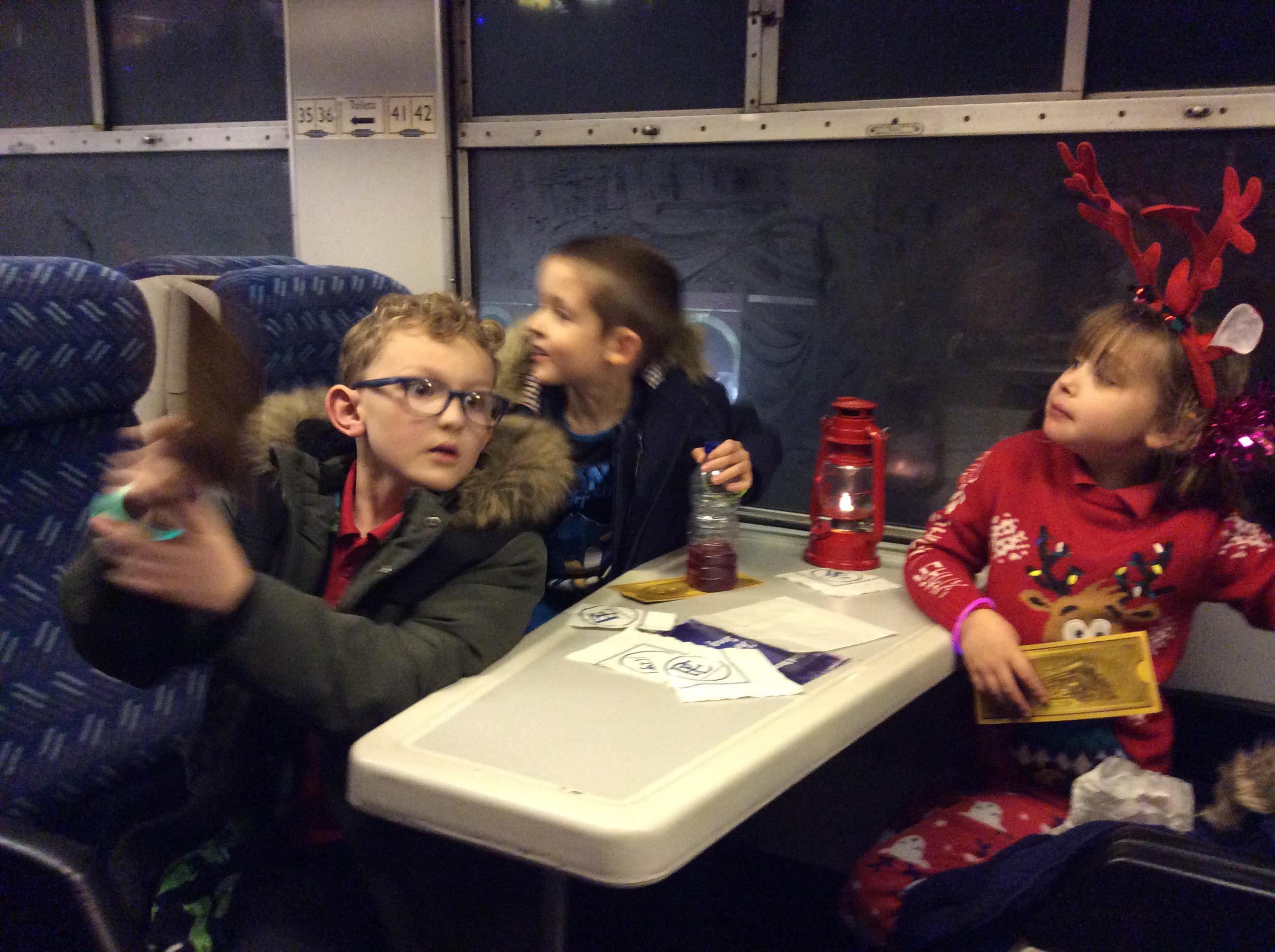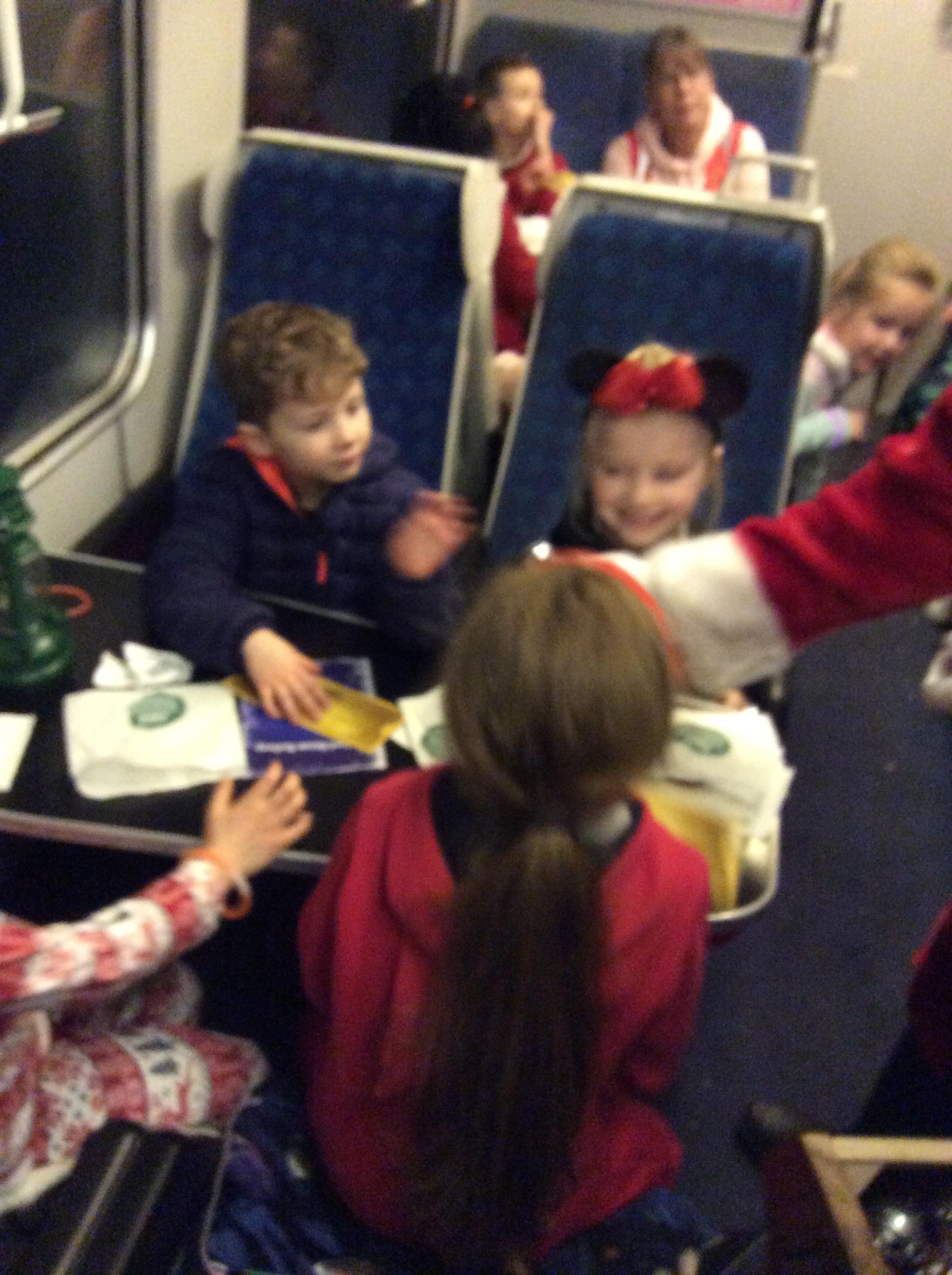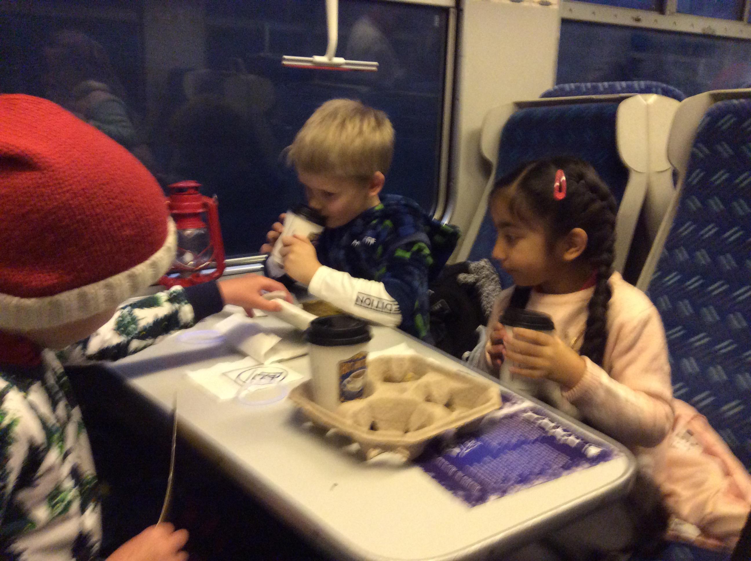 Today we had the most wonderful experience when we were given a ticket to ride The Polar Express. We travelled through forests and mountains to the North Pole, drinking hot chocolate and munching on cookies. When we arrived at the North Pole Father Christmas was waiting with the first gift of a Christmas, a bright shiny bell. We all had a wonderful time and brought our bells back to see if our parents could hear the tinkling and to see if they still, like us, believe in the magic of Christmas.