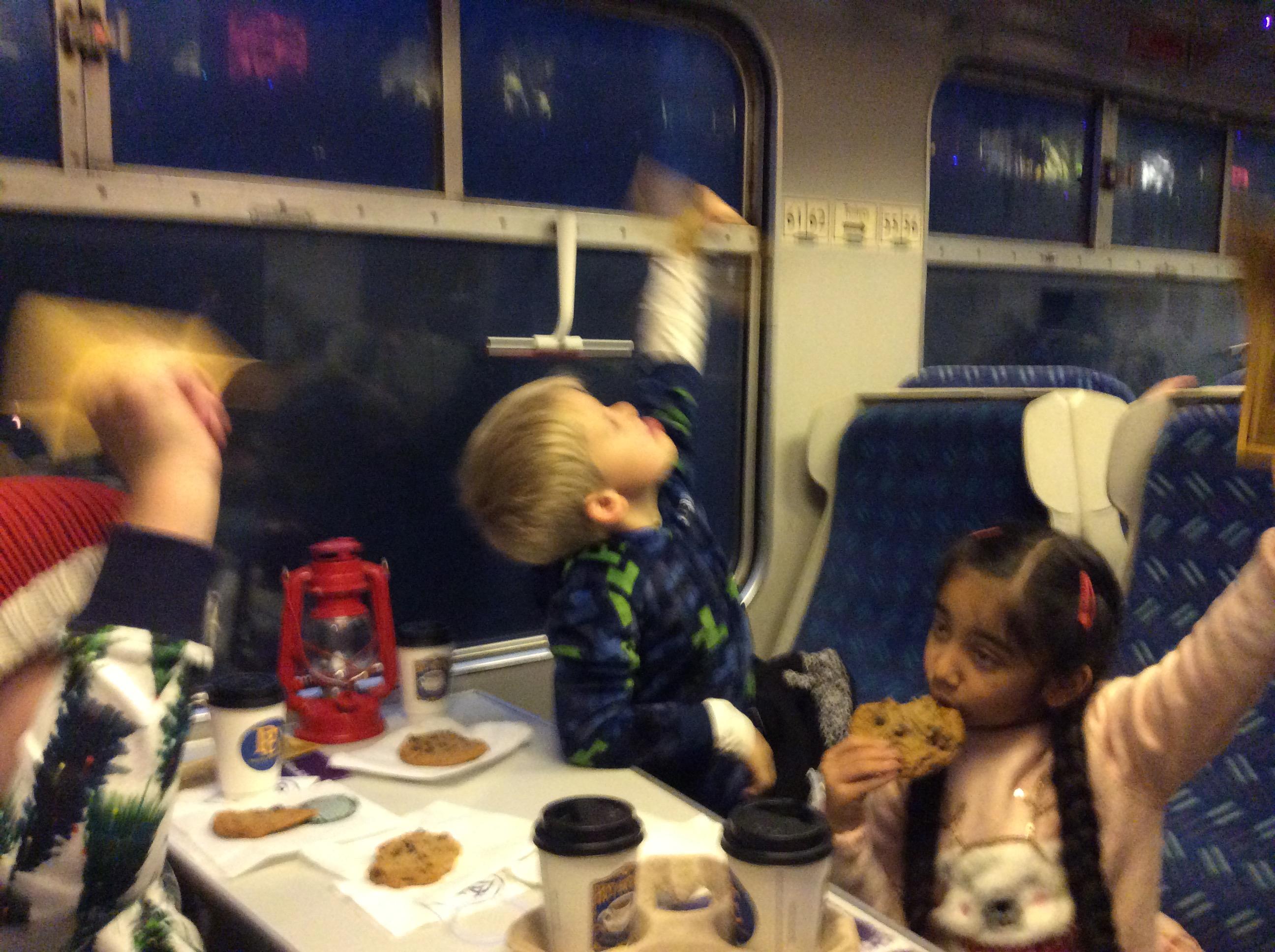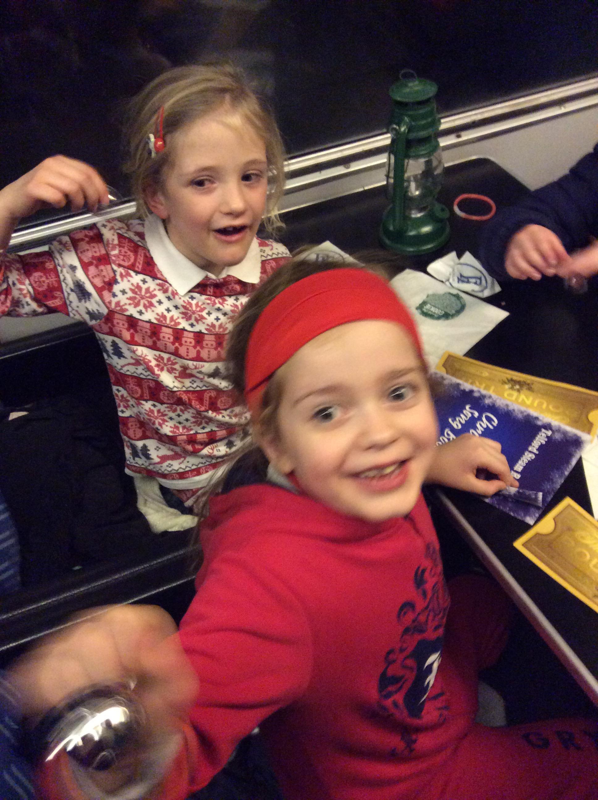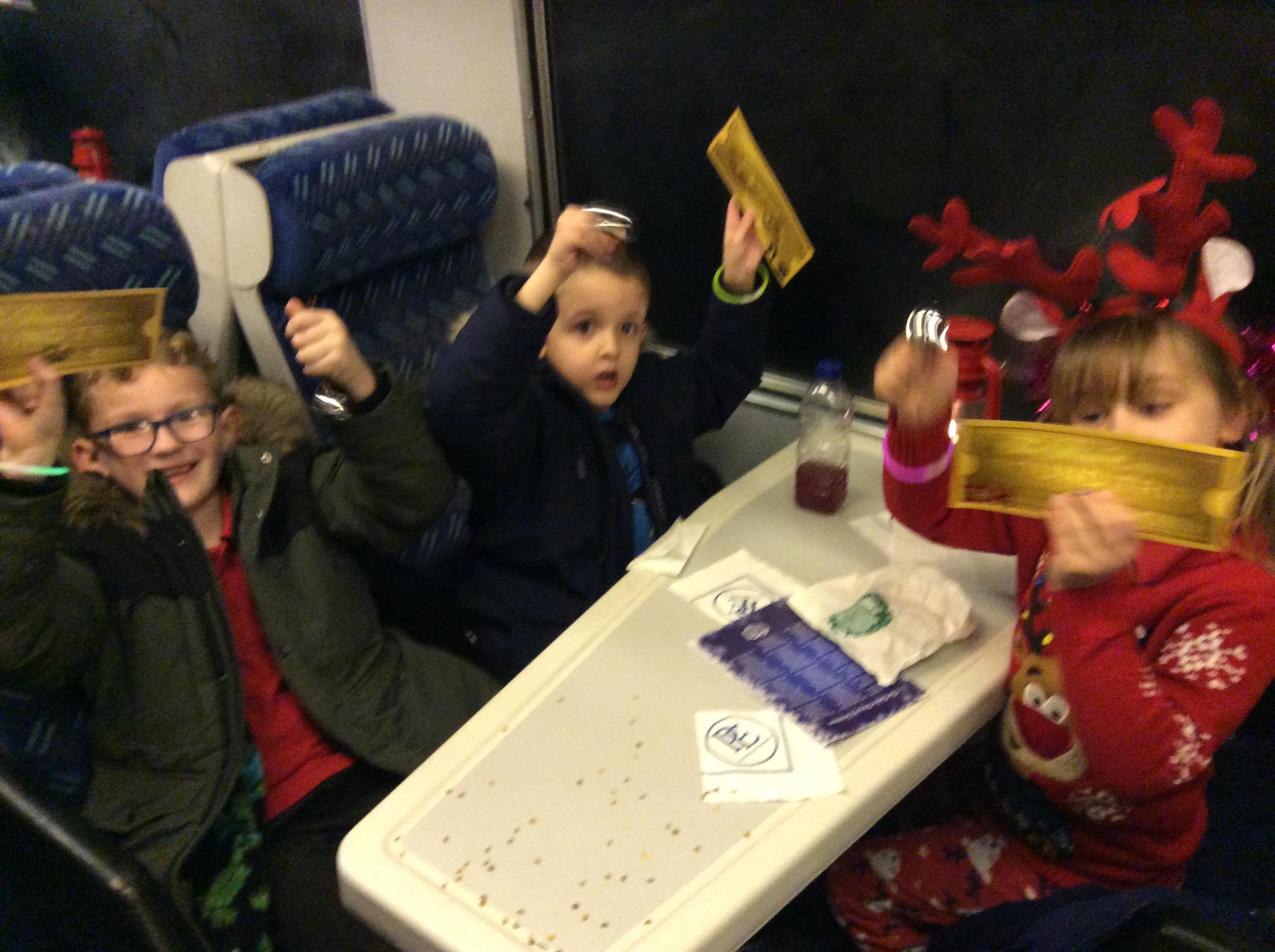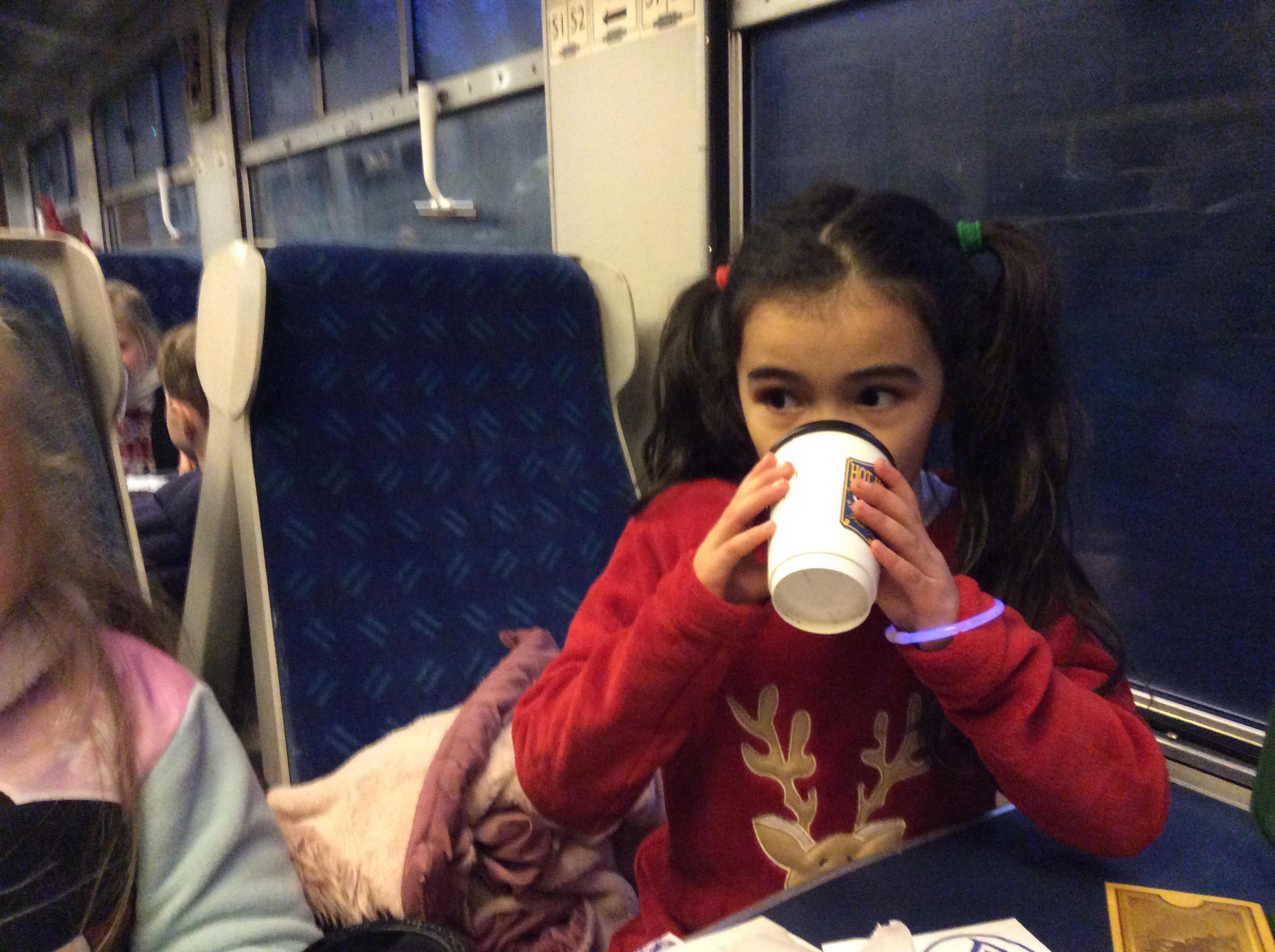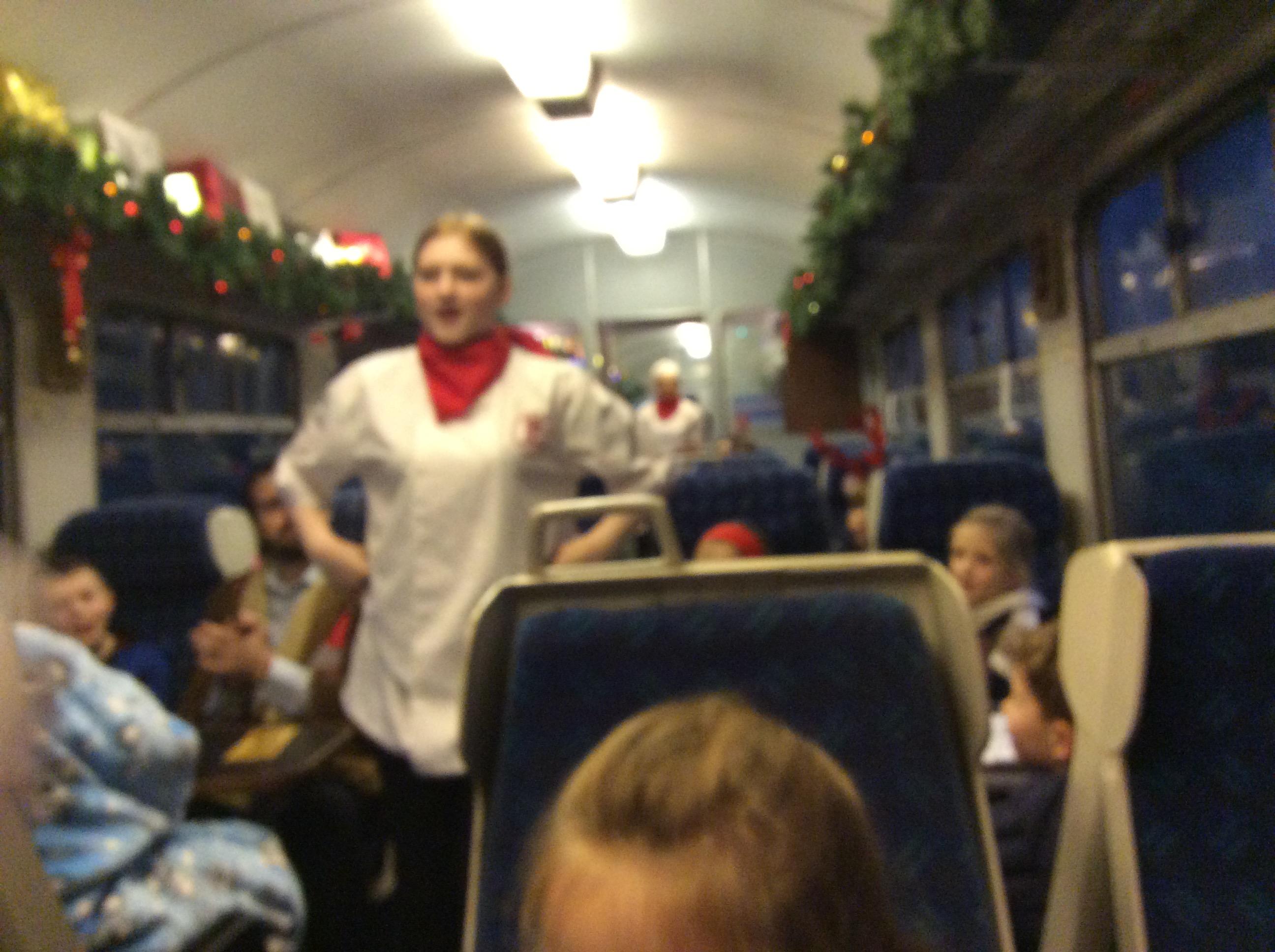 Today we had the most wonderful experience when we were given a ticket to ride The Polar Express. We travelled through forests and mountains to the North Pole, drinking hot chocolate and munching on cookies. When we arrived at the North Pole Father Christmas was waiting with the first gift of a Christmas, a bright shiny bell. We all had a wonderful time and brought our bells back to see if our parents could hear the tinkling and to see if they still, like us, believe in the magic of Christmas.