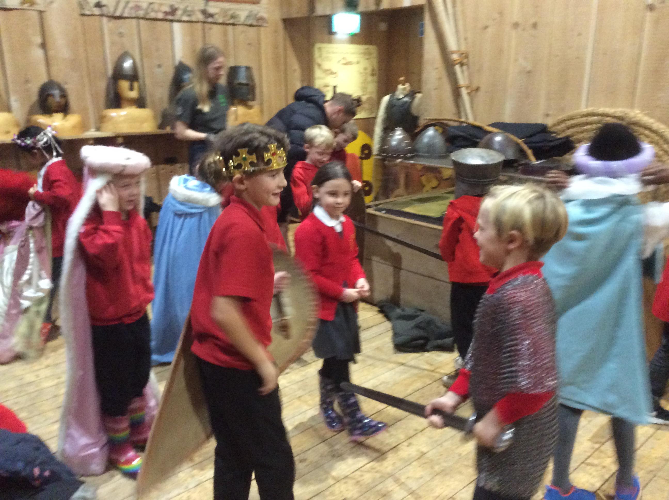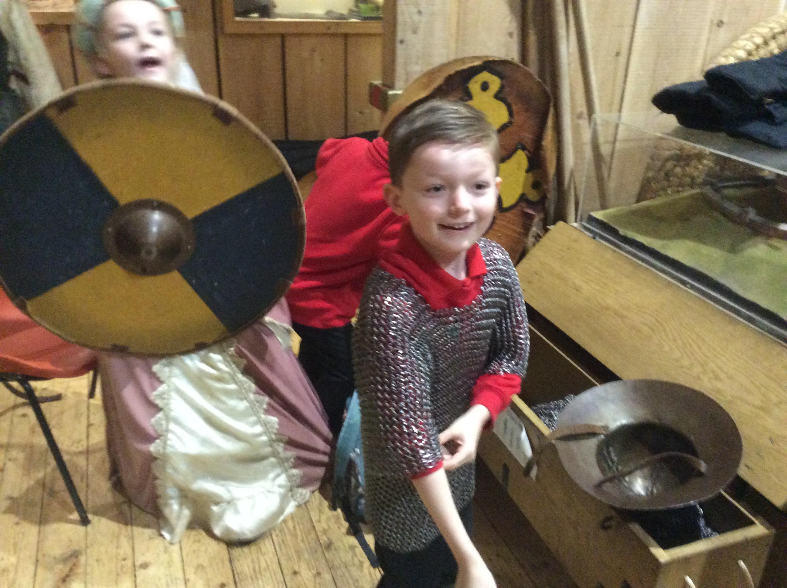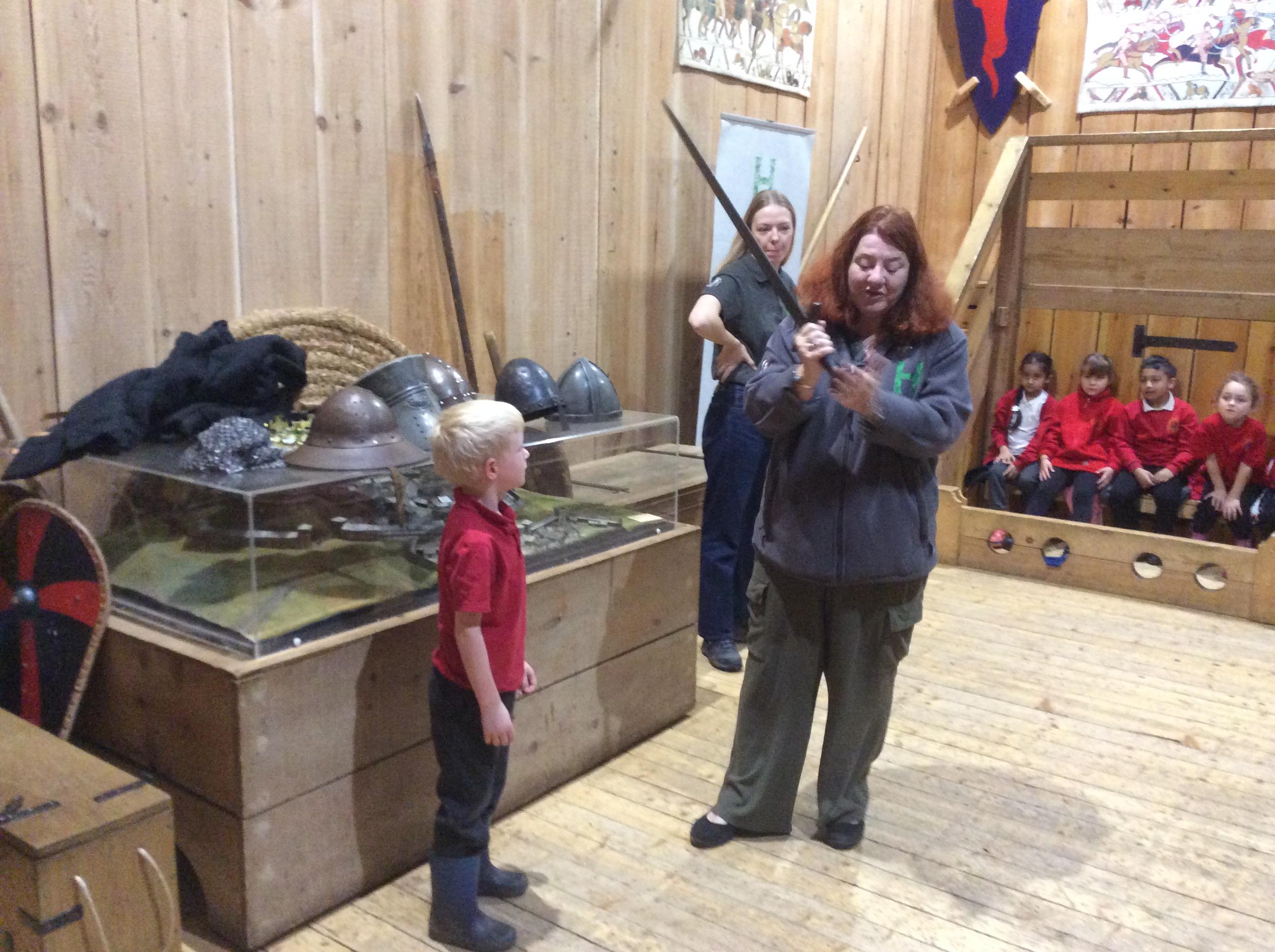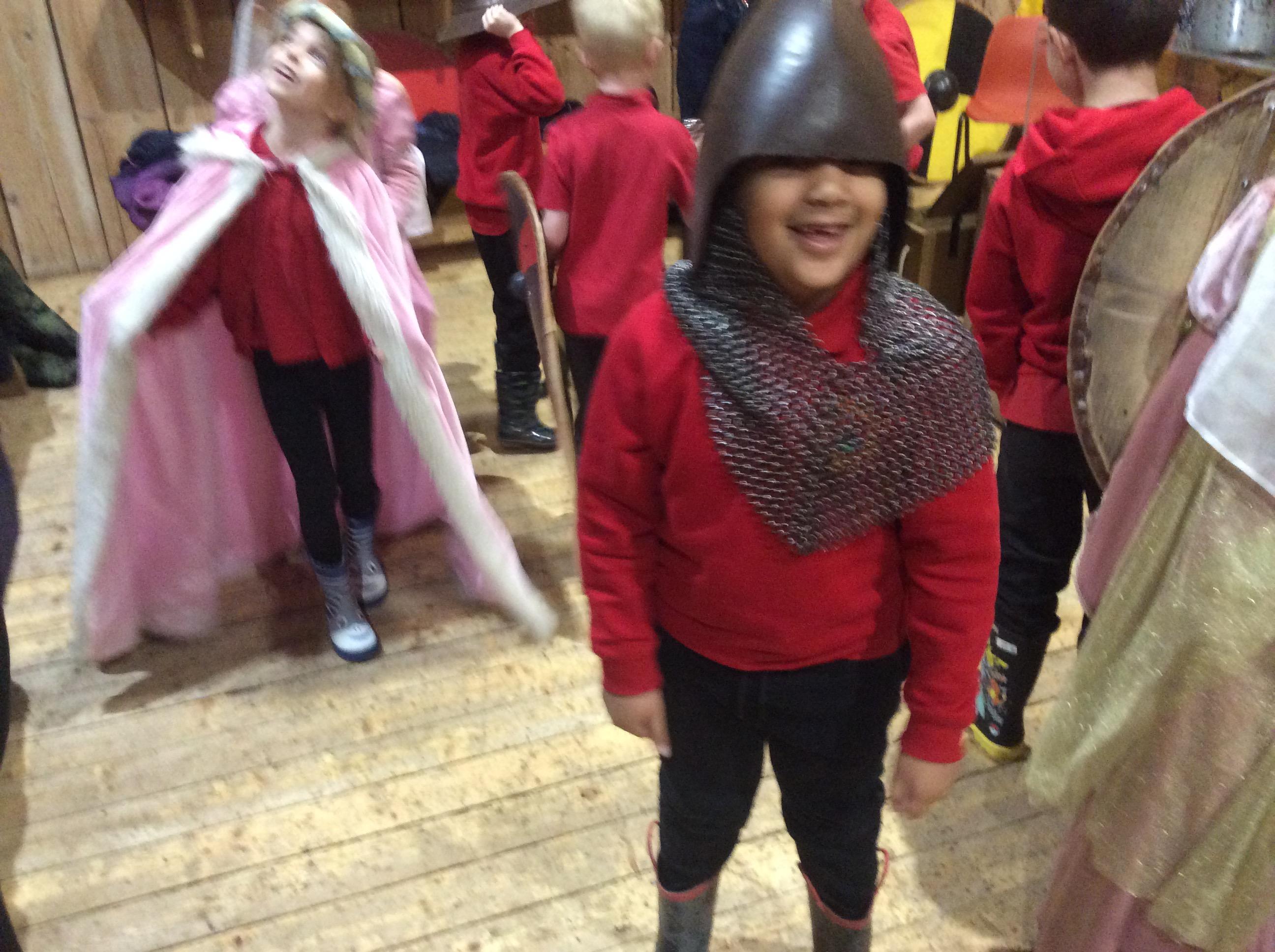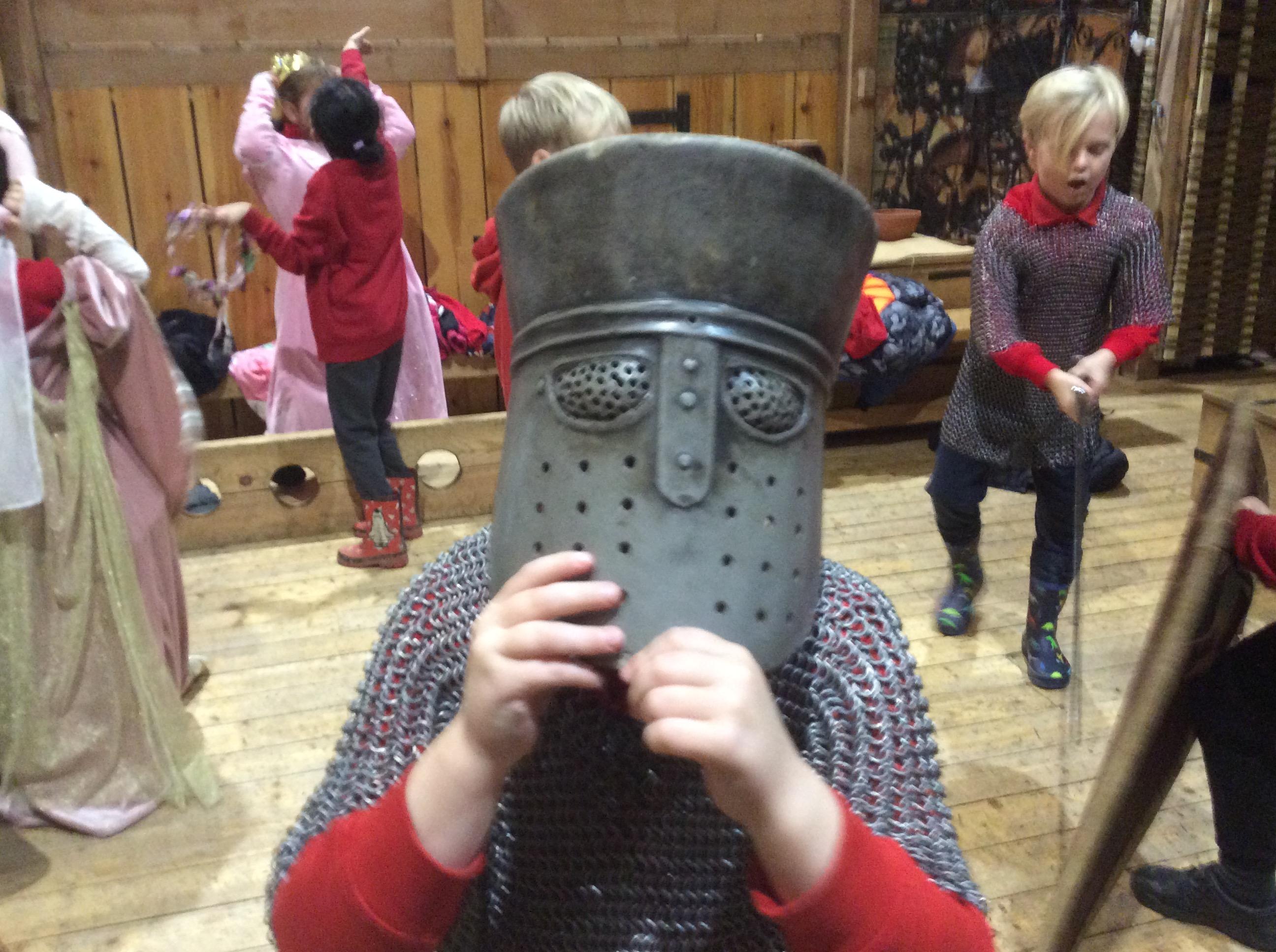 We all had the most enjoyable day visiting Stafford Castle. We had the opportunity to walk round the castle grounds through the outer bailey, the inner bailey and we then charged up the motte to the keep, imagining we were attacking the castle in Norman times. As well as trying on chain mail, armour, helmets and other outfits we were able to hold and observe weapons and then mint a Norman coin and make lavender bags. We all agreed it had been a very interesting and exciting day, imagining we were living in Norman times.