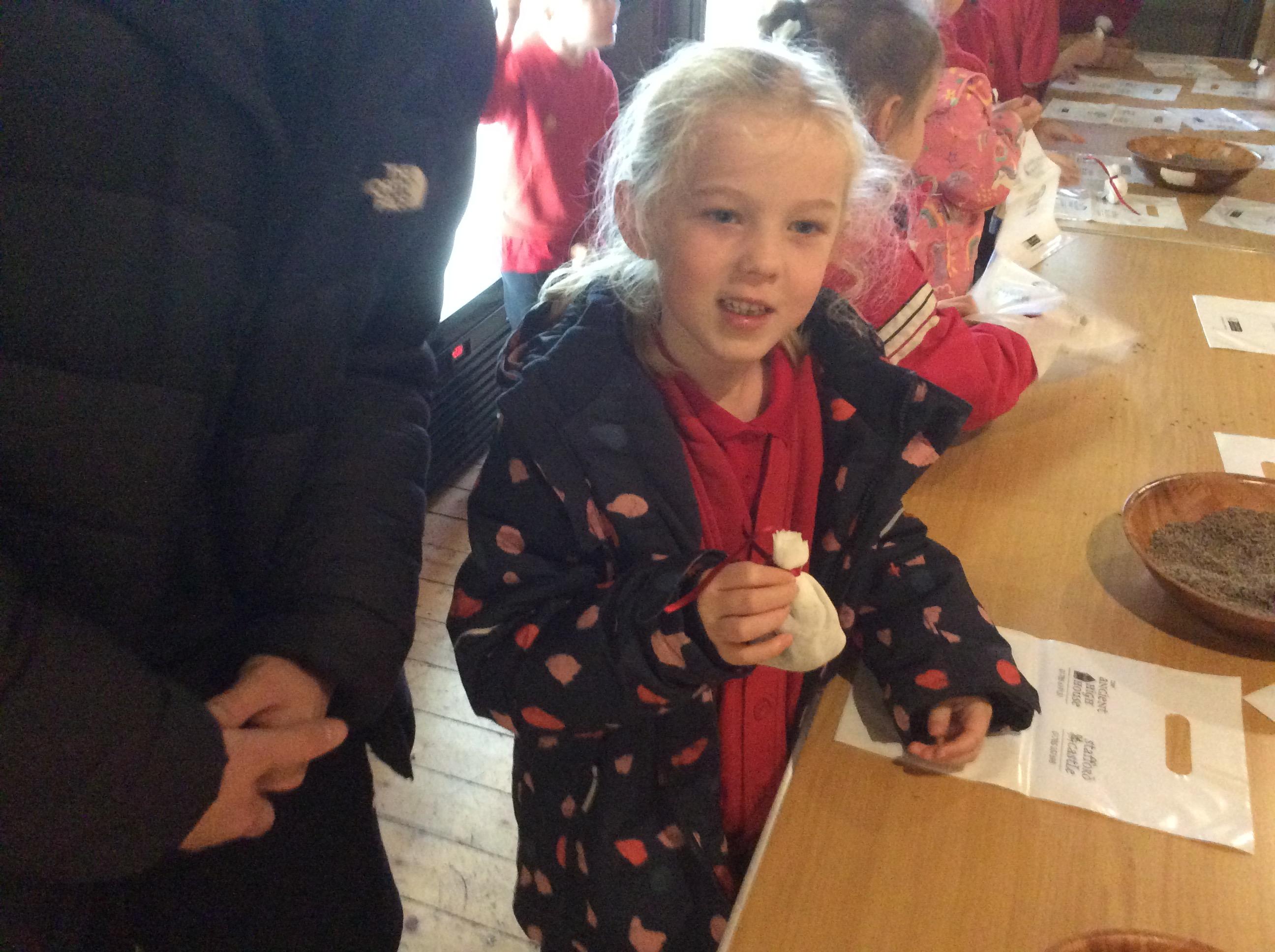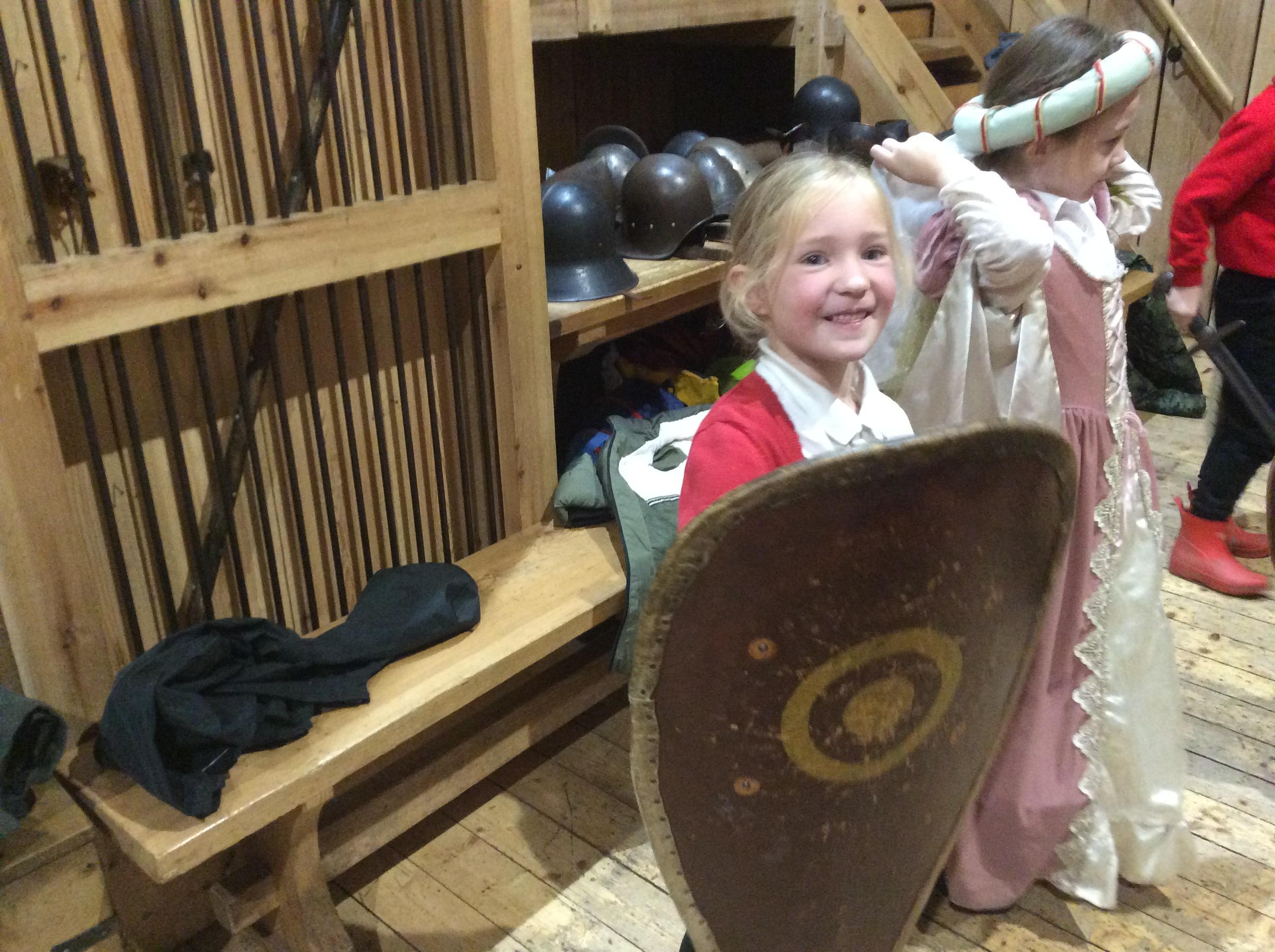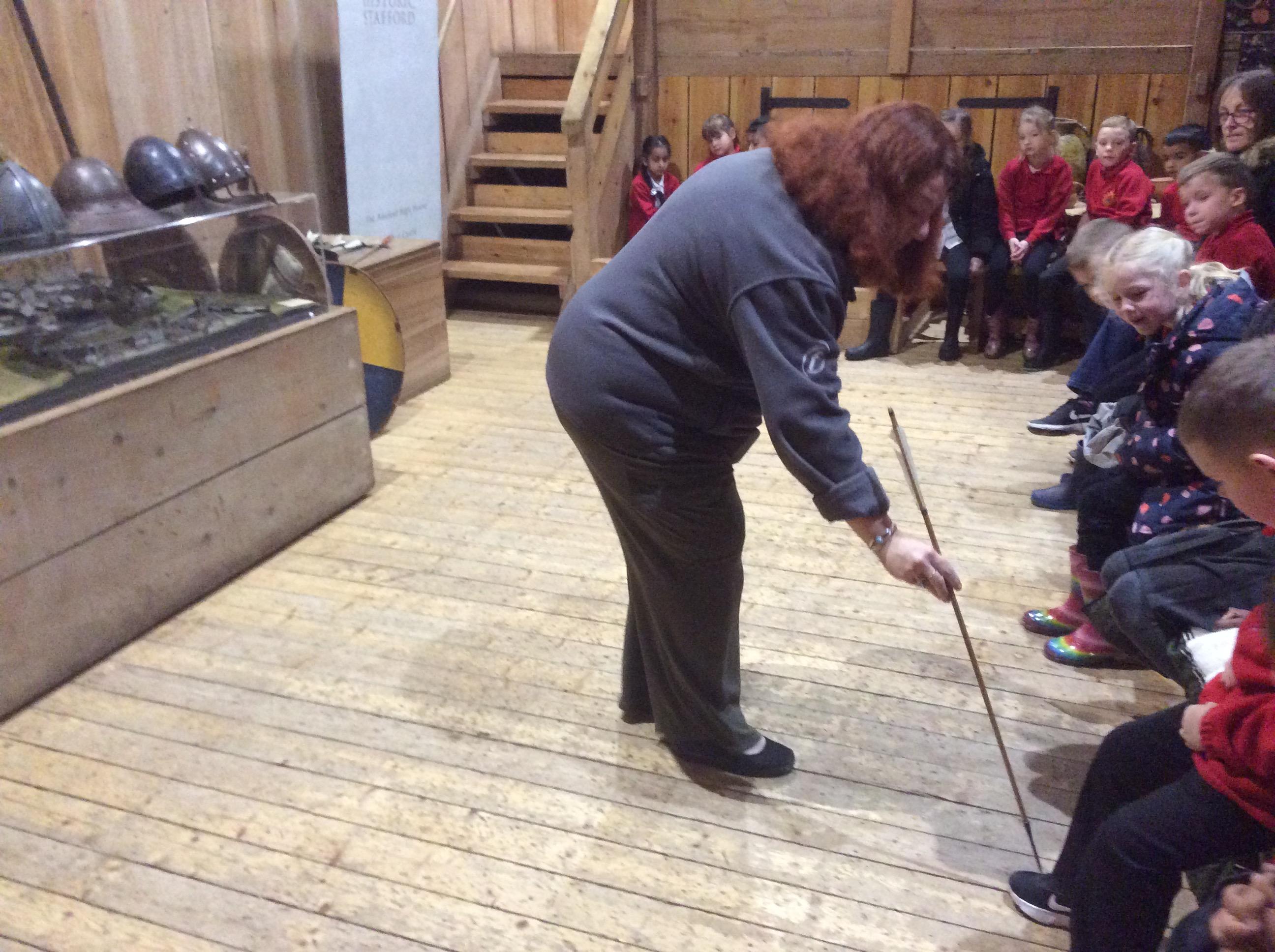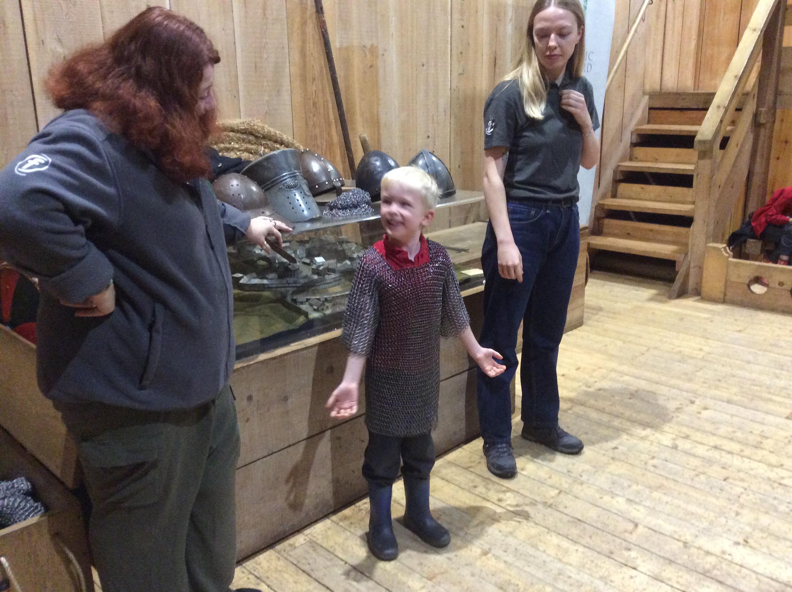 We all had the most enjoyable day visiting Stafford Castle. We had the opportunity to walk round the castle grounds through the outer bailey, the inner bailey and we then charged up the motte to the keep, imagining we were attacking the castle in Norman times. As well as trying on chain mail, armour, helmets and other outfits we were able to hold and observe weapons and then mint a Norman coin and make lavender bags. We all agreed it had been a very interesting and exciting day, imagining we were living in Norman times.