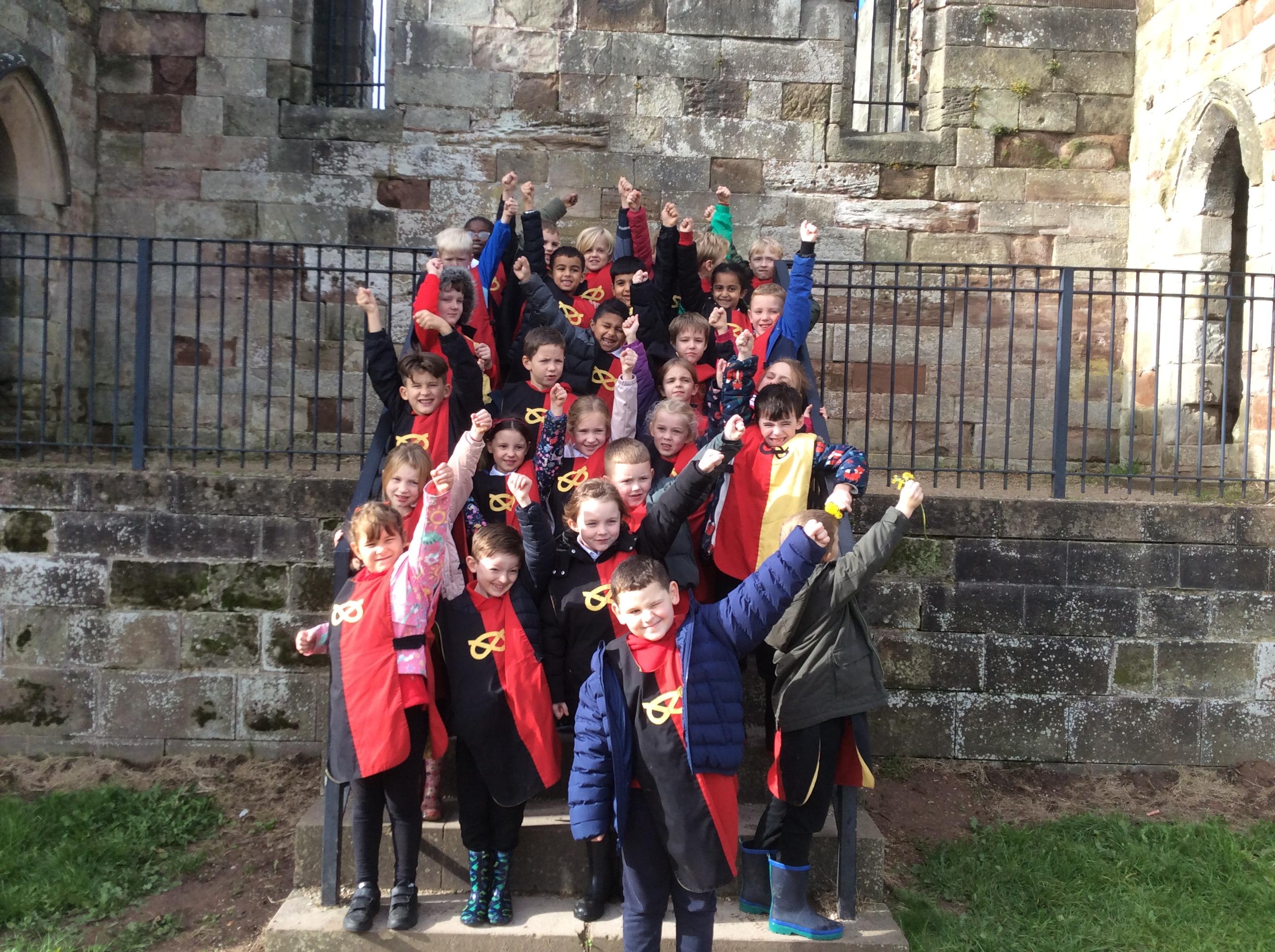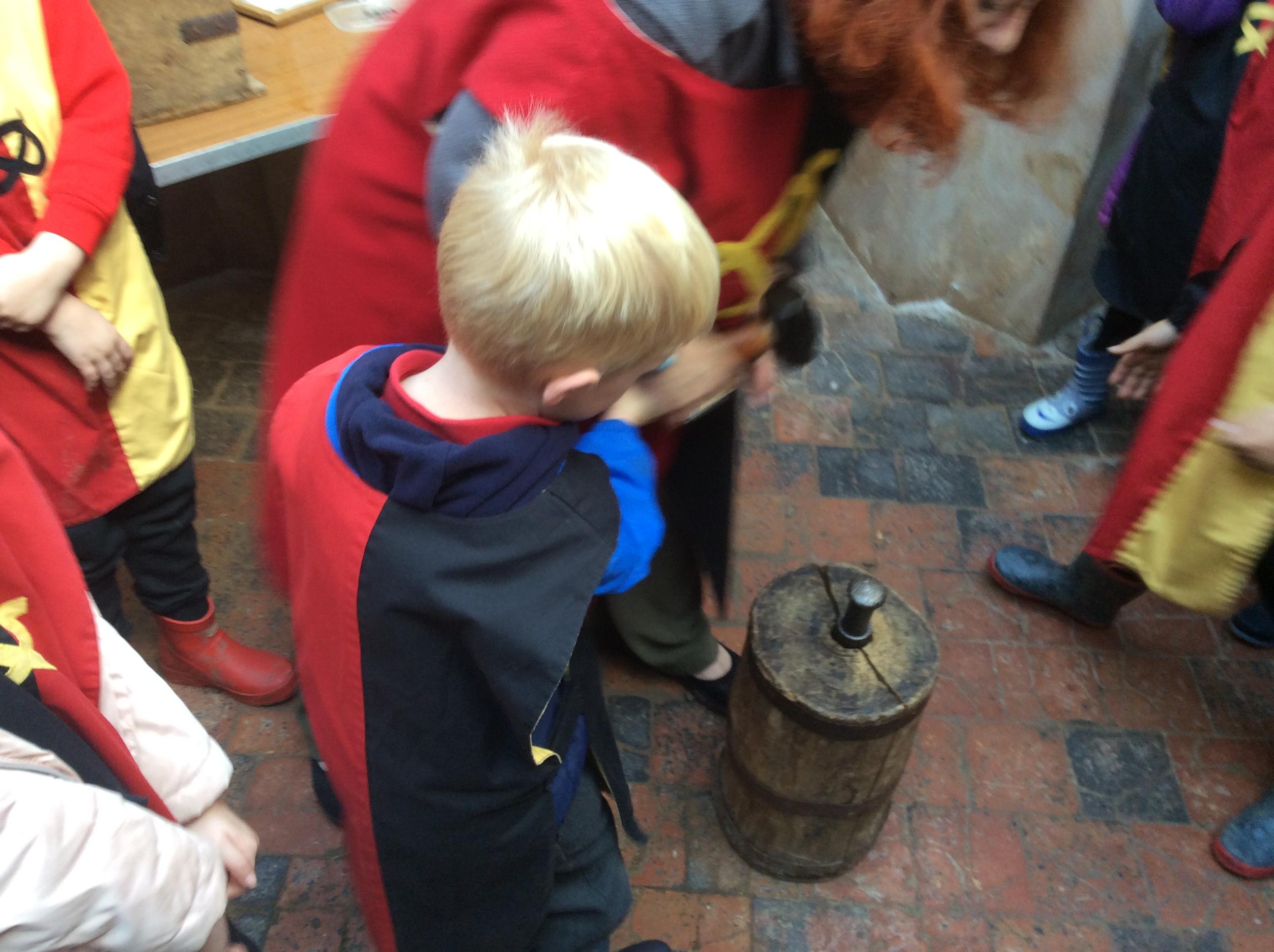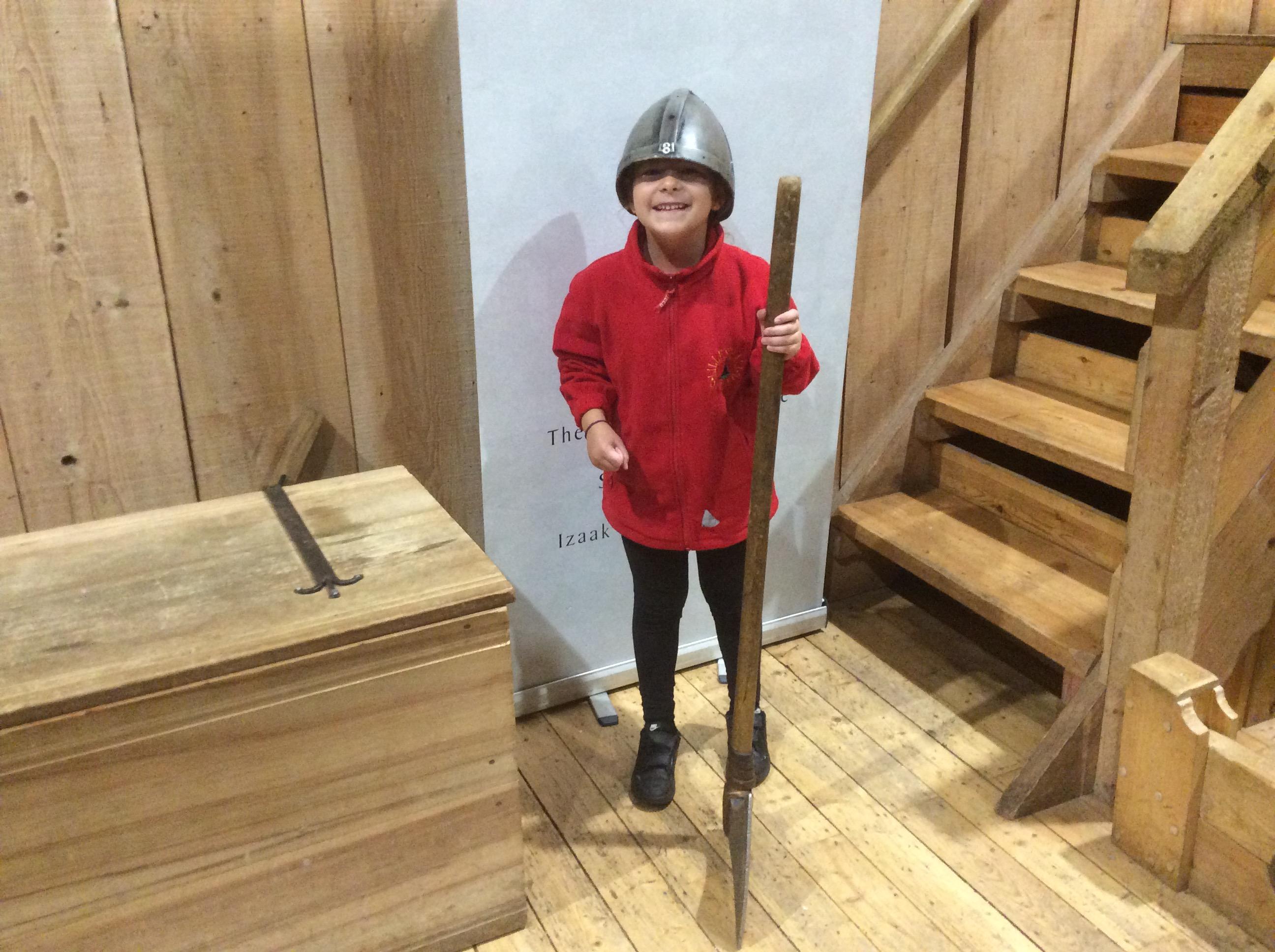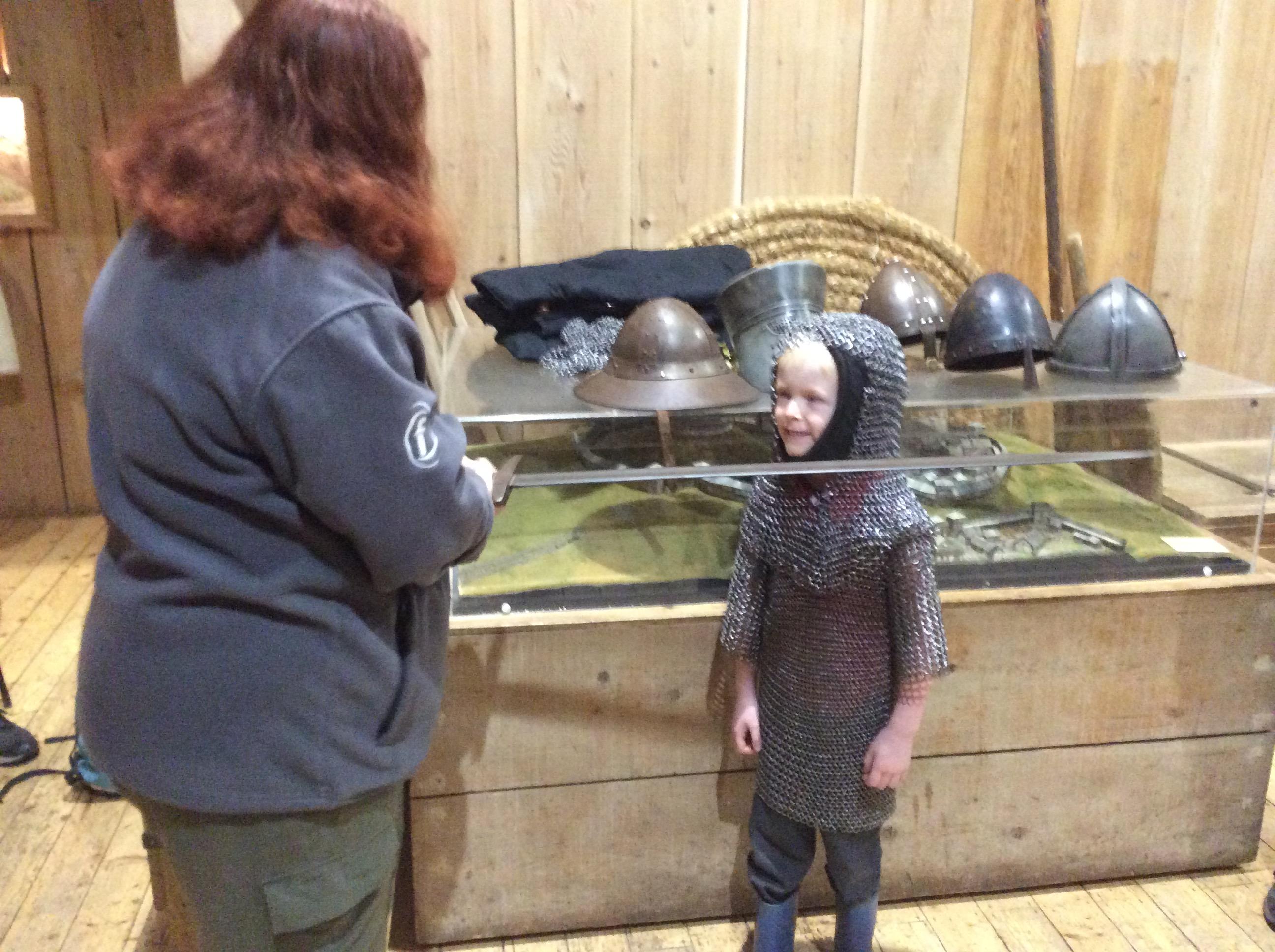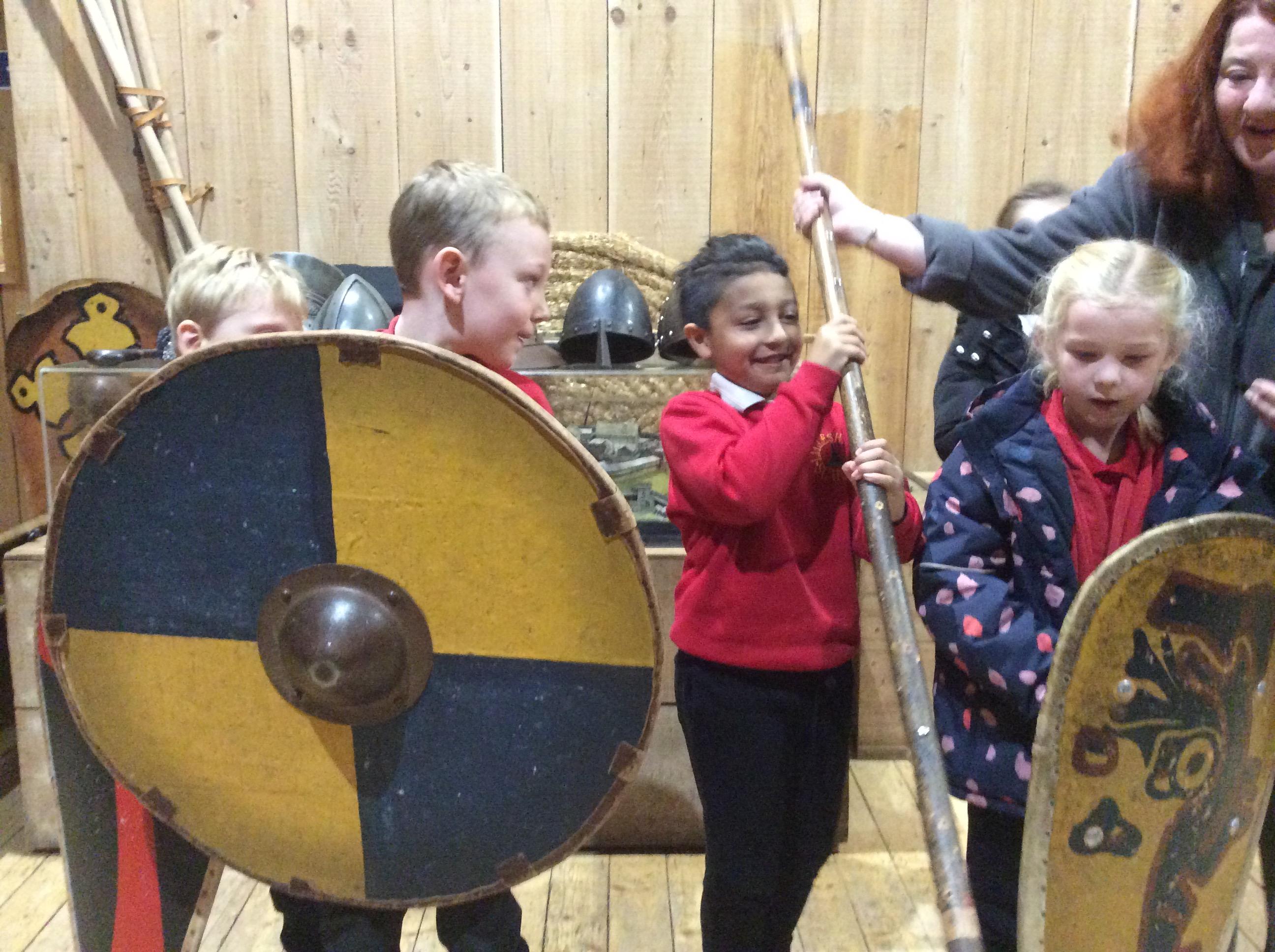 We all had the most enjoyable day visiting Stafford Castle. We had the opportunity to walk round the castle grounds through the outer bailey, the inner bailey and we then charged up the motte to the keep, imagining we were attacking the castle in Norman times. As well as trying on chain mail, armour, helmets and other outfits we were able to hold and observe weapons and then mint a Norman coin and make lavender bags. We all agreed it had been a very interesting and exciting day, imagining we were living in Norman times.