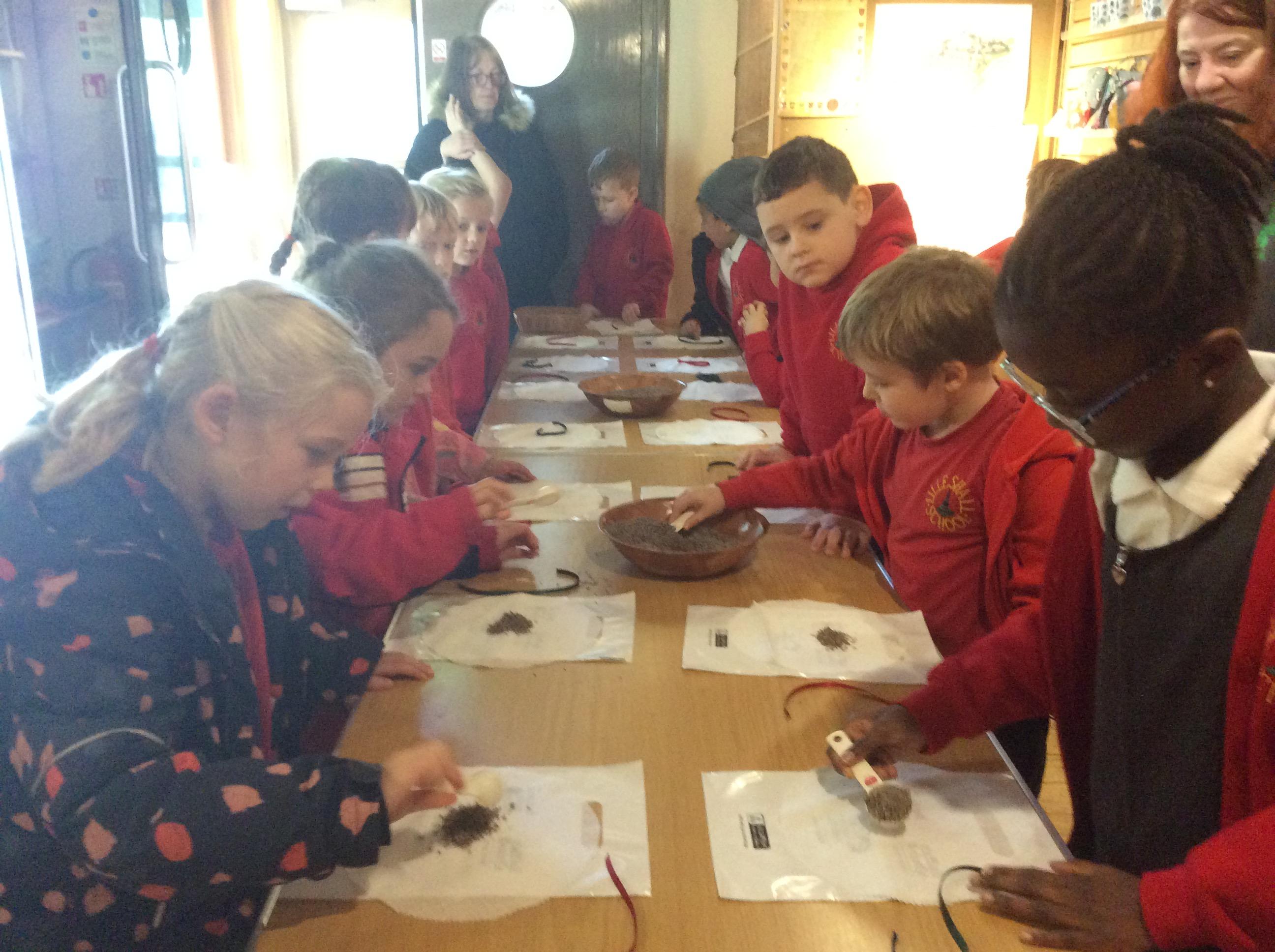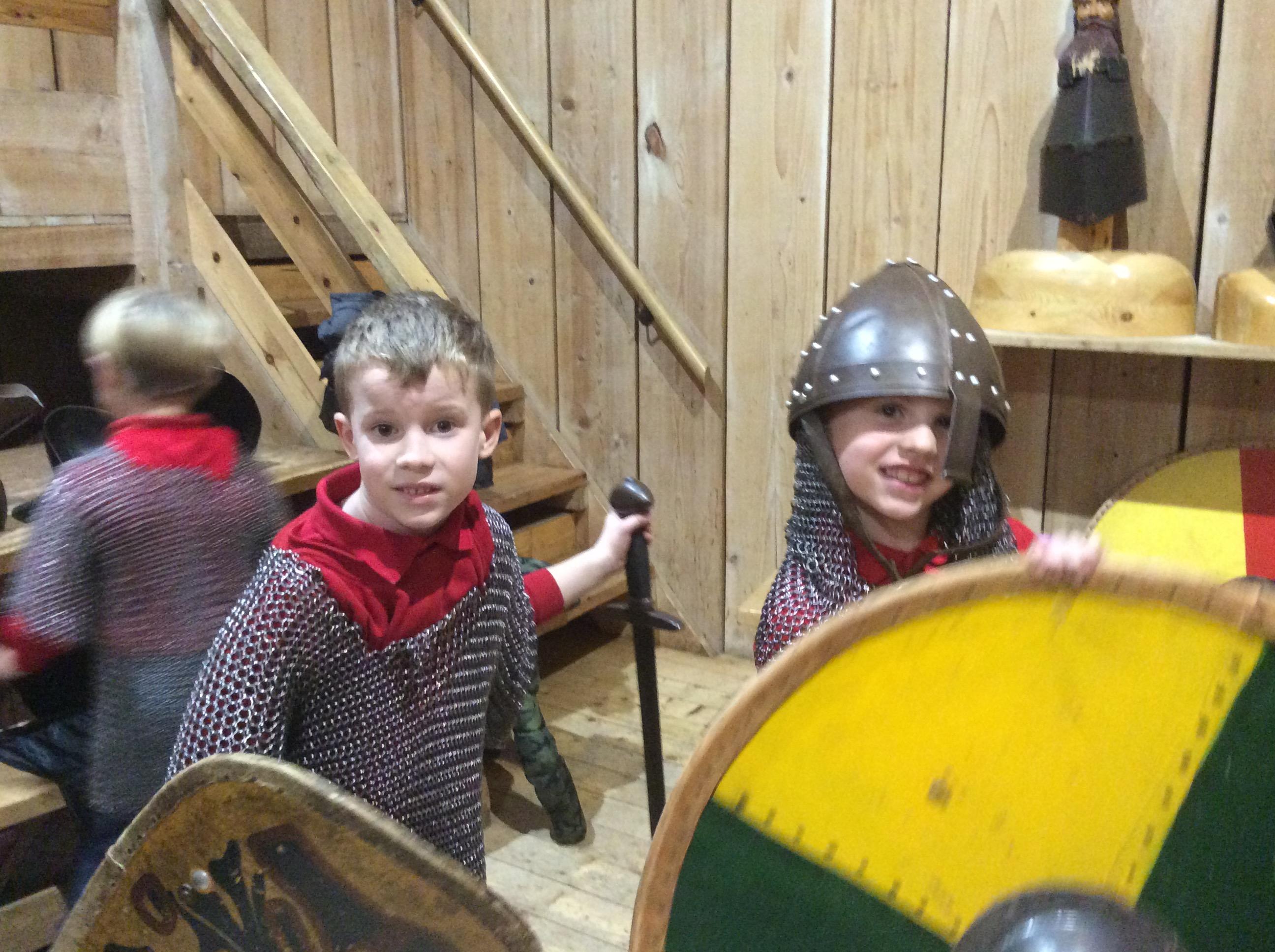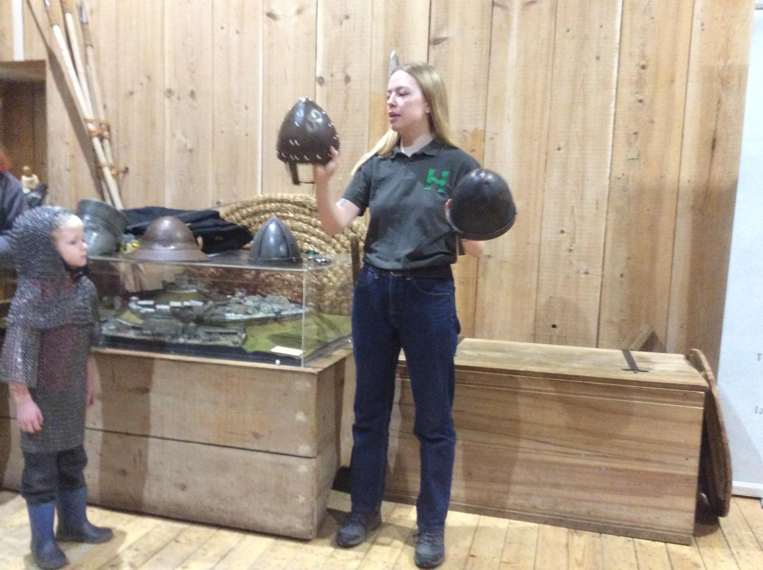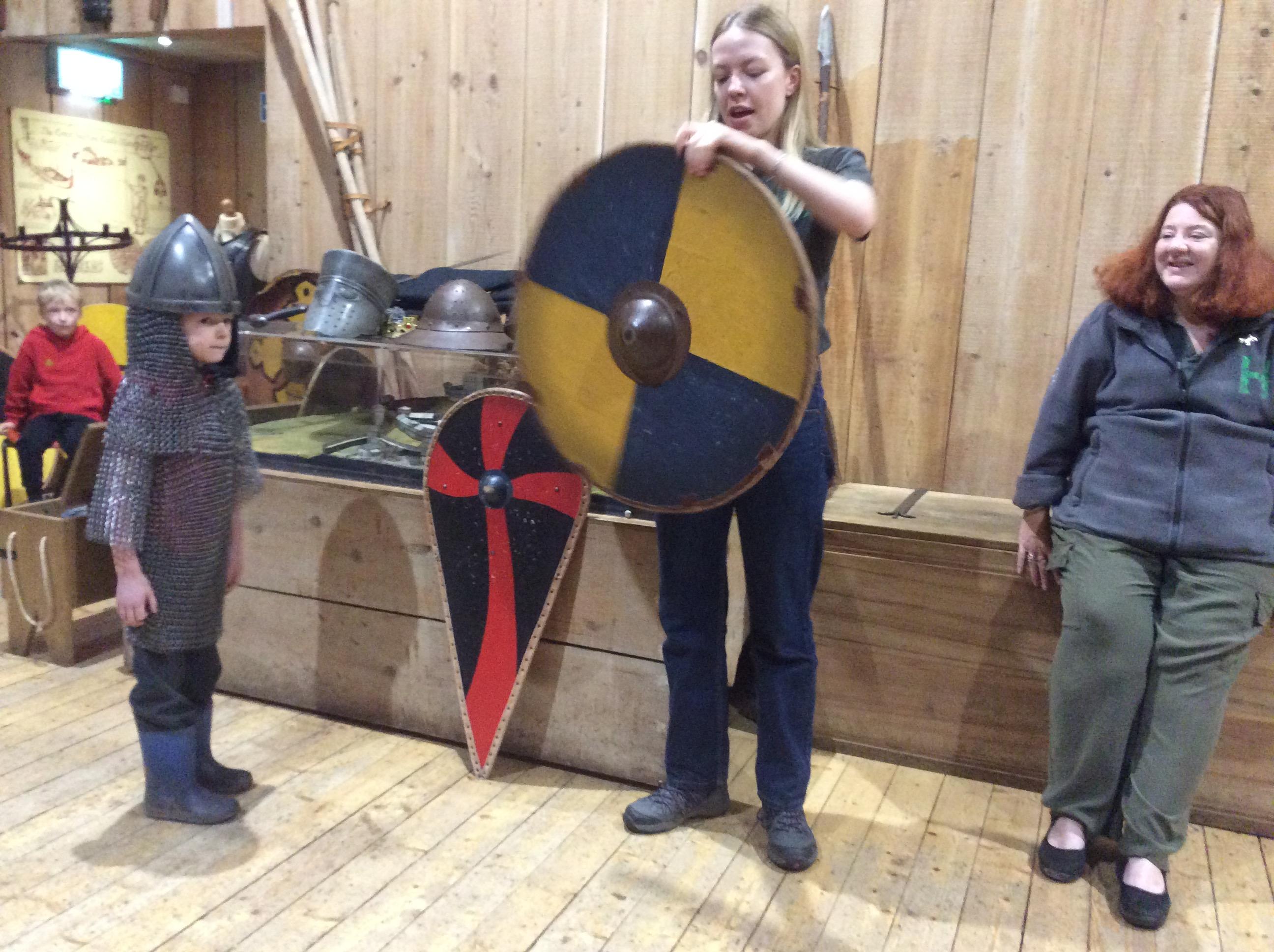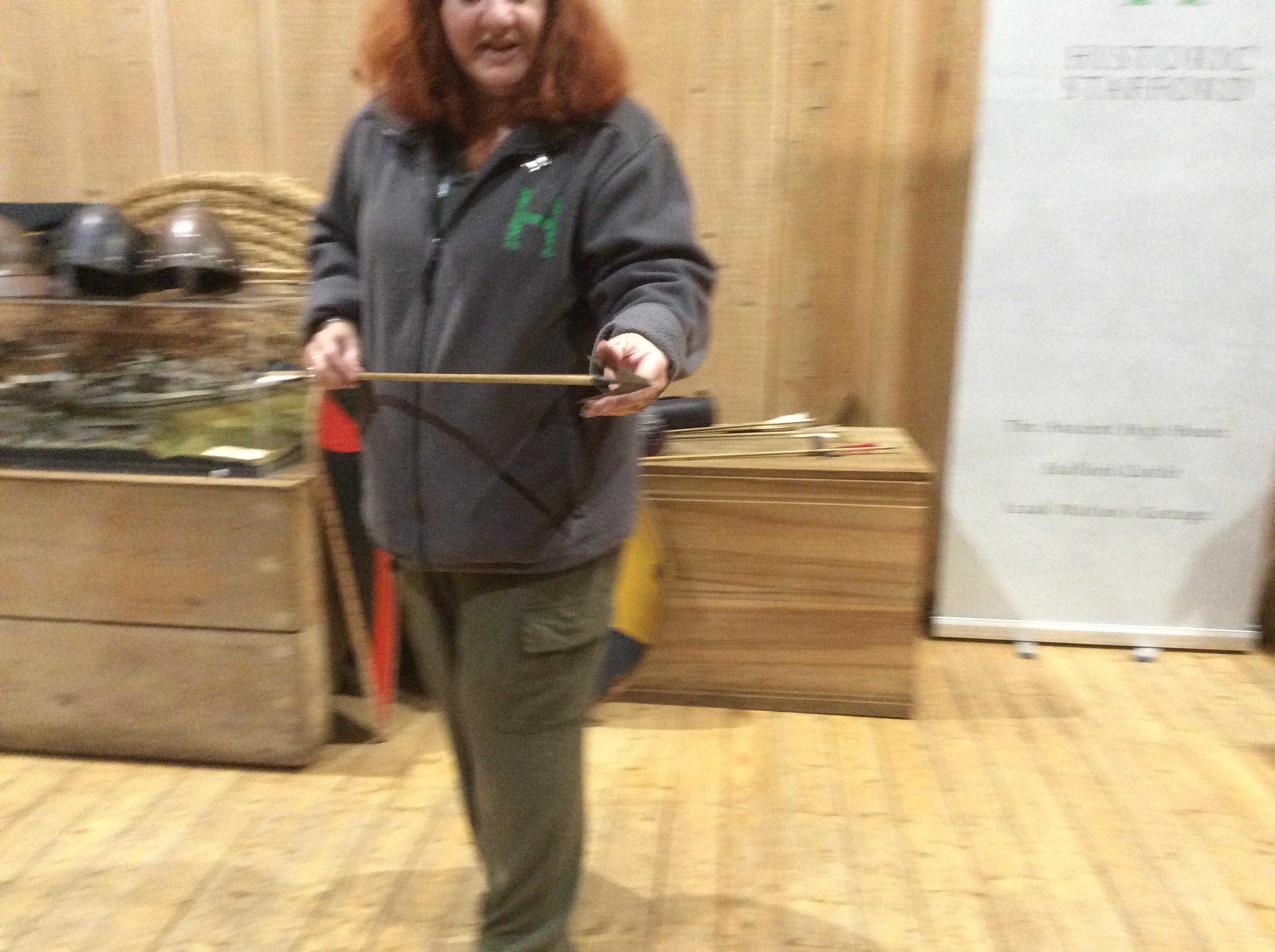 We all had the most enjoyable day visiting Stafford Castle. We had the opportunity to walk round the castle grounds through the outer bailey, the inner bailey and we then charged up the motte to the keep, imagining we were attacking the castle in Norman times. As well as trying on chain mail, armour, helmets and other outfits we were able to hold and observe weapons and then mint a Norman coin and make lavender bags. We all agreed it had been a very interesting and exciting day, imagining we were living in Norman times.